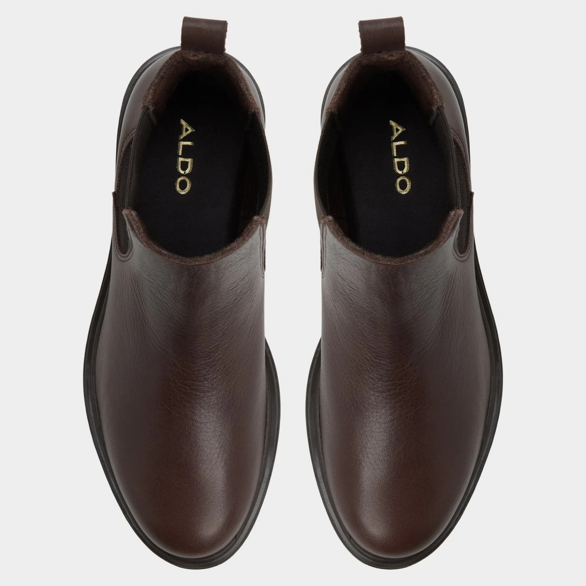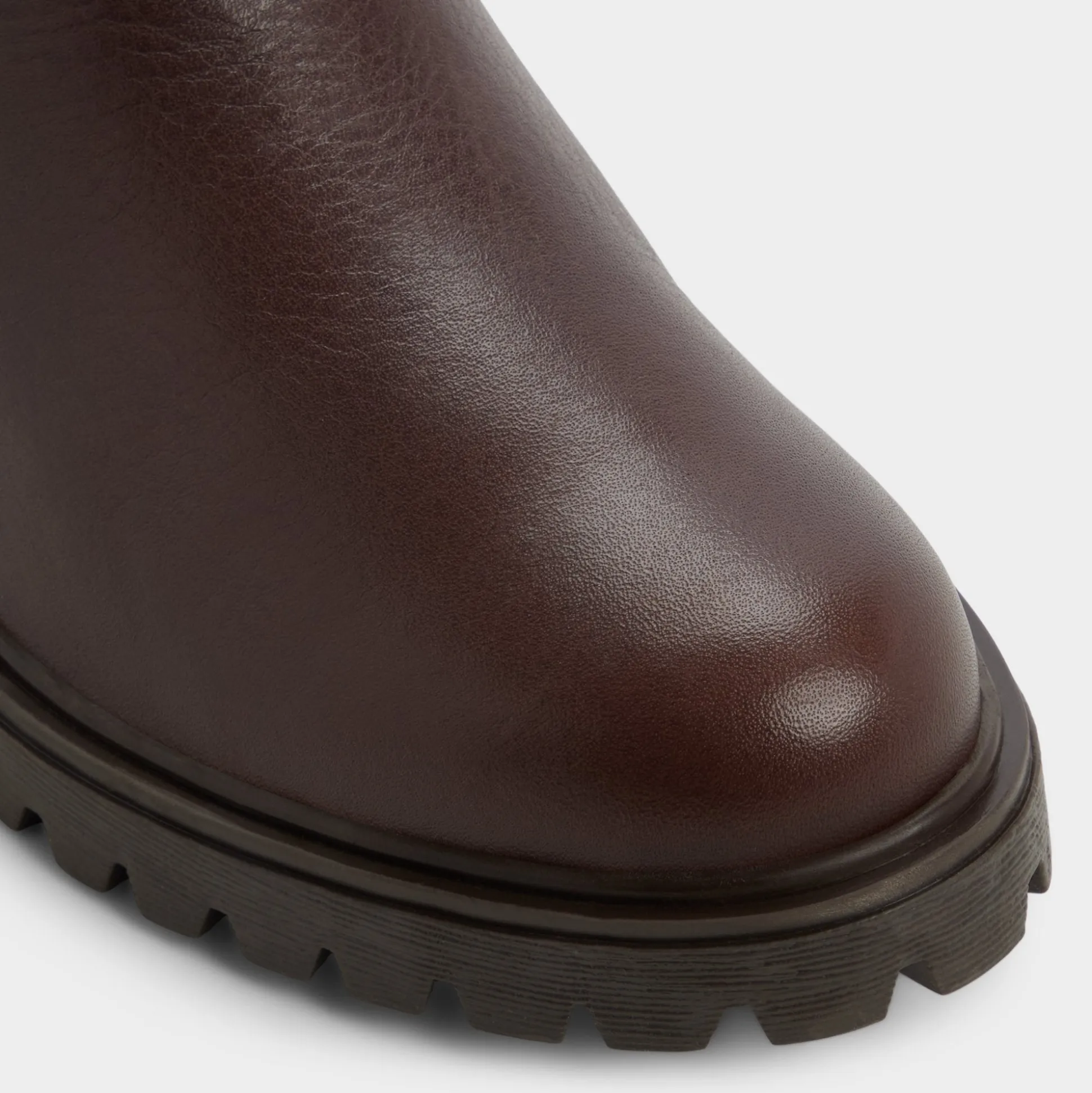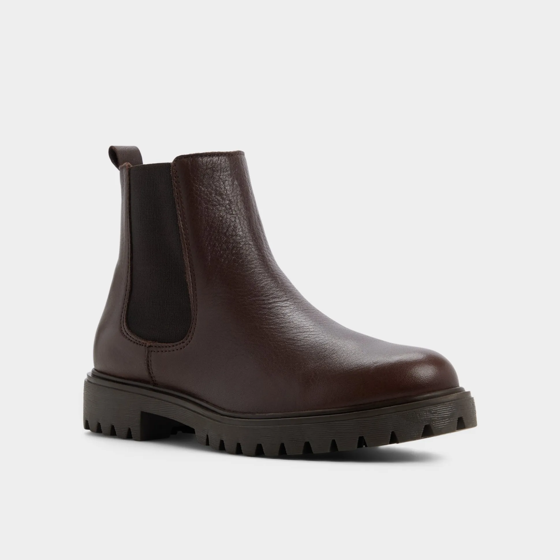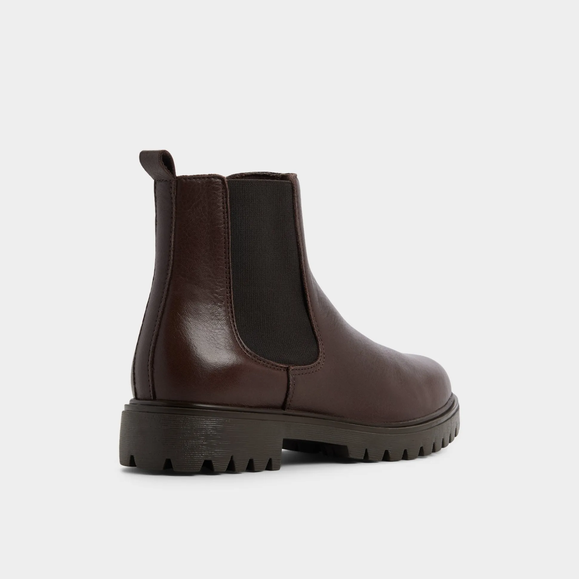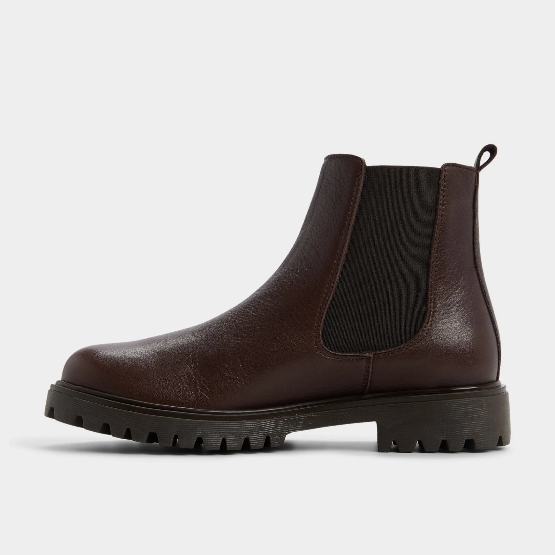 Rich chocolate leather grounds this streamlined Chelsea boot, with treaded lug soles delivering city-ready grip and a subtle lift, while elastic side panels make slipping in effortless before the morning coffee. Pair with cropped trousers for presentation days, or swap in a sweater dress when leaf-crunch walks segue into fireside cocktails.