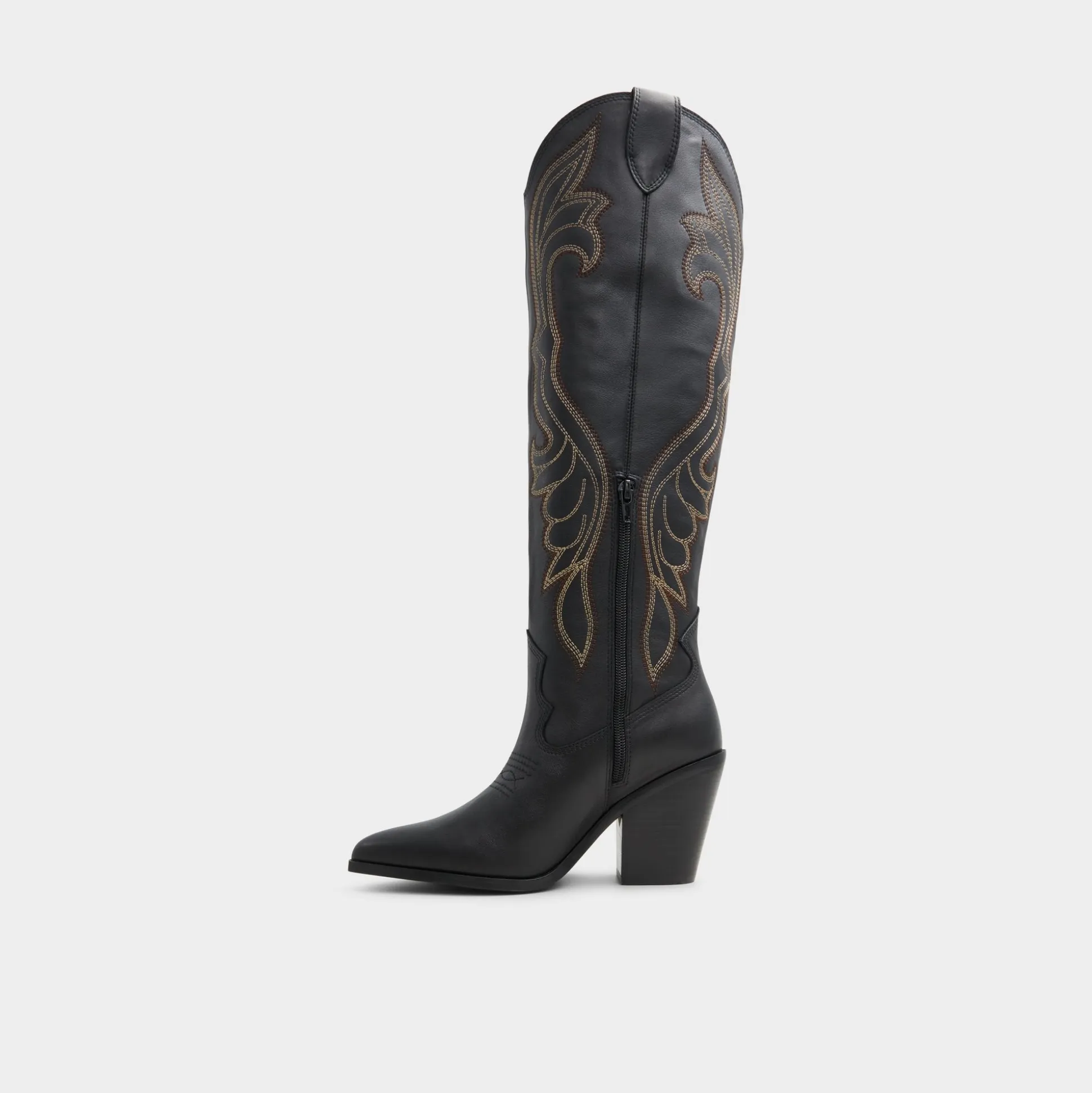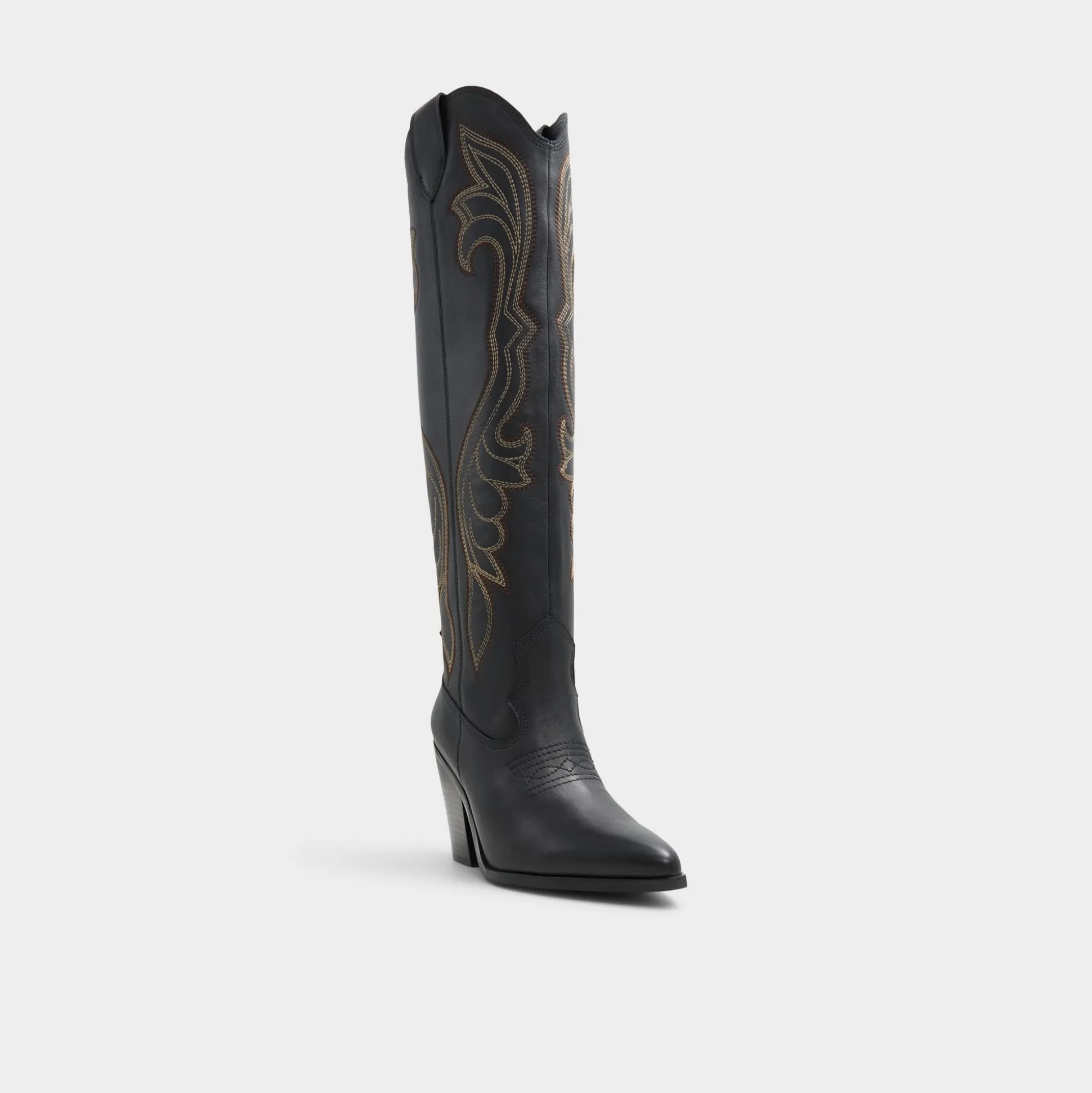 Knee-high silhouette, Cuban heel, western-inspired embroidery and more. These cowgirl boots were made for the wild wild west!