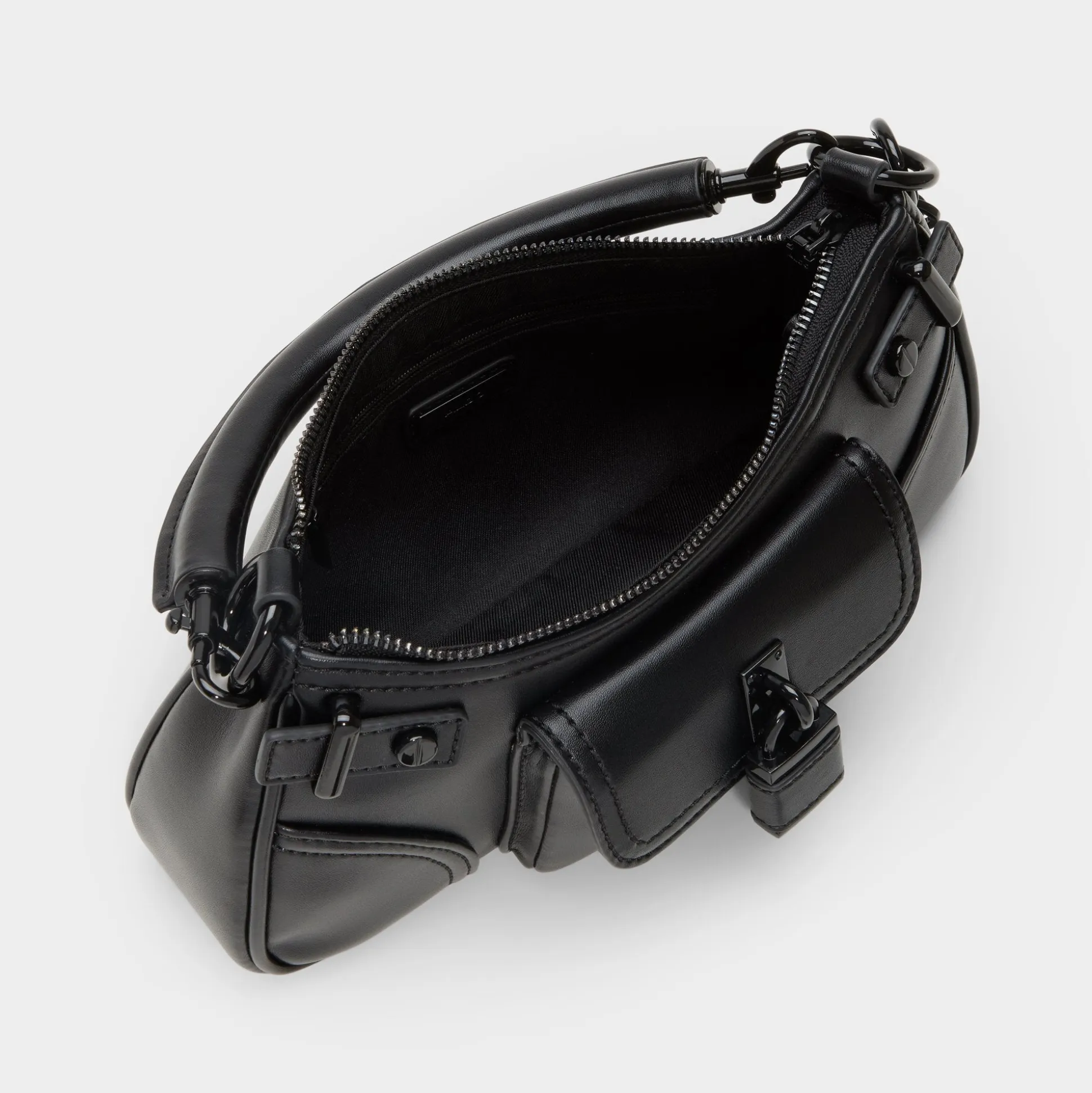 Clip-on straps snap onto sculpted glossy leather, letting this sleek bag switch from polished top-handle arm candy to easy crossbody the instant plans flip. Carry it with a silky gown for rooftop drinks or sling it over wide-leg denim on gallery strolls to seal every look with effortless shine.