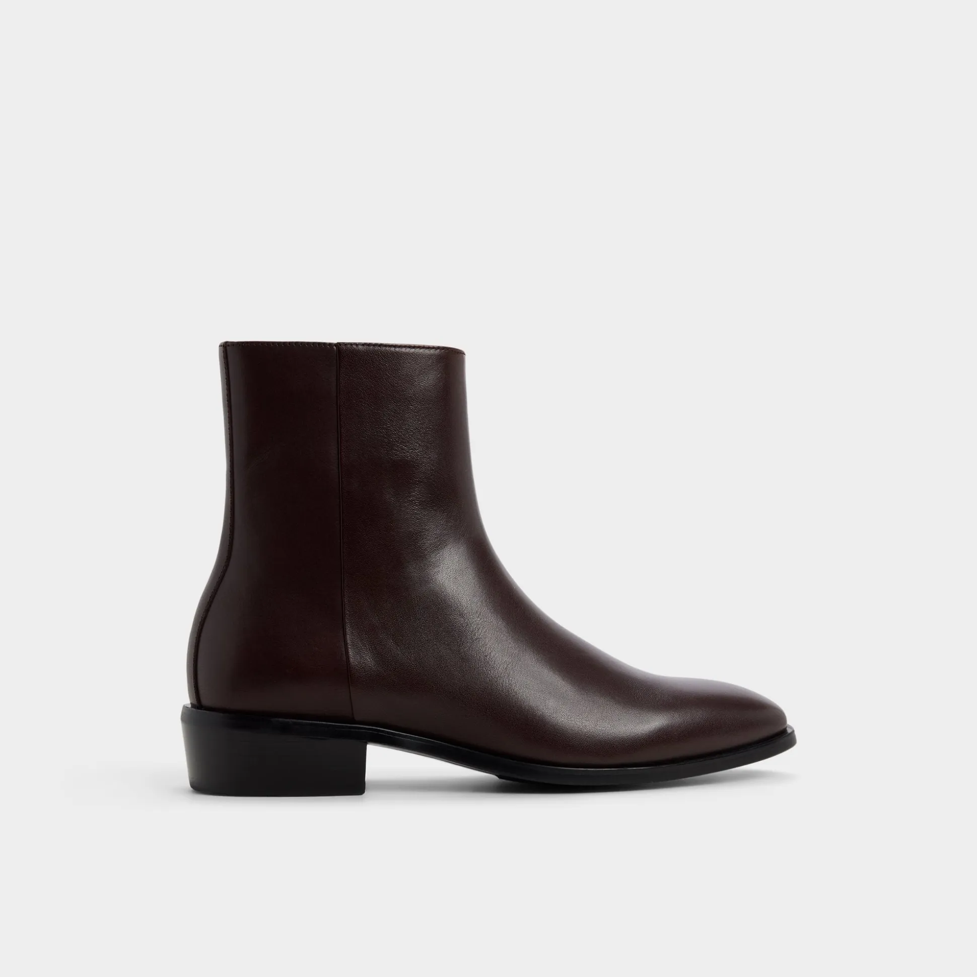 Rich burgundy leather infuses this ankle boot with an air of confidence, and a hidden side zip slides you in smoothly, while a low block heel ensures city-friendly movement from morning meetings to late-night adventures. Pair it with slim black denim for art show evenings or match it with charcoal suits at winter weddings-the sleek almond toe remains polished.