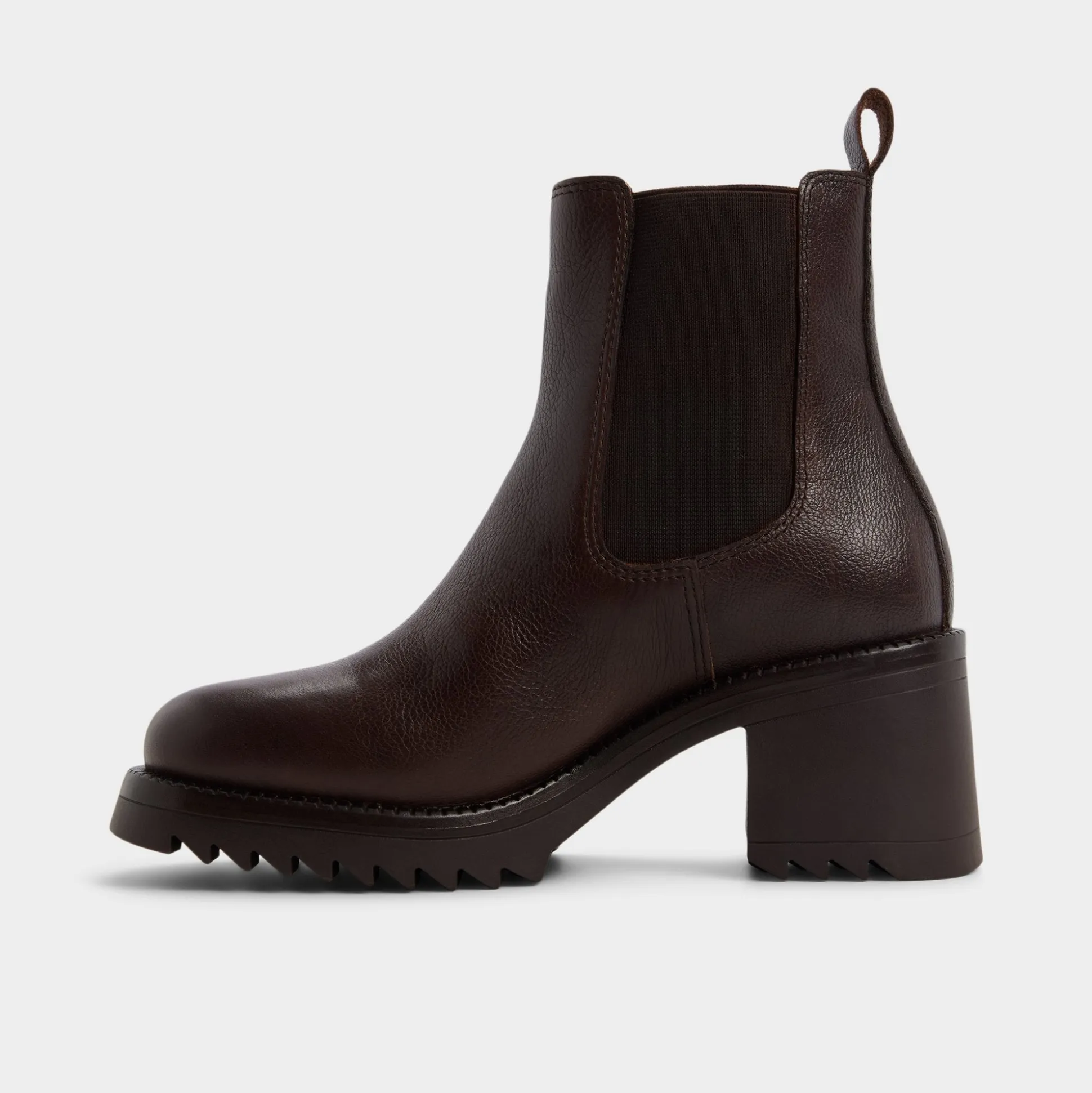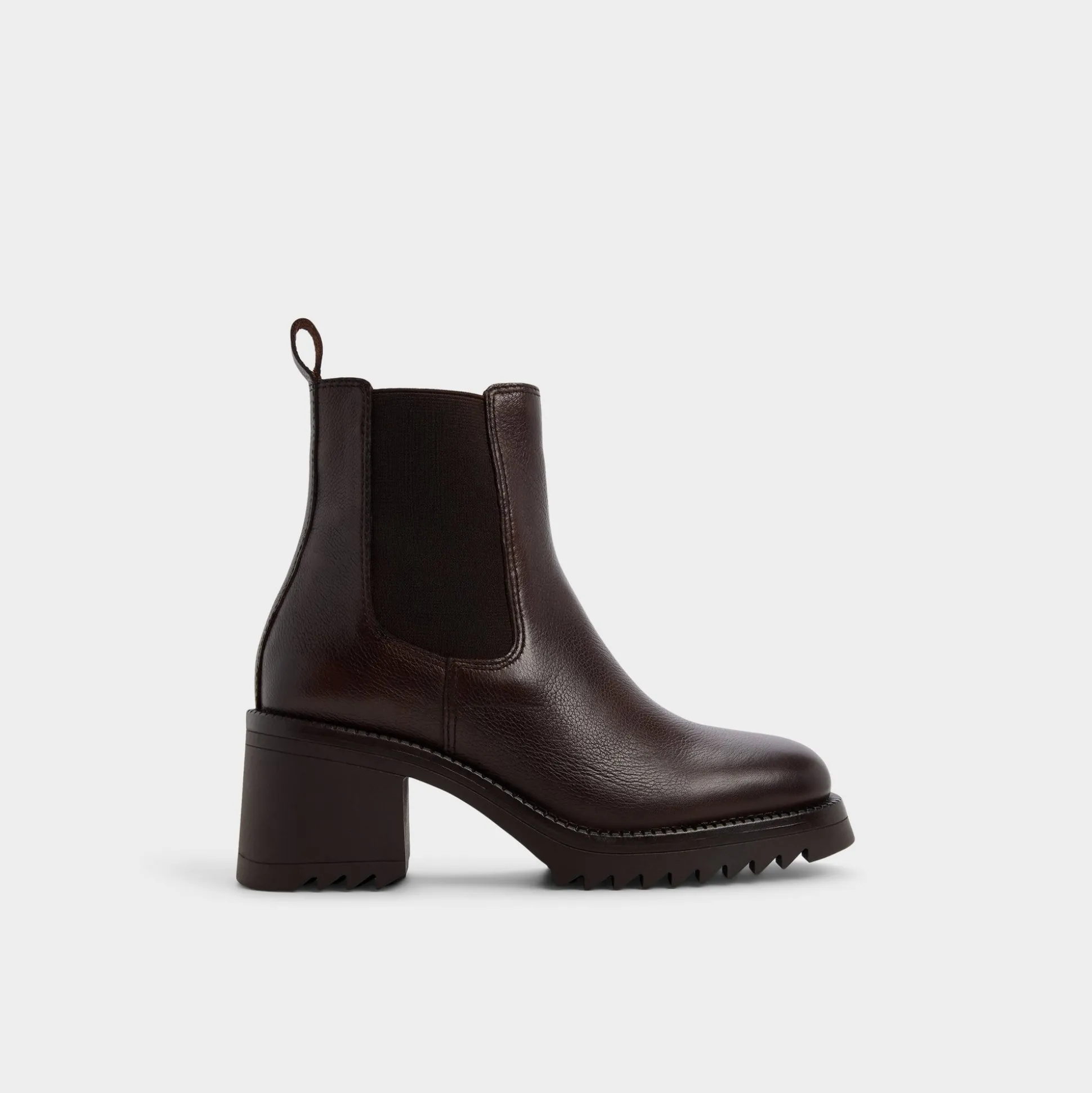 Rich espresso leather wraps the ankle in sleek Chelsea lines, while a lugged block heel gives you confident lift and a grounded, city-ready stride that lasts from morning meetings to after-hours wanderings. Pair with tailored jeans for seminars, or slip into a knit midi for after-hours pub stops.