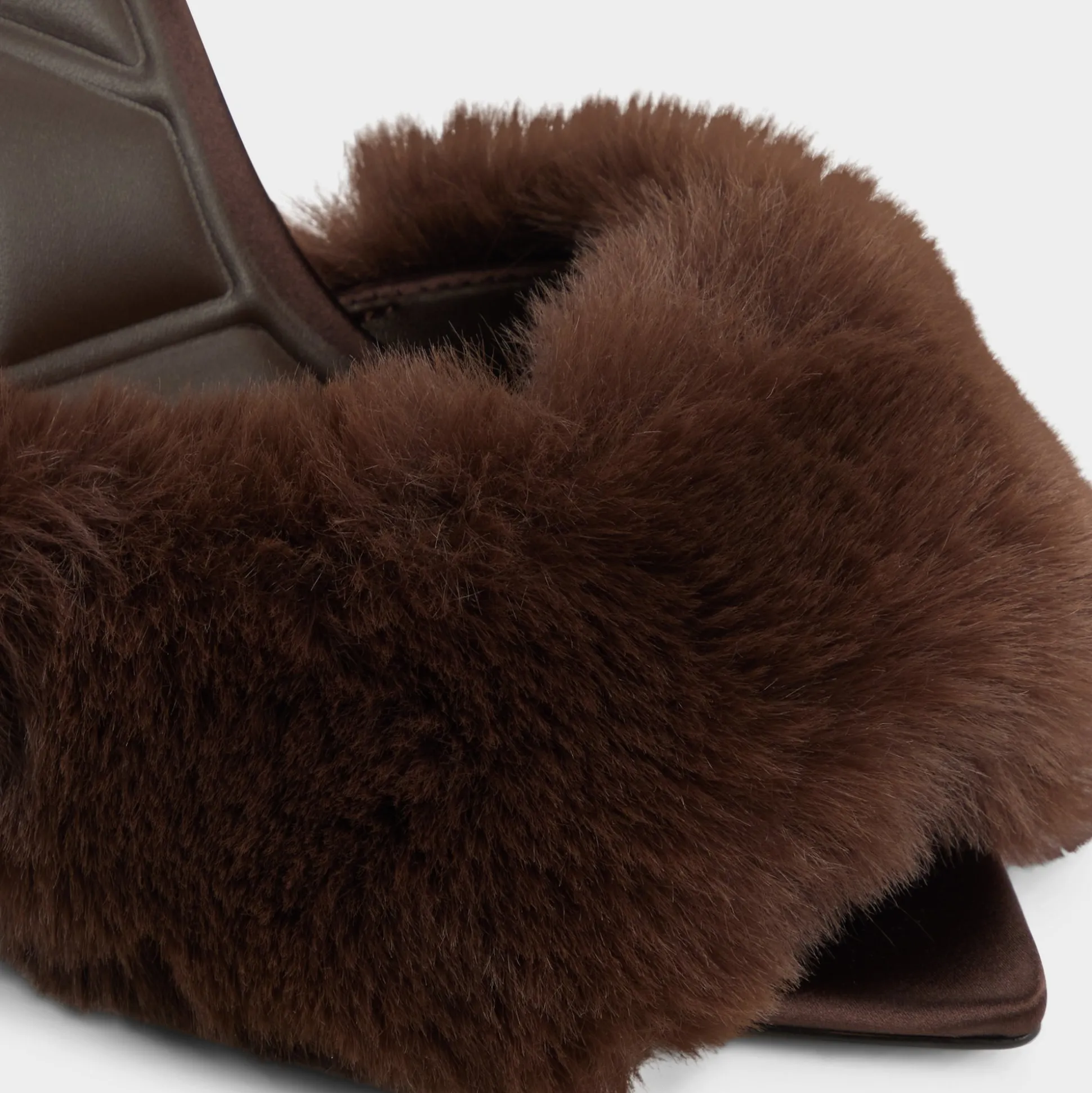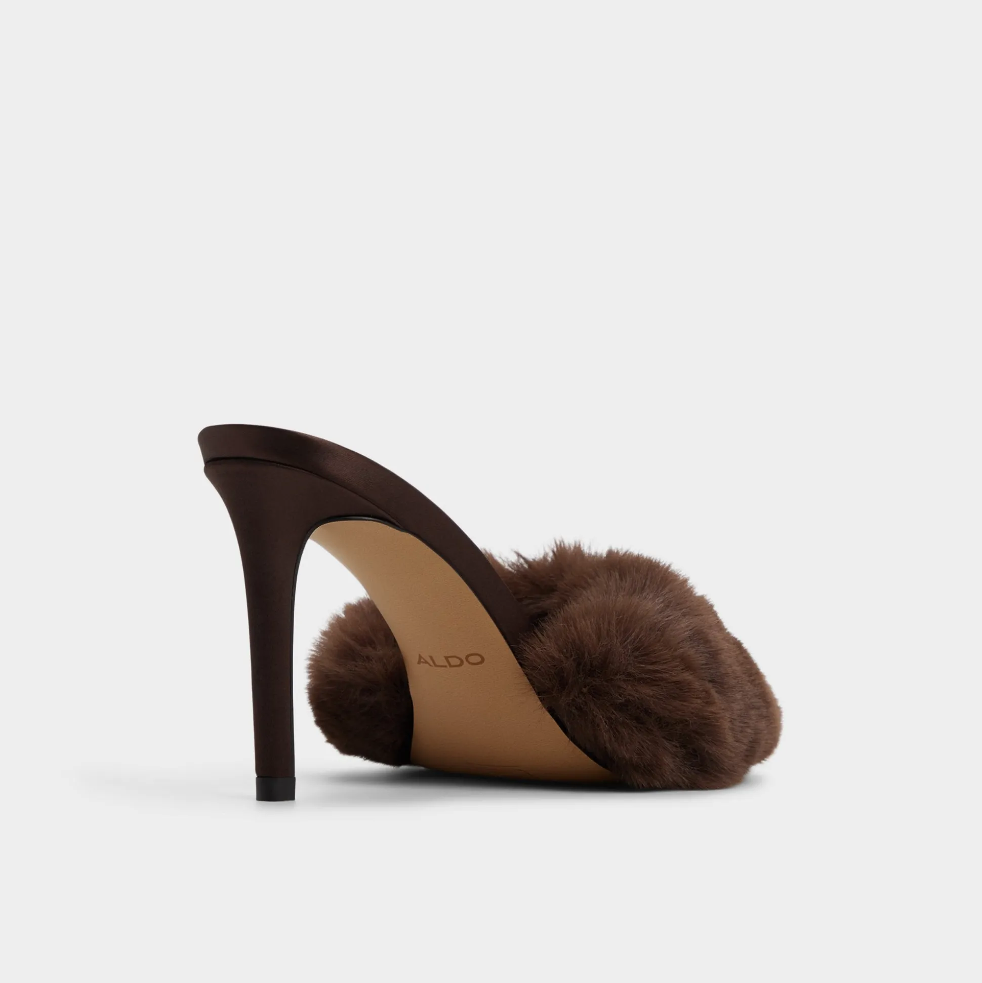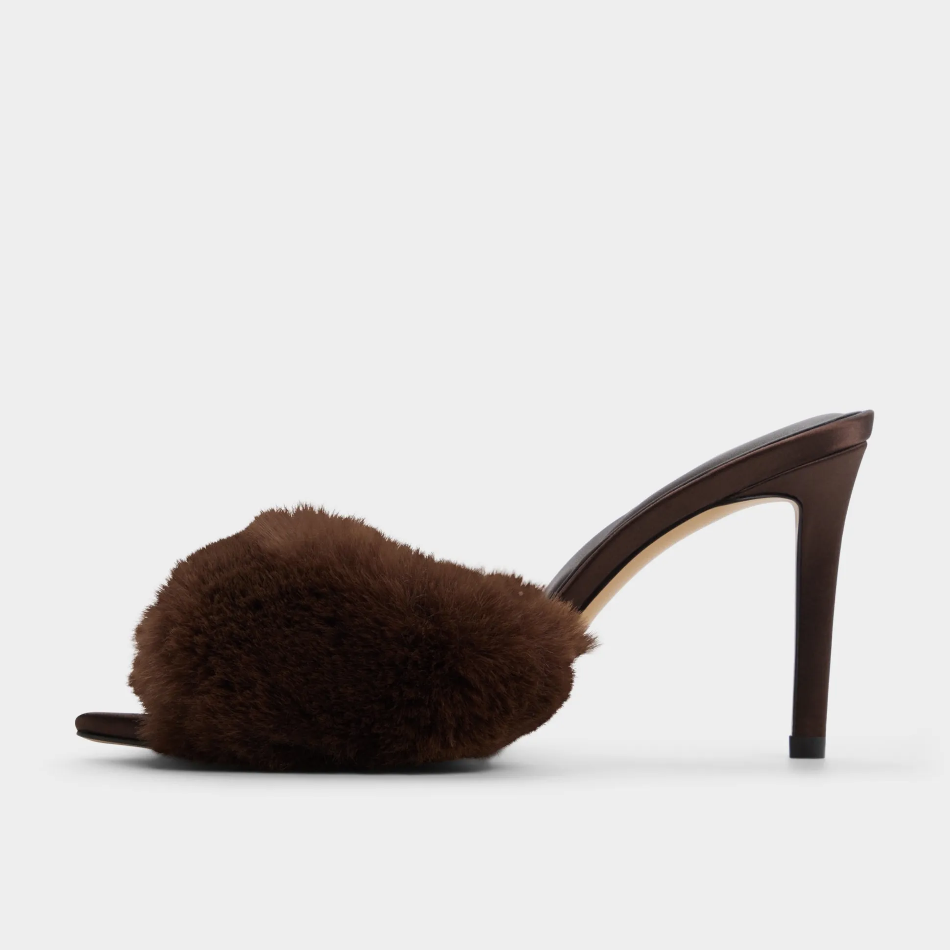 Faux fur covers the vamp of this sleek stiletto mule, offering movie-night softness while the sculpted heel provides instant elongation, making slip-ons feel like a private red-carpet moment. Pair with tailored trousers for rooftop martinis, or switch to a slinky slip dress when house parties call for photo-booth glamour.