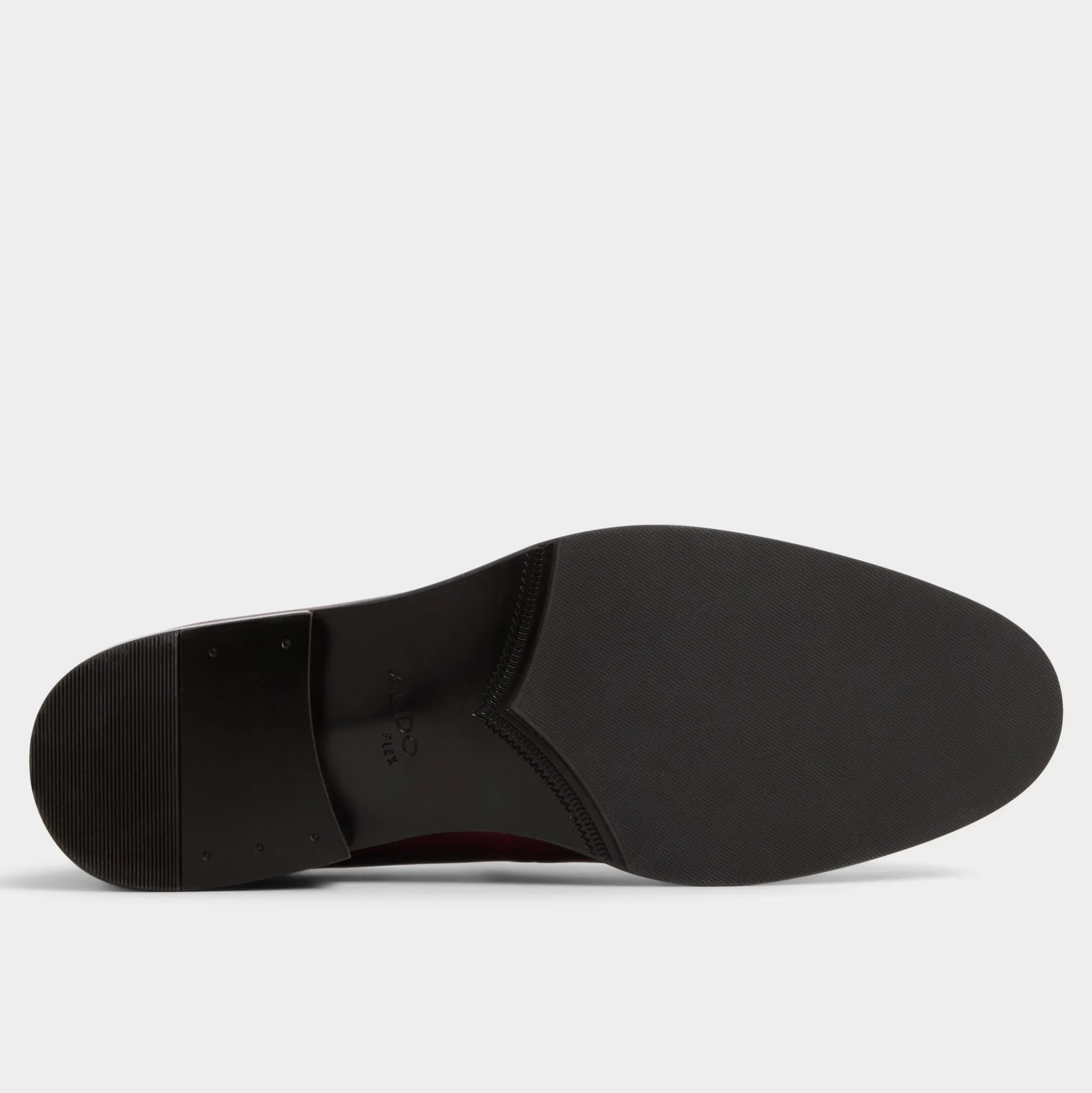 Burgundy leather meets chain-linked detail on this loafer, with soft lining and a low stacked heel that keeps steps smooth from boardroom moments to after-work plans, while a metal accent adds shine. Pair it with a tailored suit for presentations or cuffed chinos for gallery nights, letting the finish spark conversations.