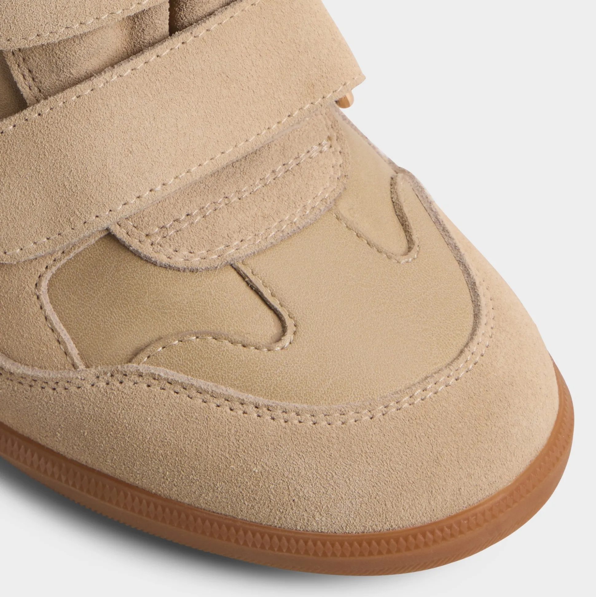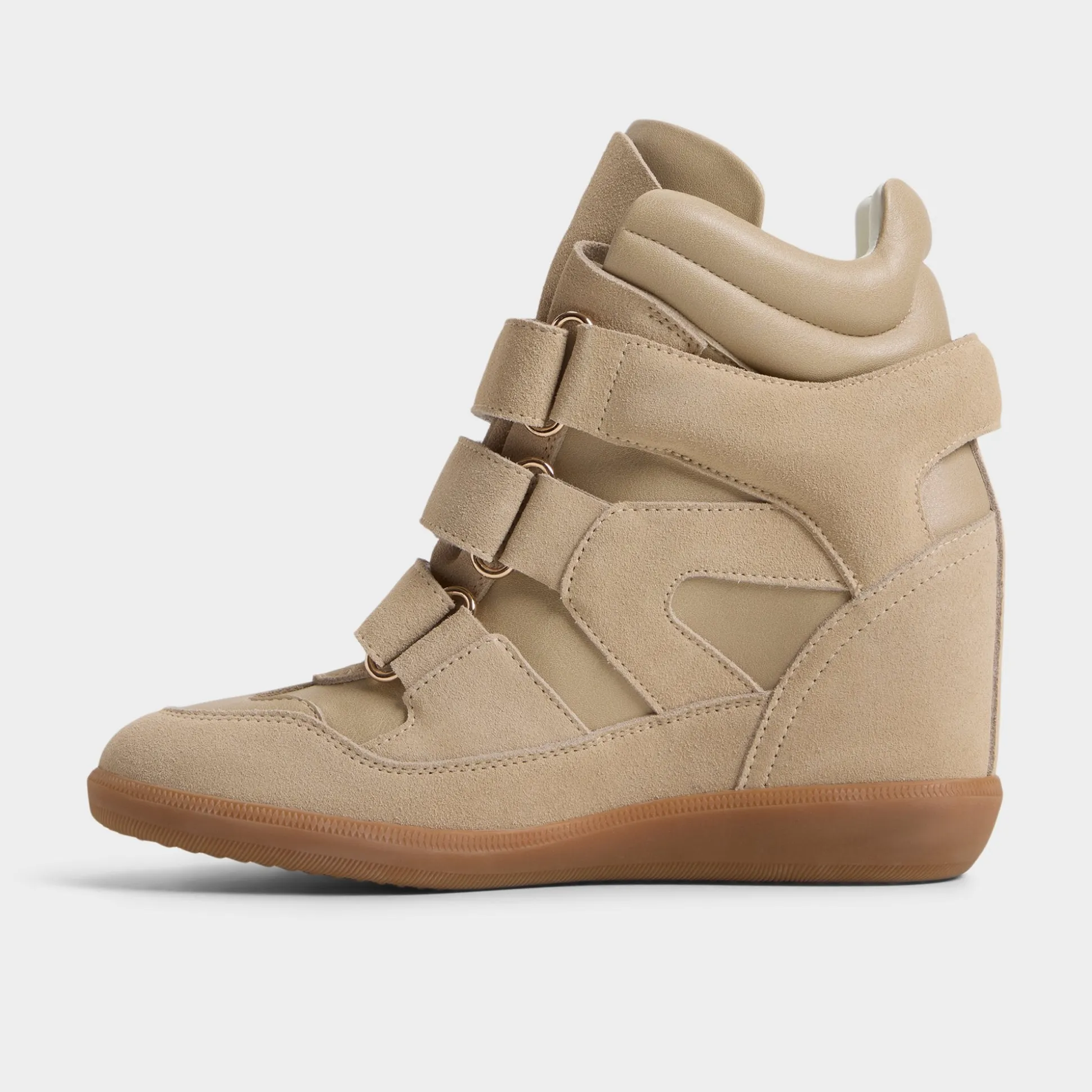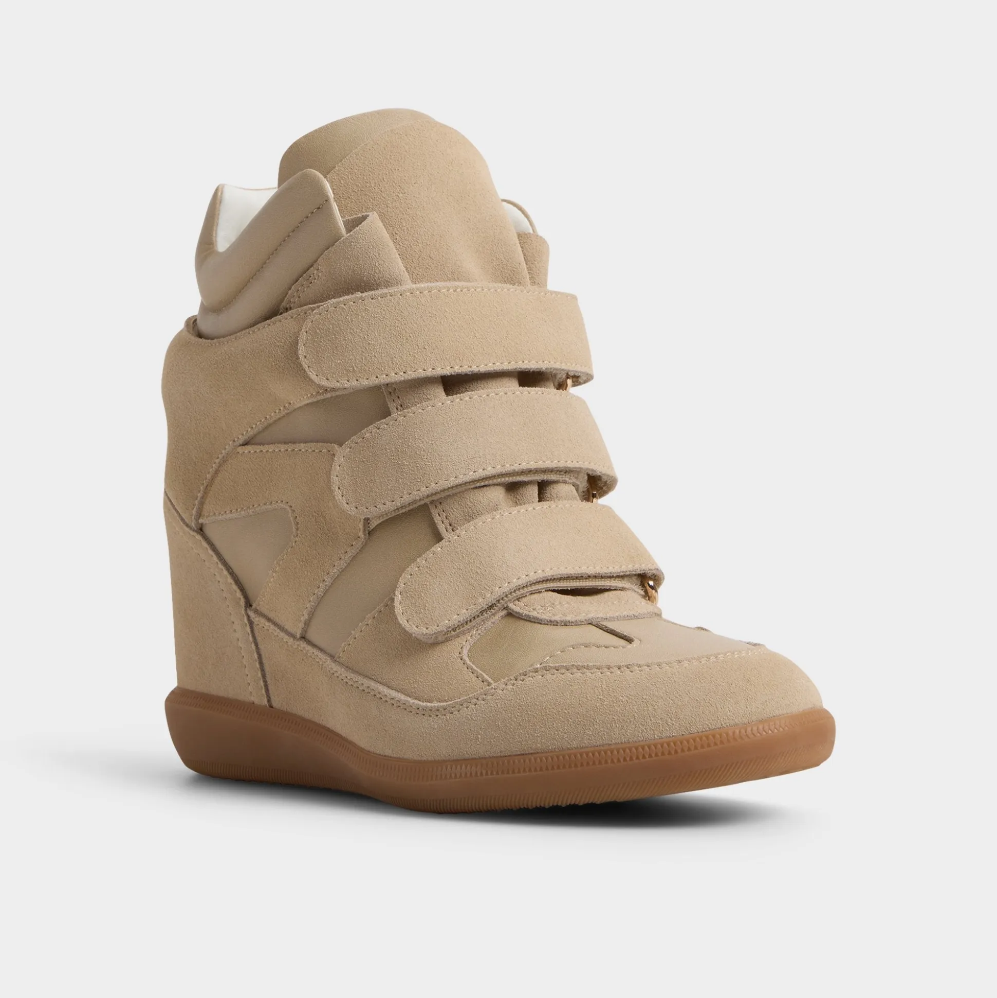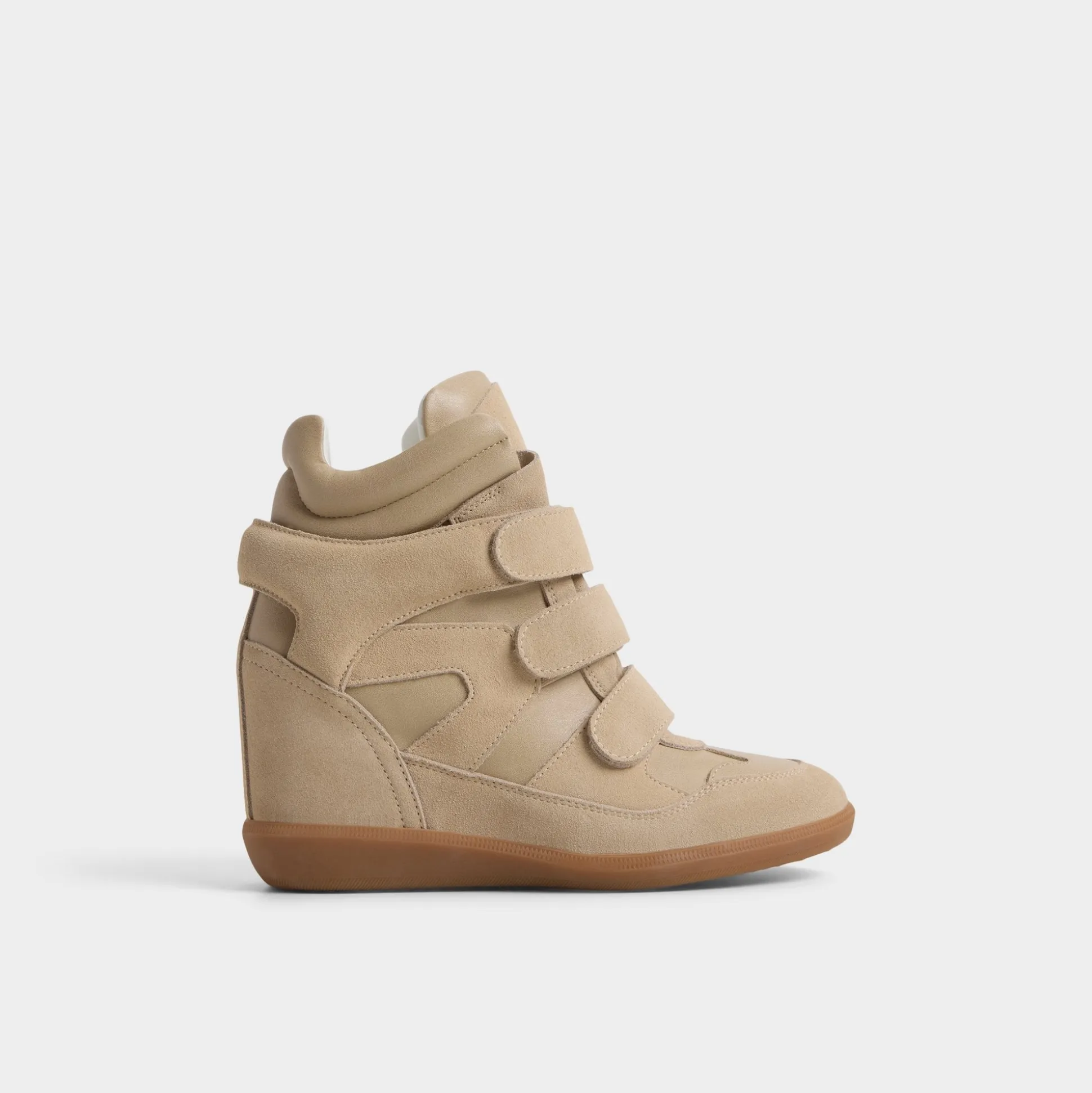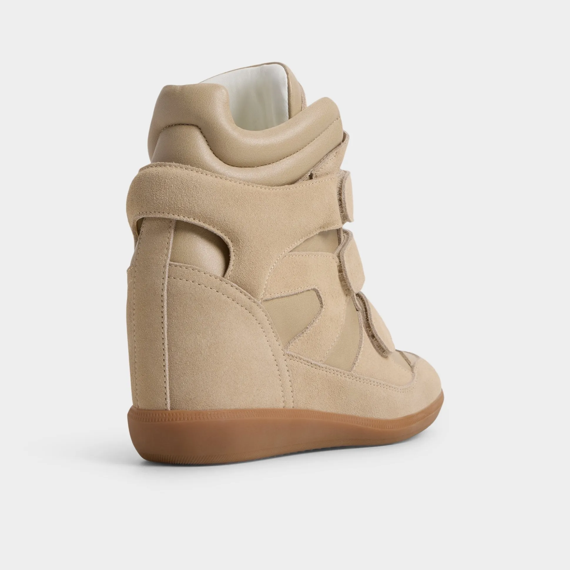 Soft suede envelopes a futuristic high-top silhouette, with Velcro straps delivering a bold, city-ready edge and a hidden wedge that quietly boosts your stride from first coffee dash to late-night rooftop. Pair with sleek leggings for campus presentations, or swap in a printed midi when festival sunsets call.