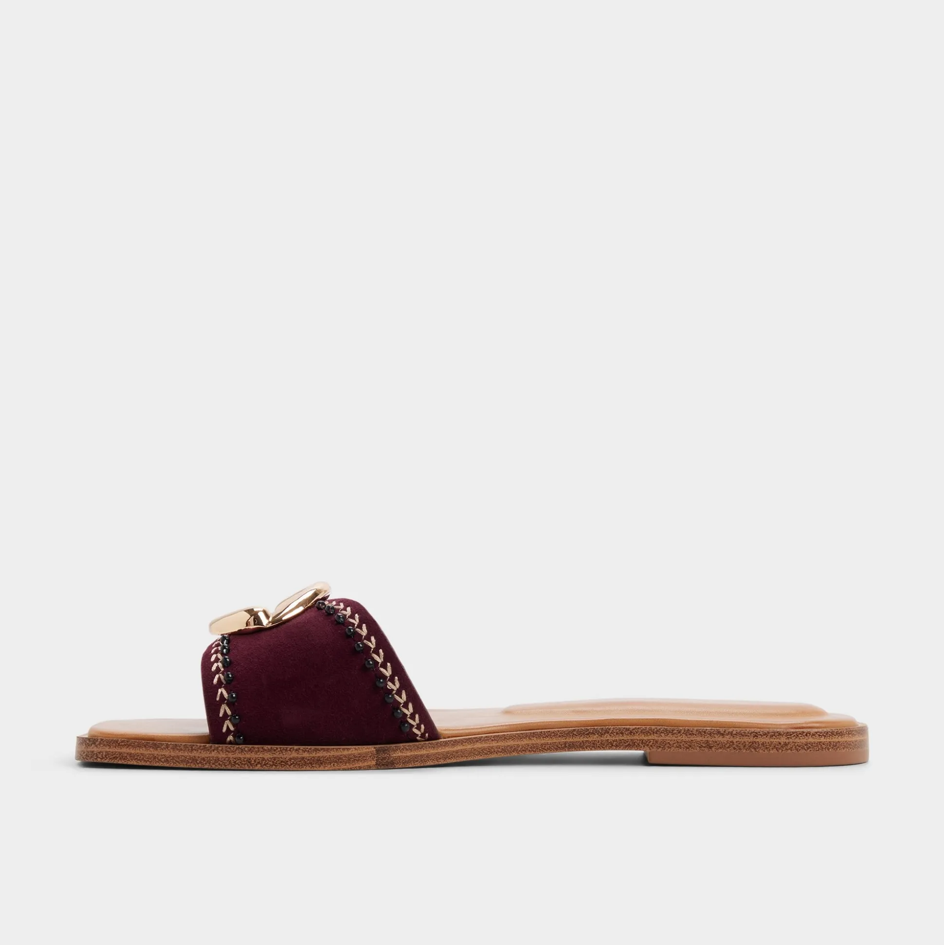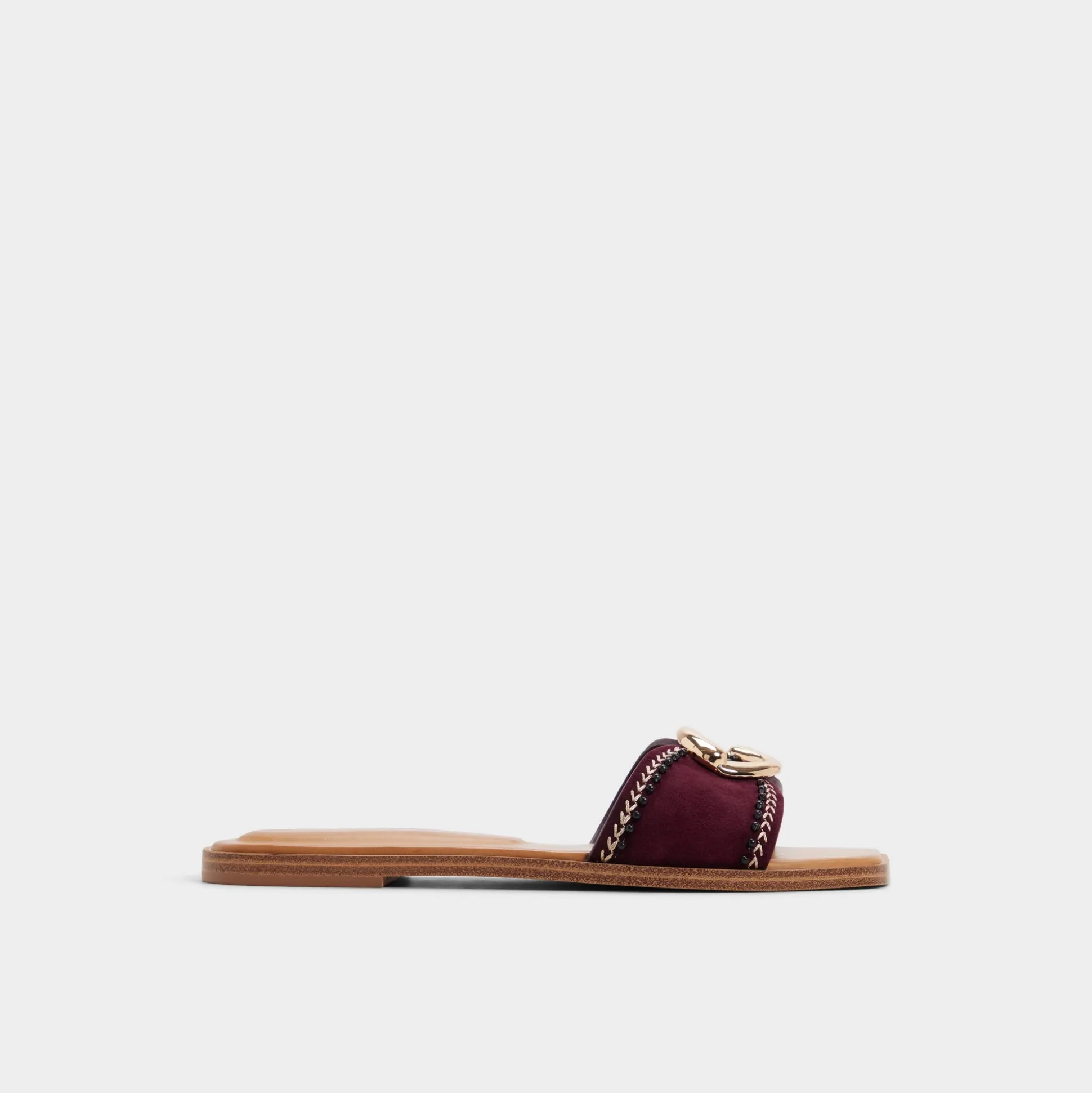 The Biggin flat sandal in rich burgundy pairs timeless style with practical comfort. Gold hardware adds a touch of polish, making it ideal for vacation days—from beach walks to casual dinners. Easy to pack, effortless to wear.