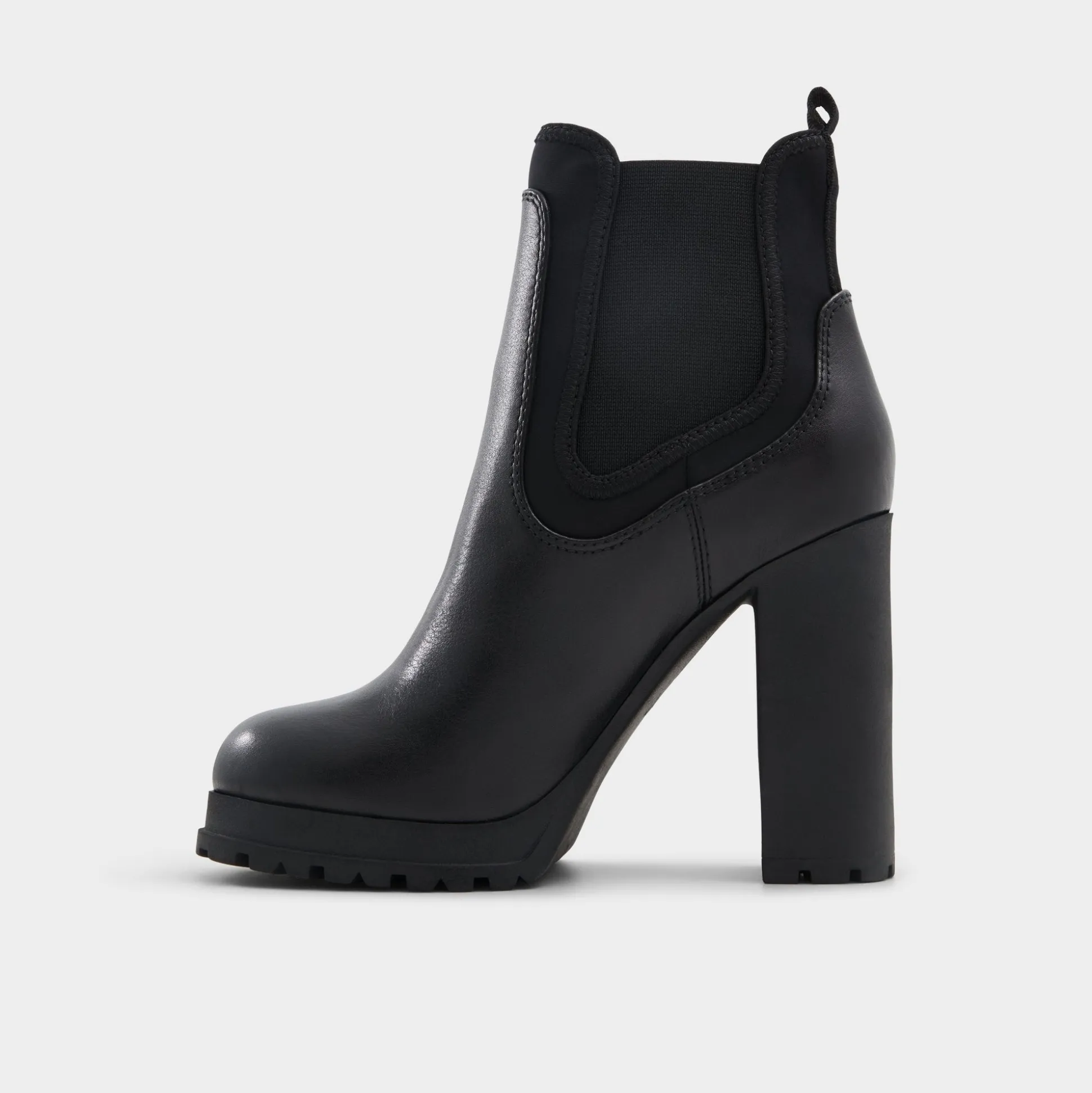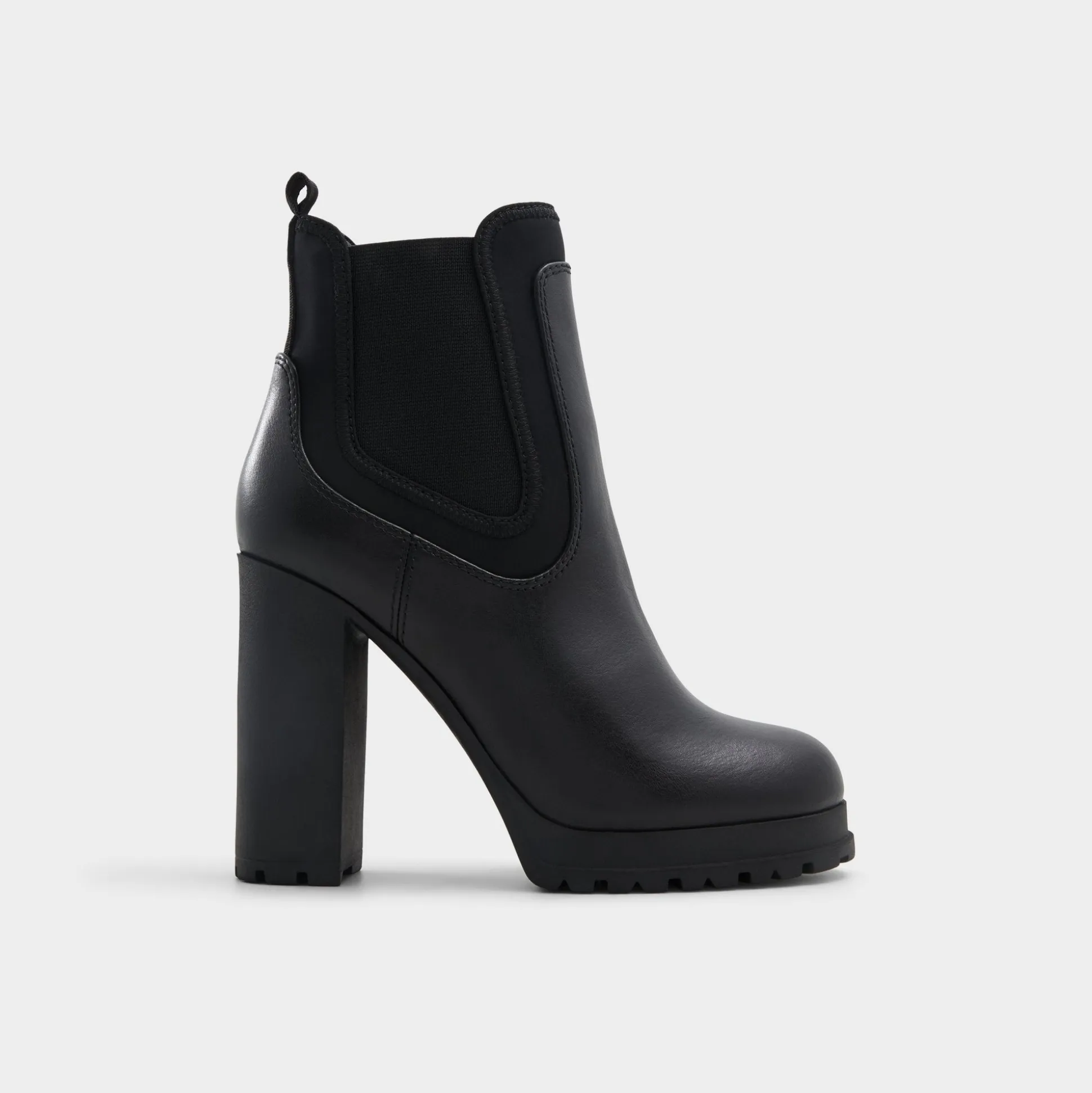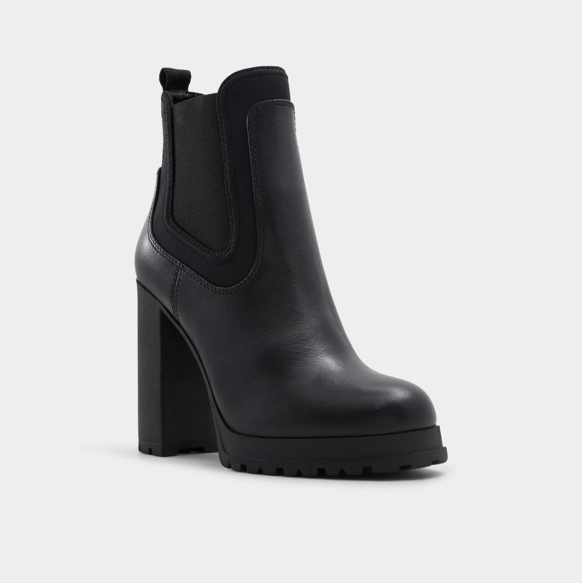 A sky-reaching block heel meets a grippy lug sole in this sleek leather Chelsea boot, giving city-stomping nerve while stretch side panels keep the pull-on fit smooth and drama-free. Pair with cropped flares for office brainstorms, or anchor a slip dress when after-dark concerts call for extra edge.