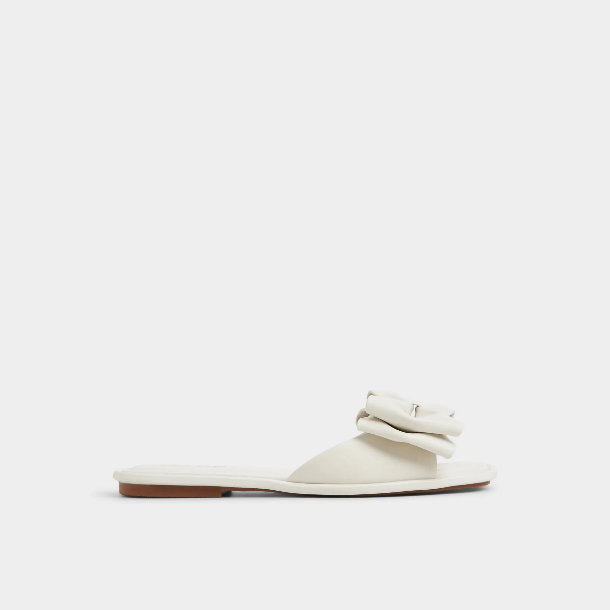 Cloud-soft leather slide with a sculpted bow across the upper elevates a clean square-toe silhouette into a wearable moment of quiet, everyday confidence you reach for again and again. Pair with cropped denim for cafe runs, or ground a linen maxi for seaside dinners and moonlit strolls, making every step feel effortless and ready for anything.