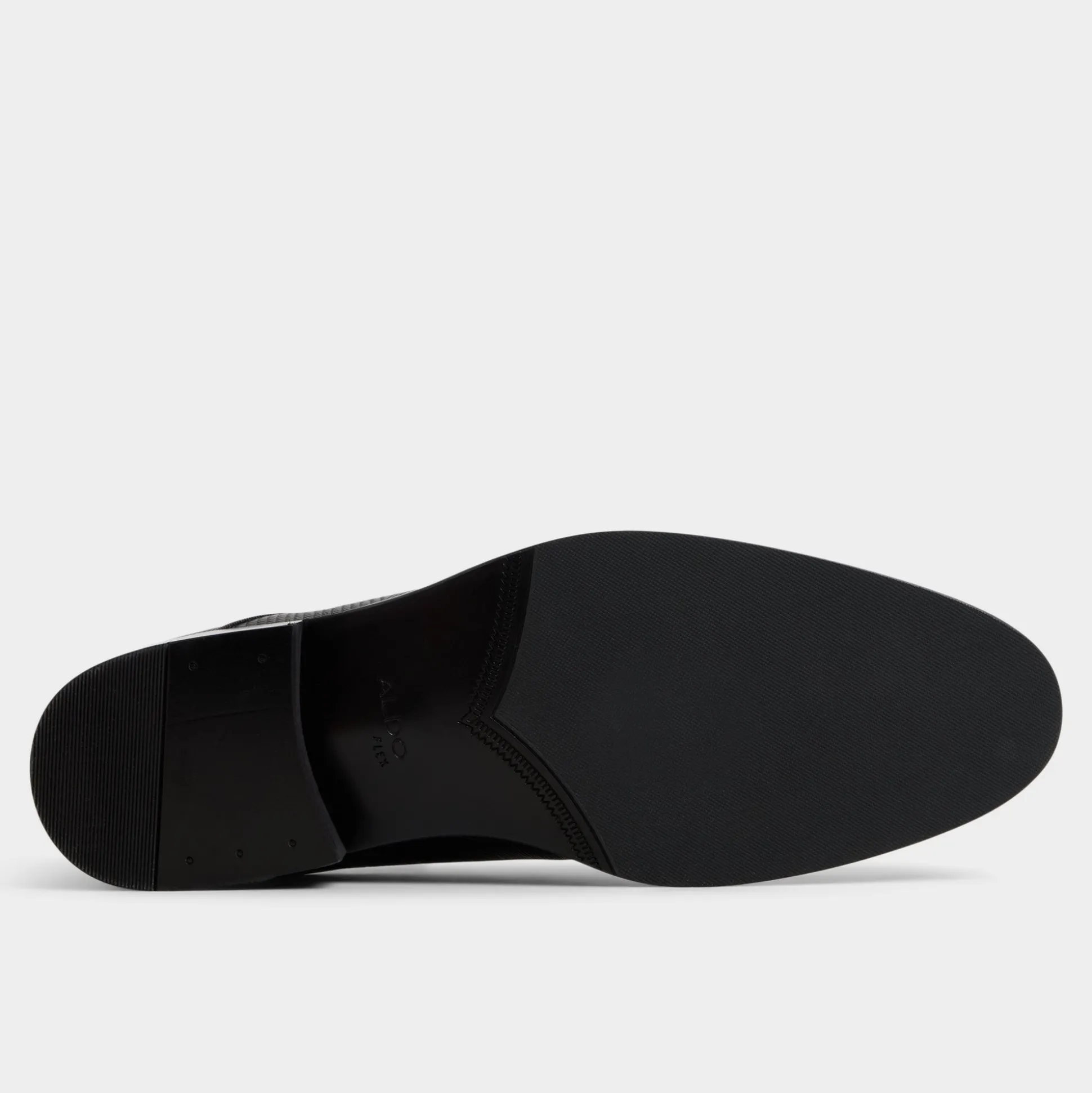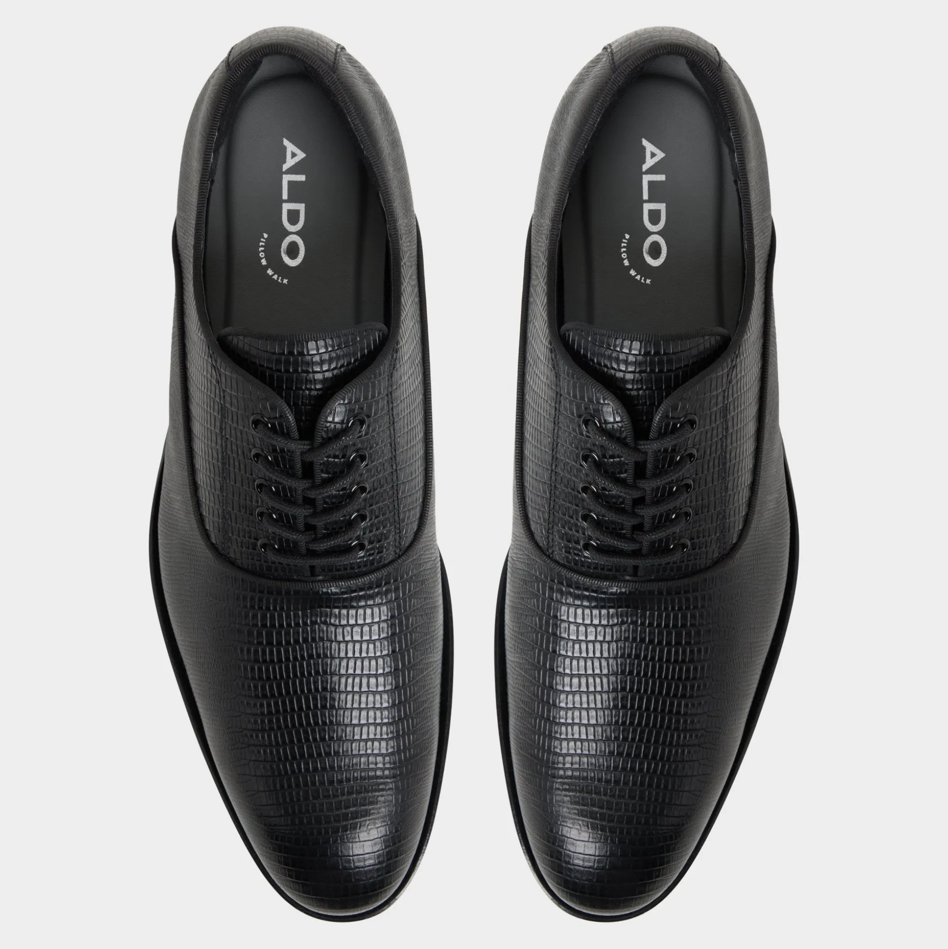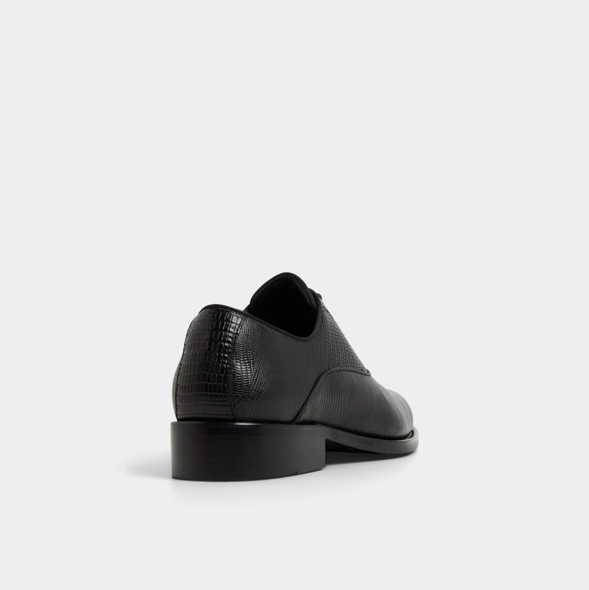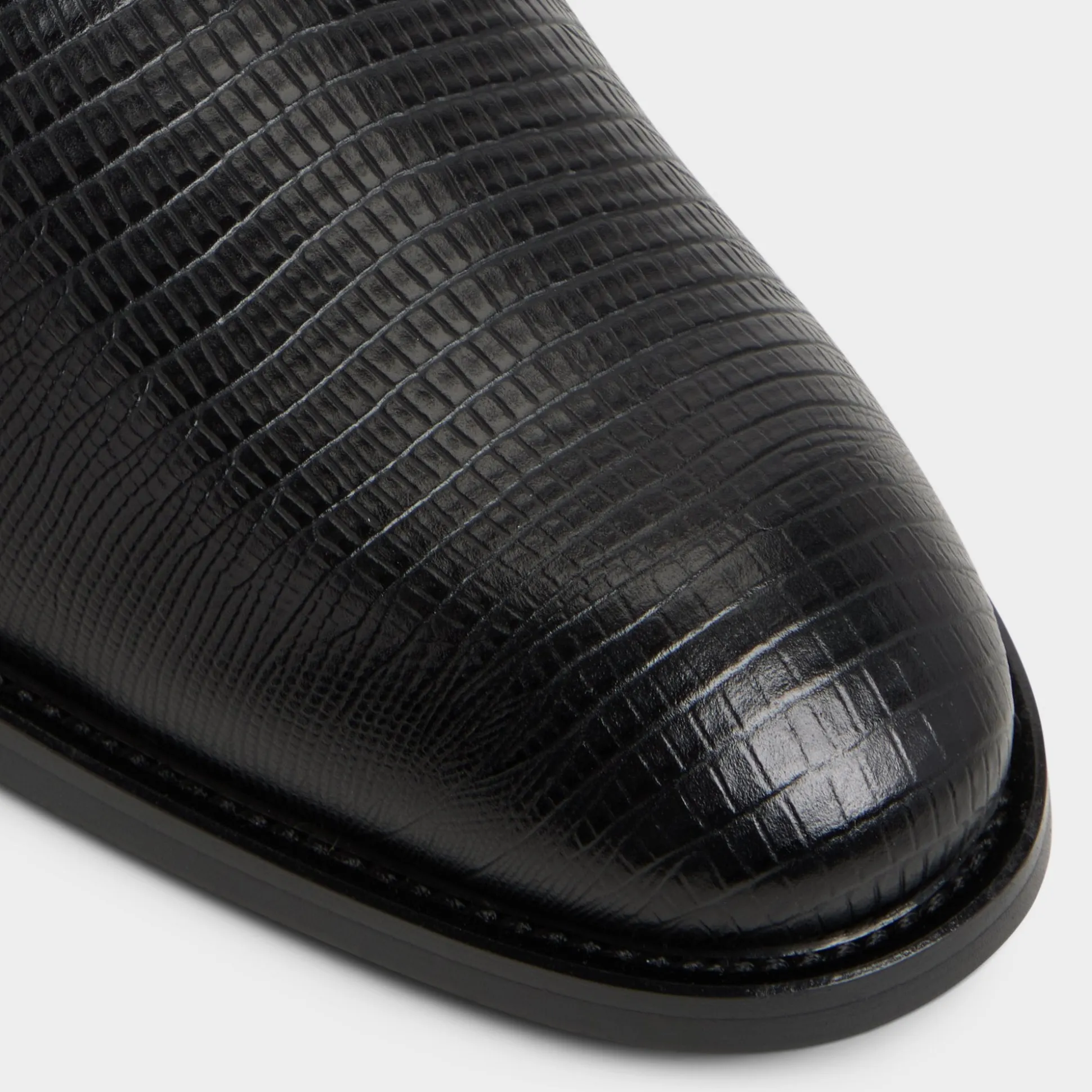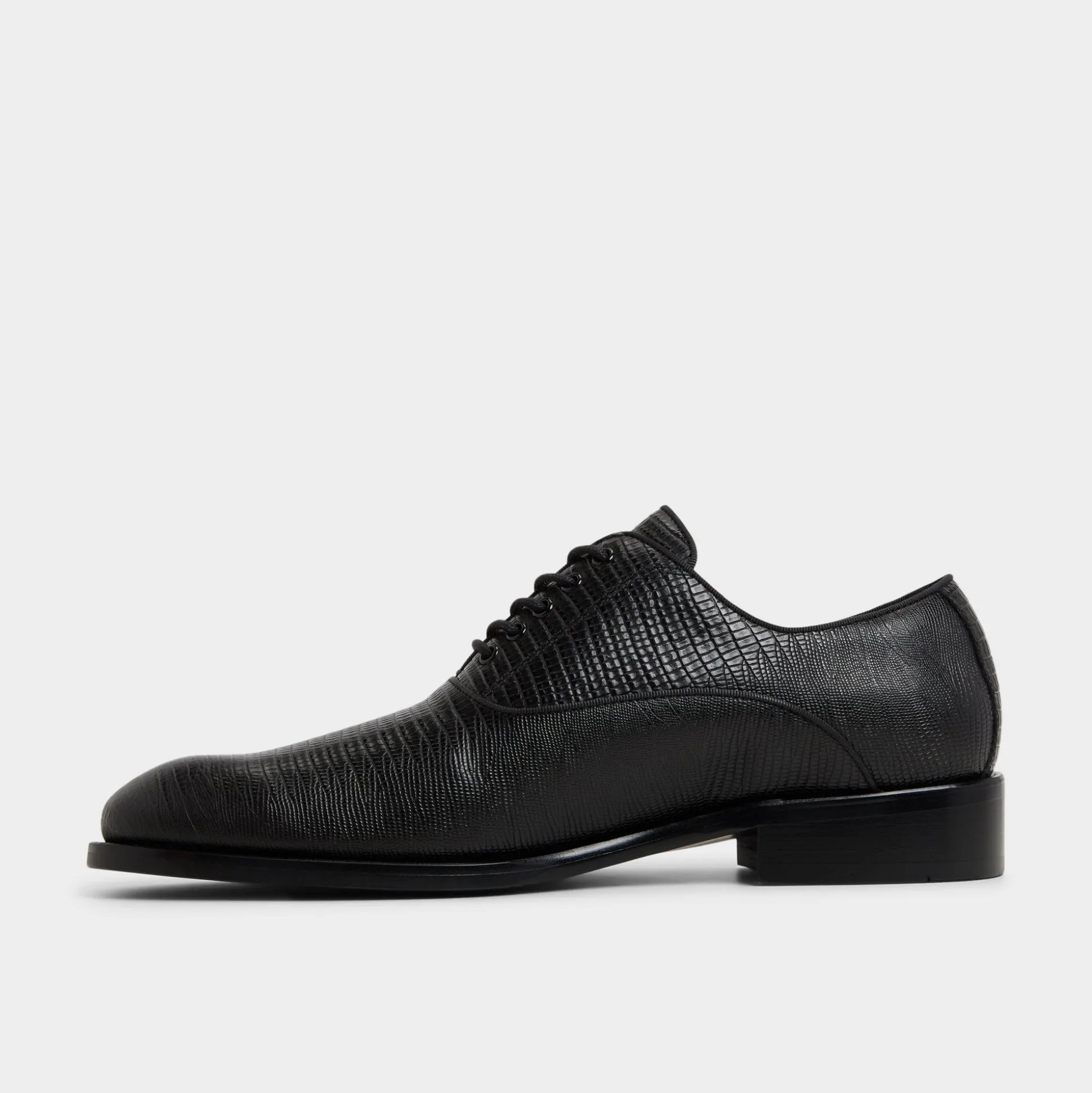 Lizard-embossed black leather brings an understated flair to an Oxford, with its texture playing with the light, while a sleek almond toe and leather sole keep things sharp and comfortable for long evenings. Pair it with a charcoal suit for interviews or team with dark denim and a blazer for jazz nights to show how the subtle grain fits both.