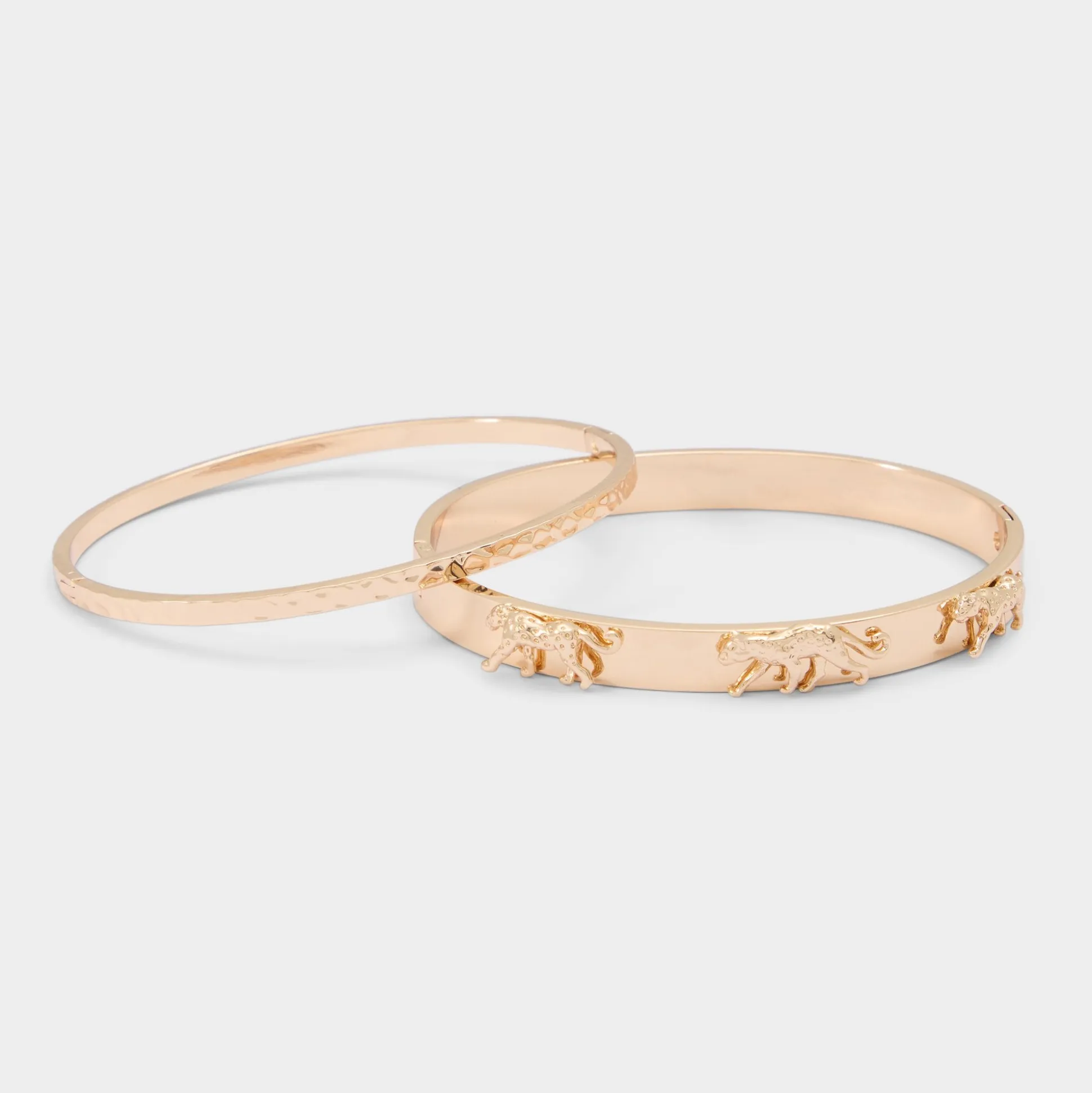 Glossy gold bangles etched with striding cheetahs deliver instant stack appeal and a whisper of untamed confidence that catch light with every move on wrists everywhere. Layer them over satin slips at twilight parties or stack beside your watch during campus days for quiet flair.