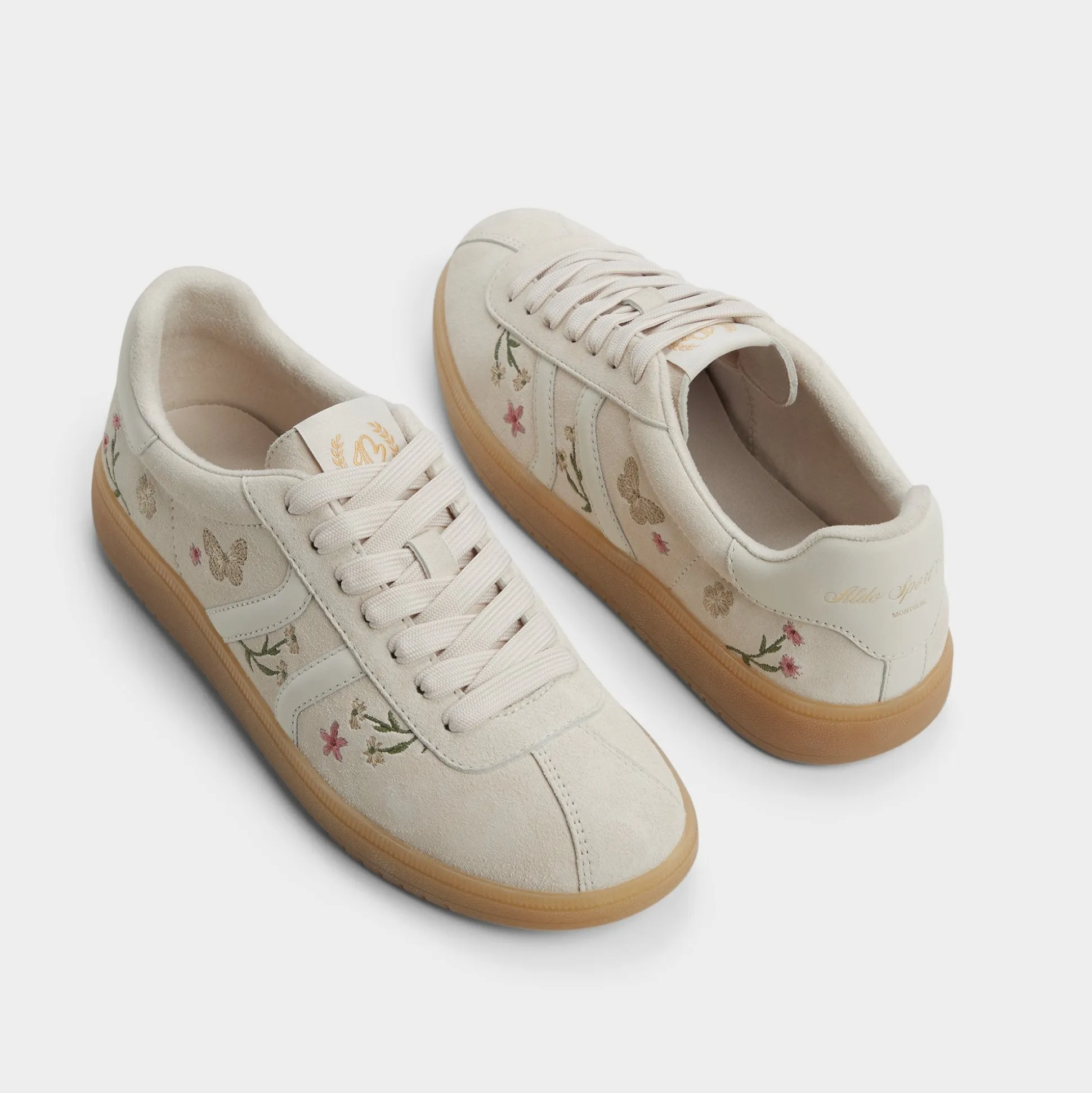 Garden-party embroidery dances across supple leather on a retro cup-sole sneaker, while cloud-soft padding lets you glide through city doors and coffee runs with easy, confident steps from desk to dusk. Pair with cropped dungarees for weekend markets, or choose a flowy midi when patio brunch drifts toward twilight walks.
