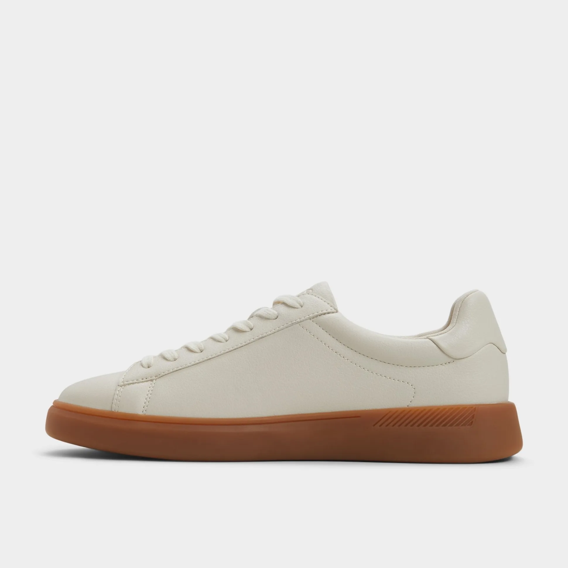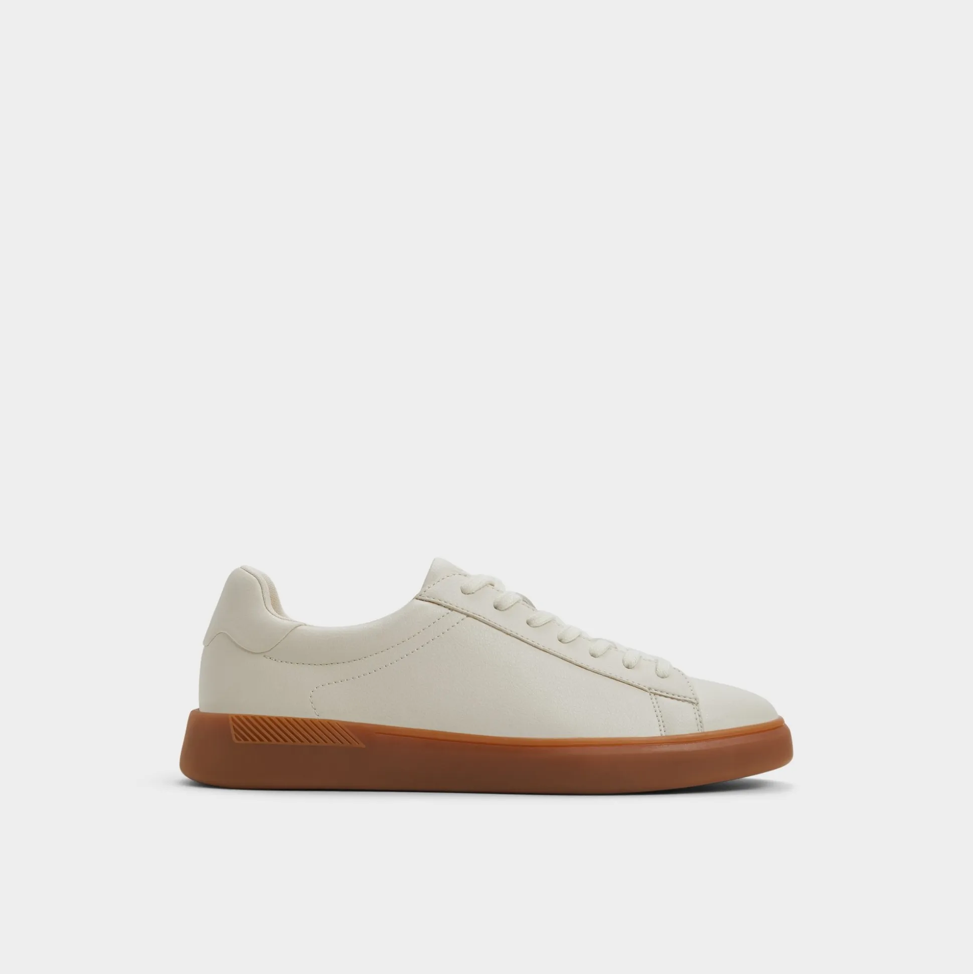 Chalk-white synthetic leather pairs with a caramel gum sole in this low-top retro design, with a slim silhouette and herringbone tread for all-day grip. Team it with cuffed joggers at markets or smart chinos on casual Fridays, ready for work, weekend errands, and everything in between.