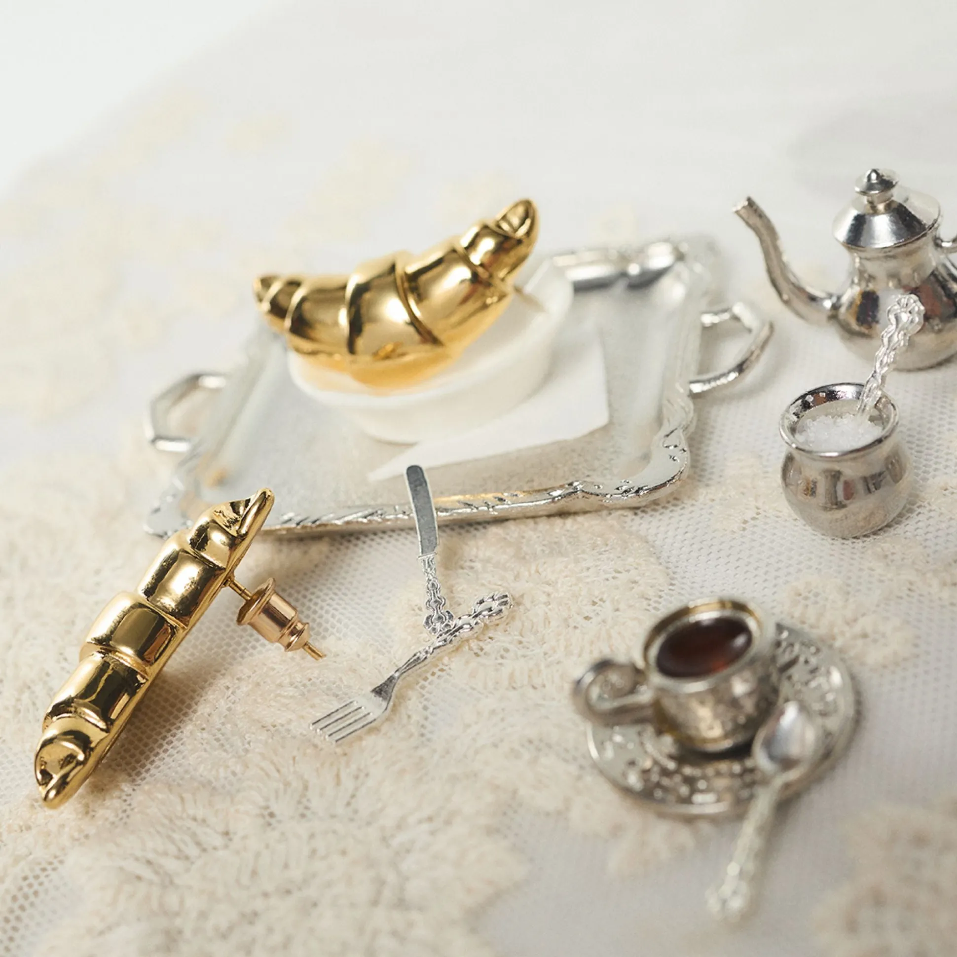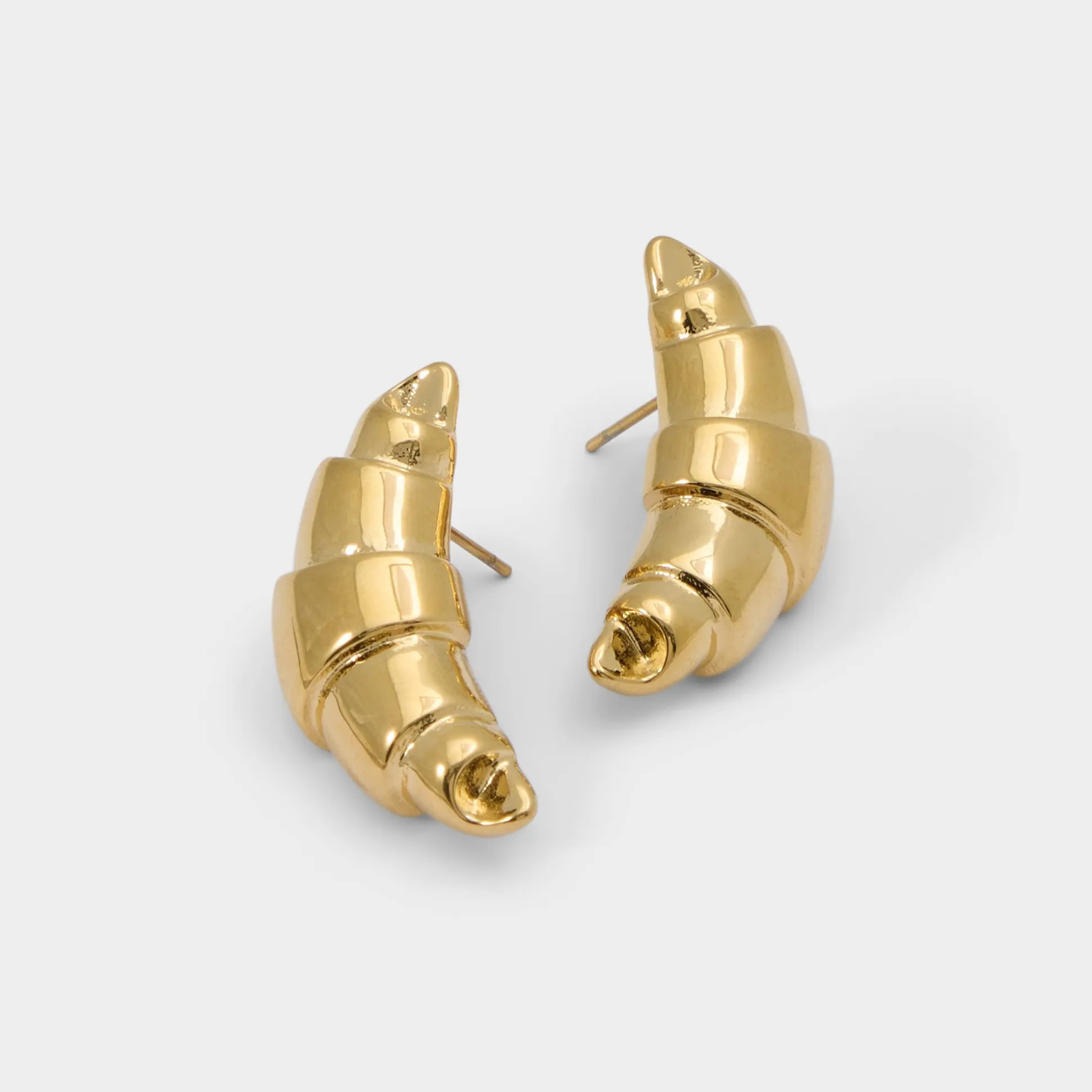 Croissant-stud accents sculpt glossy metal into a playful silhouette that catches morning light with quiet whimsy, elevating everyday looks without shouting, and proving tiny curves can carry big mood. Layer them with a crisp blazer for city lunches, or stack beside delicate hoops over a knit dress for weekend charm.
