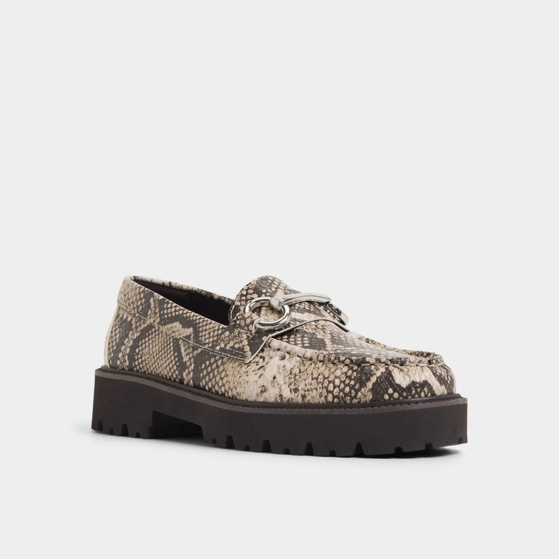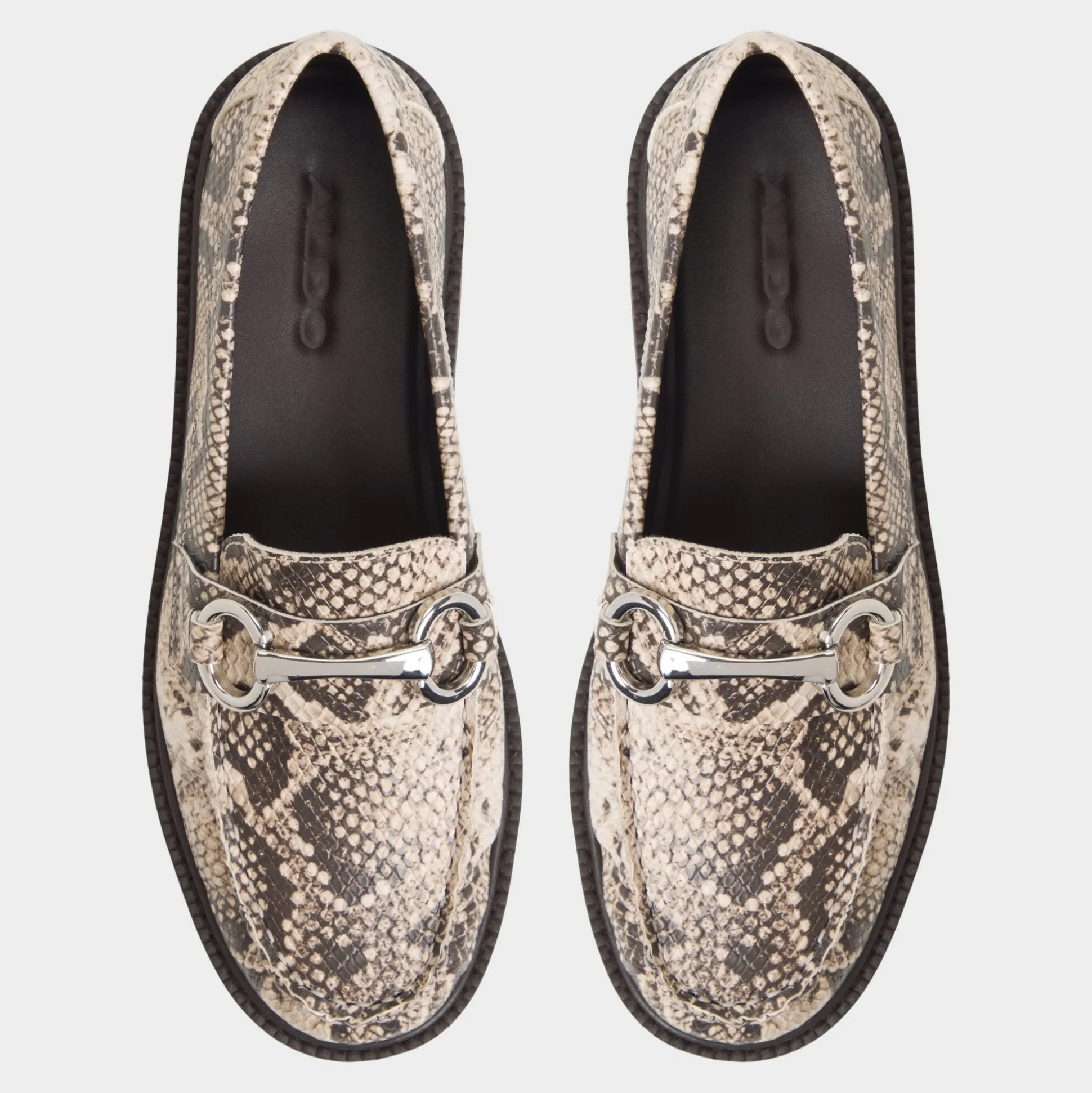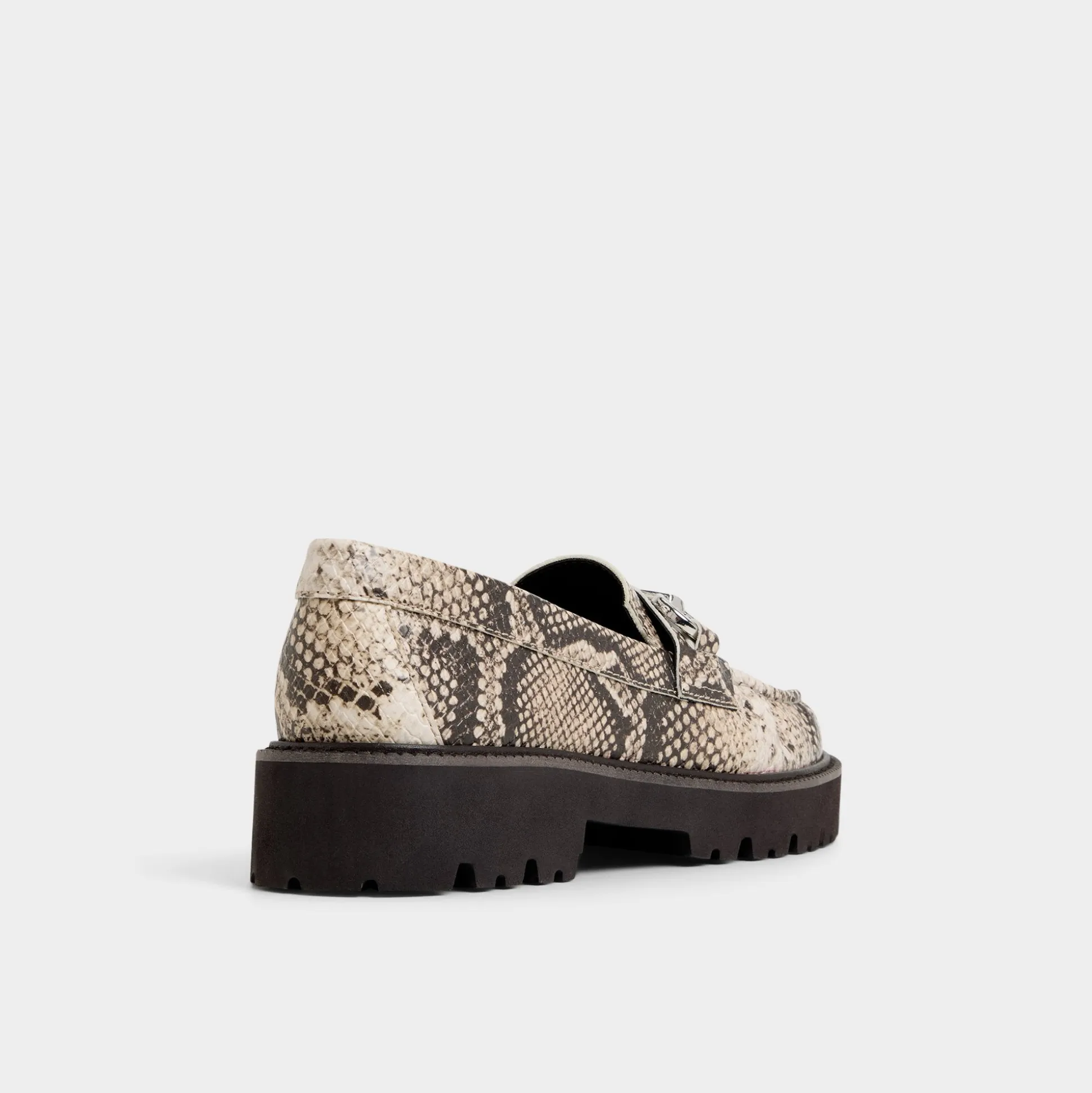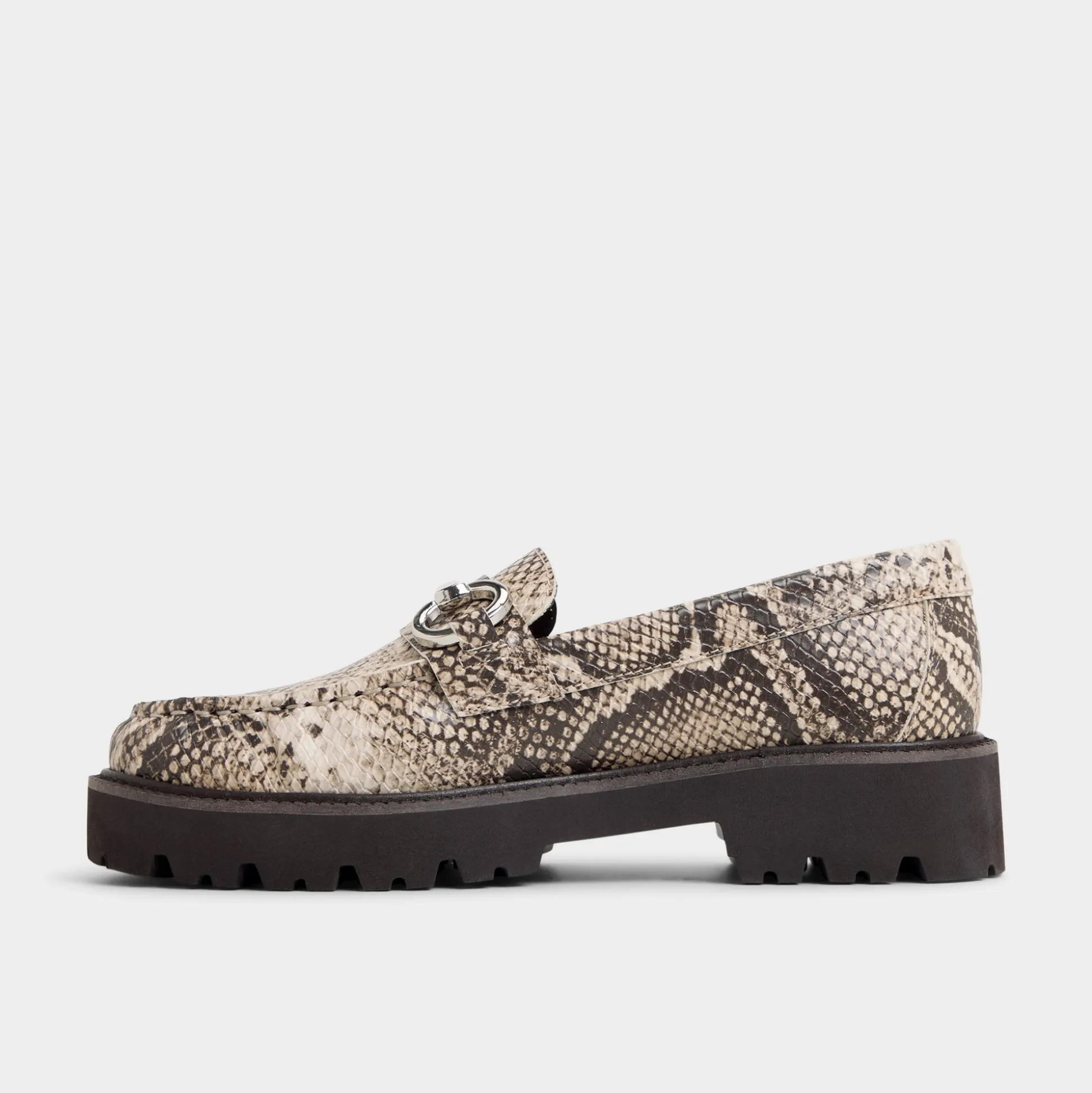 Bold faux-snakeskin elevates this bit-trimmed loafer, while a chunky lug sole adds confident lift and edgy swagger to every stride from morning pitches to after-work city strolls, catching light as you move with polished, wearable drama. Pair with ankle-skimming trousers for sharp office days, or swap in raw-hem denim for weekend indie-market wanderings.