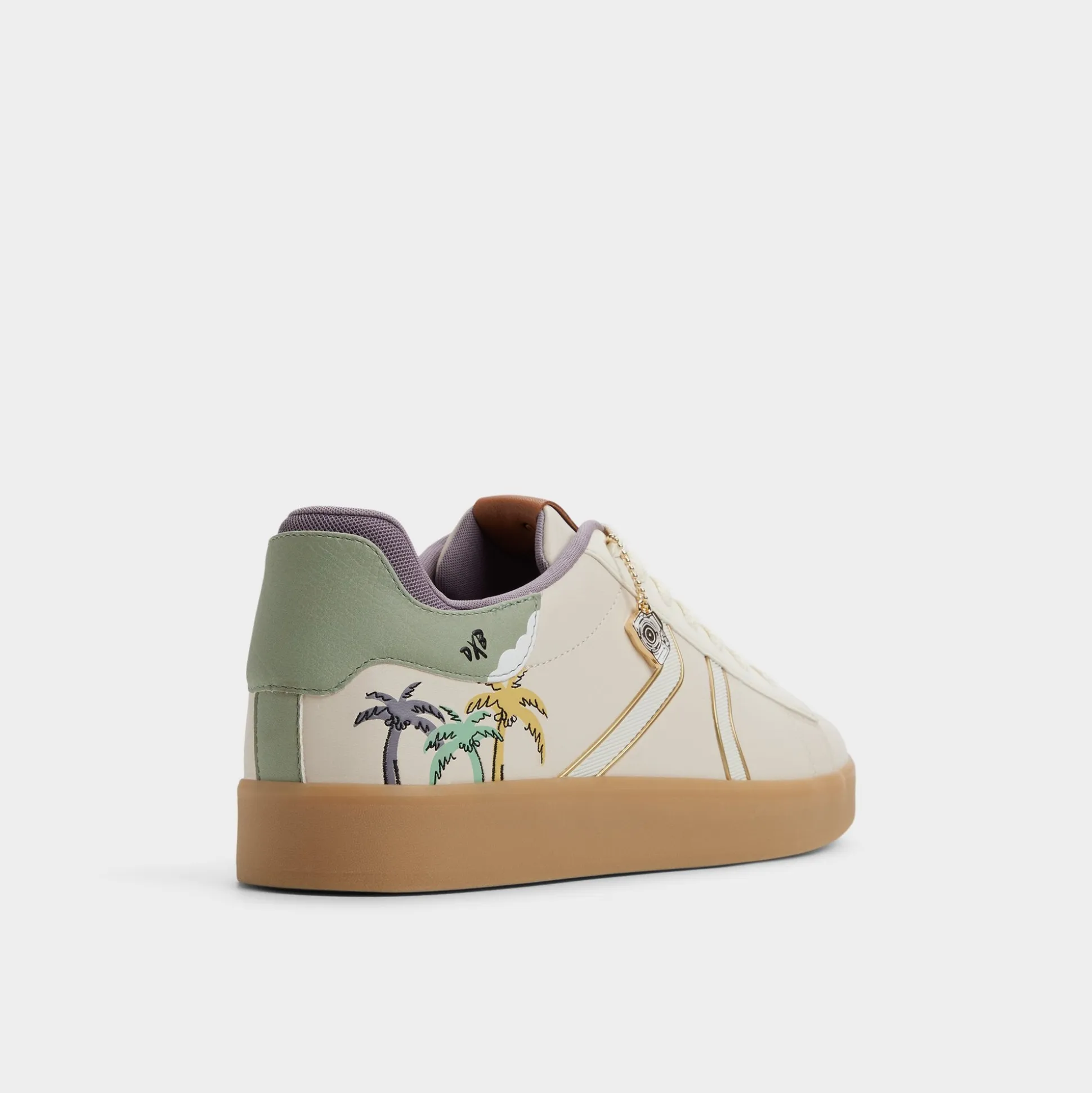 Palm sketches along the sides add vacation vibes to this smooth sneaker, while a soft gum sole cushions every step and a knit upper keeps feet relaxed from sunrise to sunset. Team it with cuffed chinos at brunches or swim trunks for beach getaways, ready for sun and sand.
