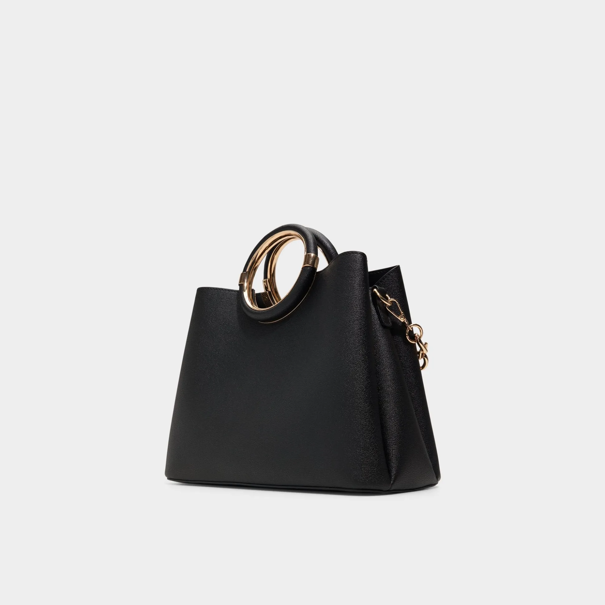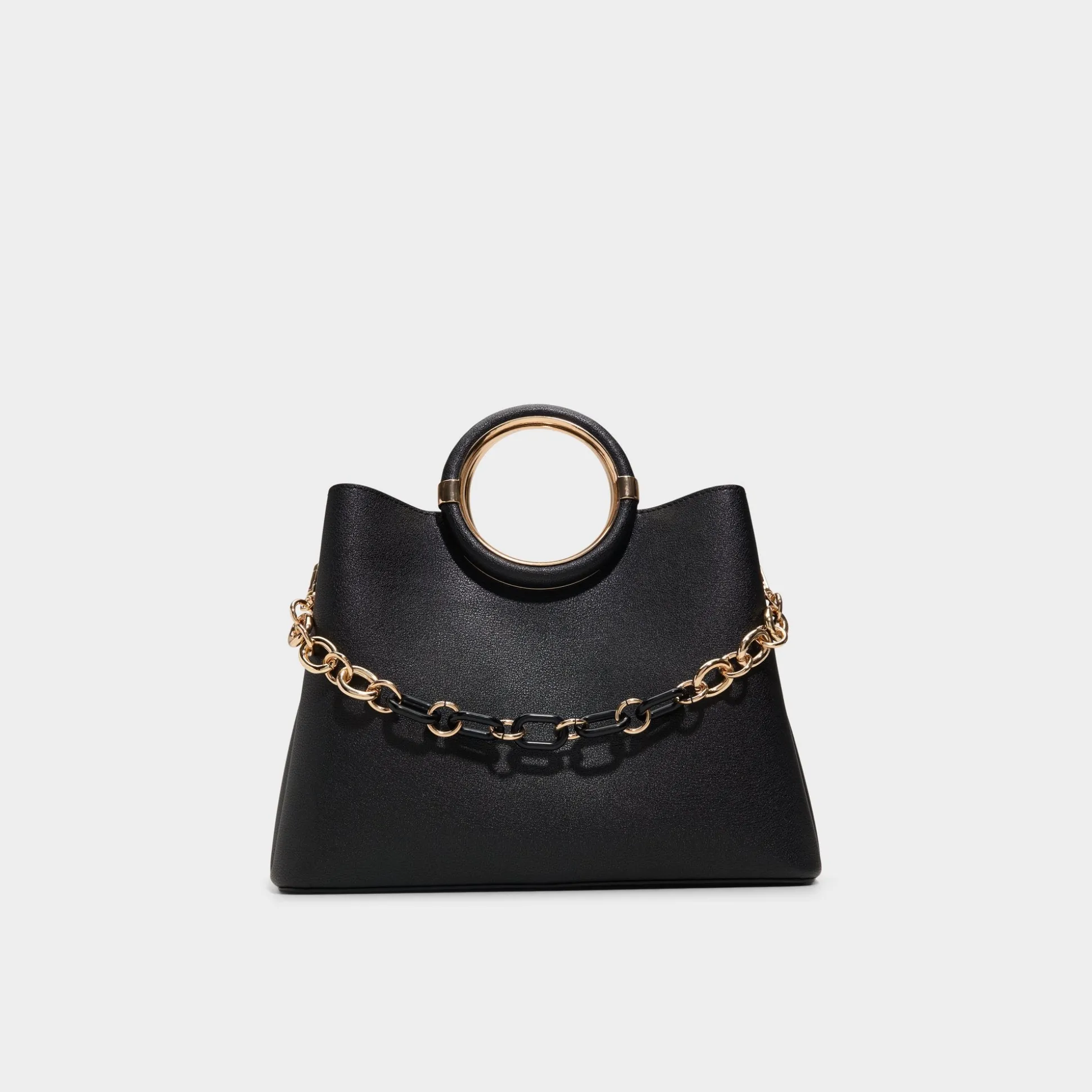 Sculptural ring-handle in glossy gold frames this structured leather carryall, while a detachable curb-chain strap lets you switch from top-handle to shoulder carry in a heartbeat for city days and after-hours adventures. Carry it with tailored blazers for client catch-ups, or sling it over satin slips for rooftop drinks to finish the look.