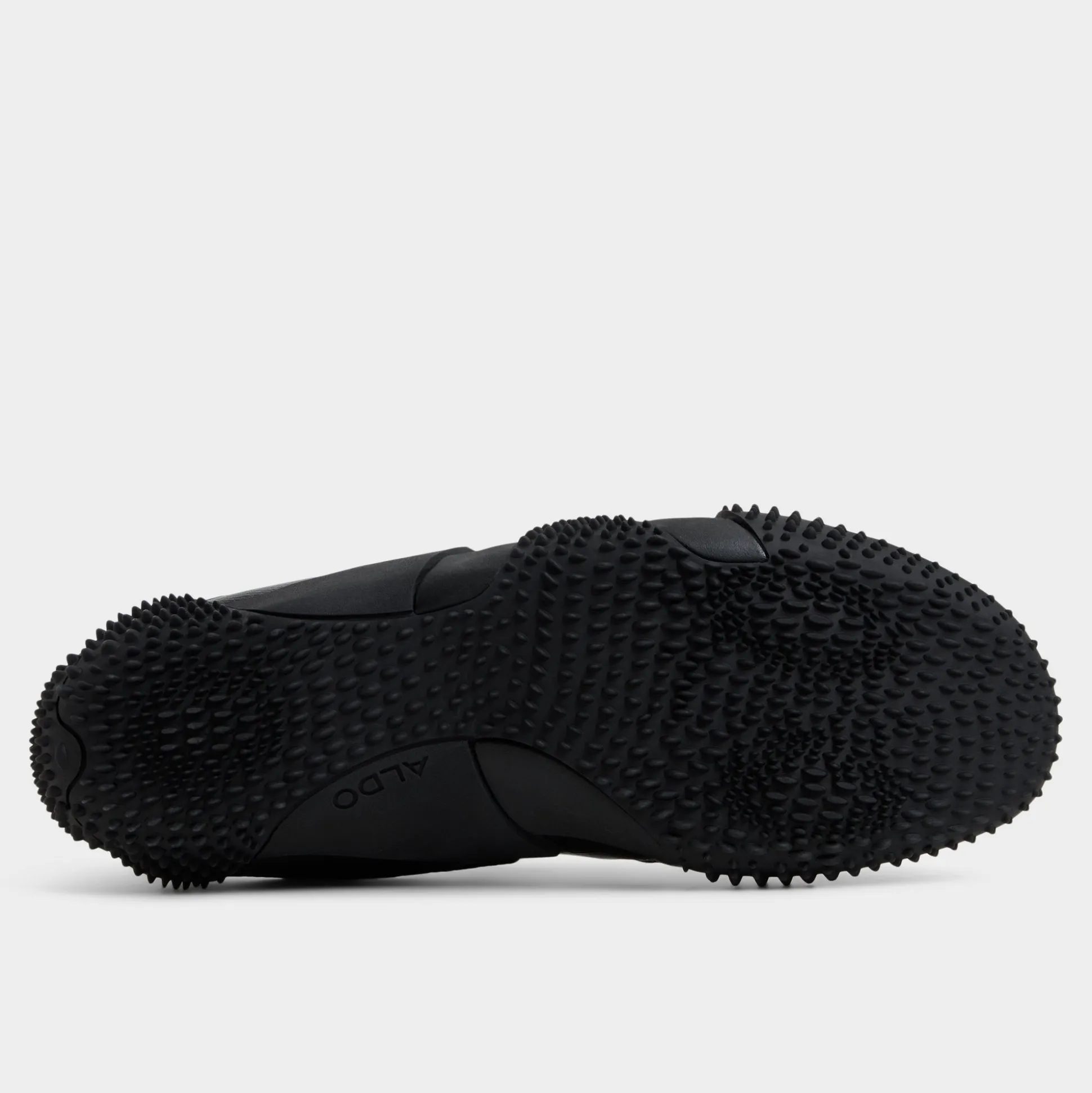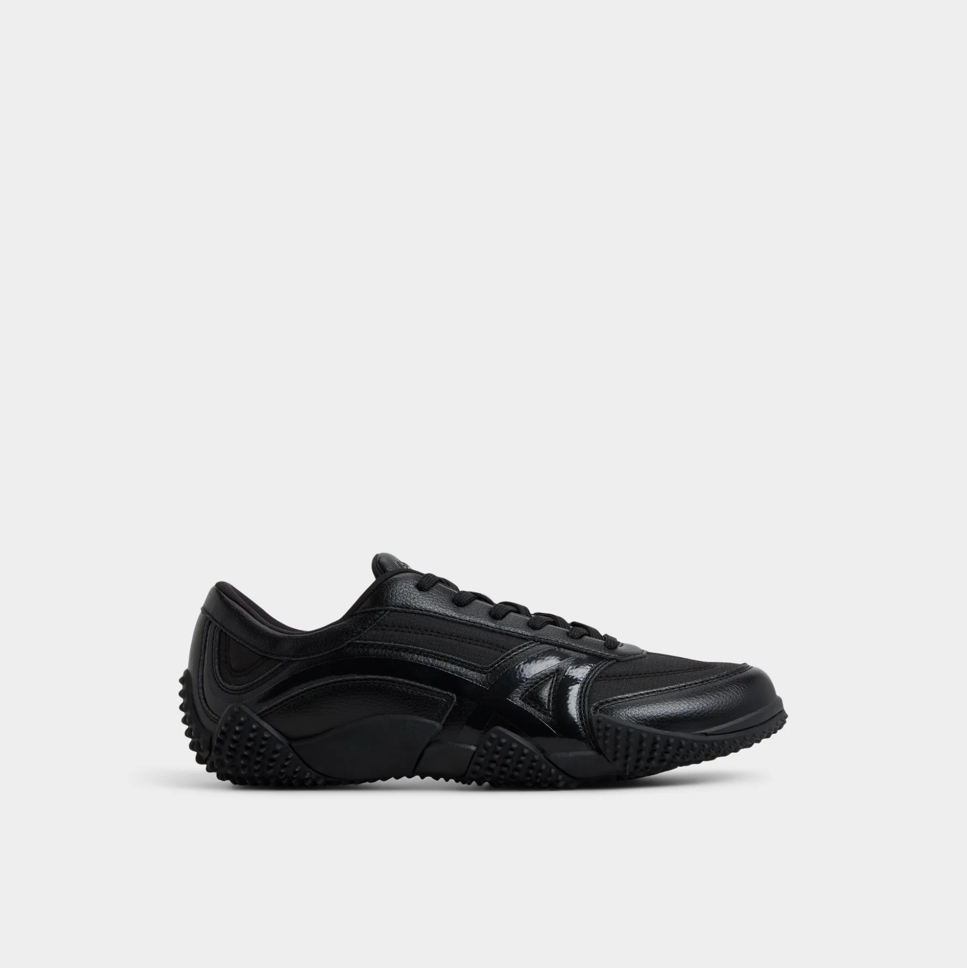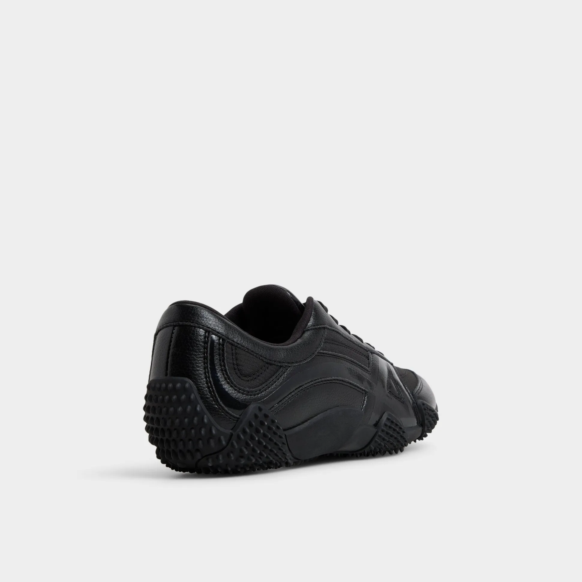 Jet-black synthetic leather sharpens the silhouette, with overlay details and a rugged lug sole that grips city corners, standing up to rain, heat, and hustle through mornings and nights alike. Team them with tapered joggers for late-night drives or anchor raw denim at weekend markets.