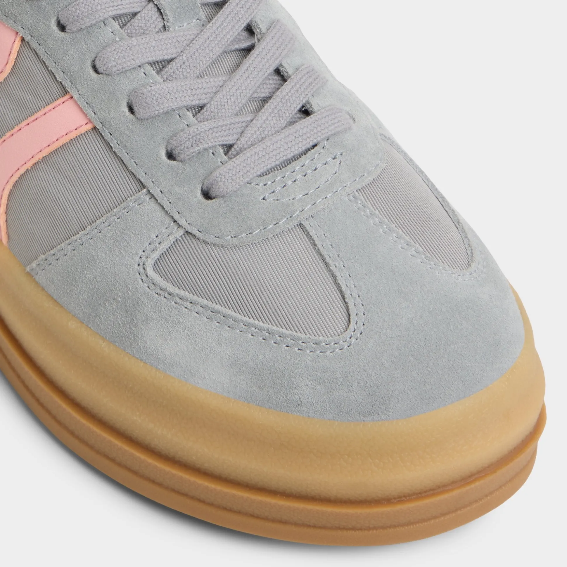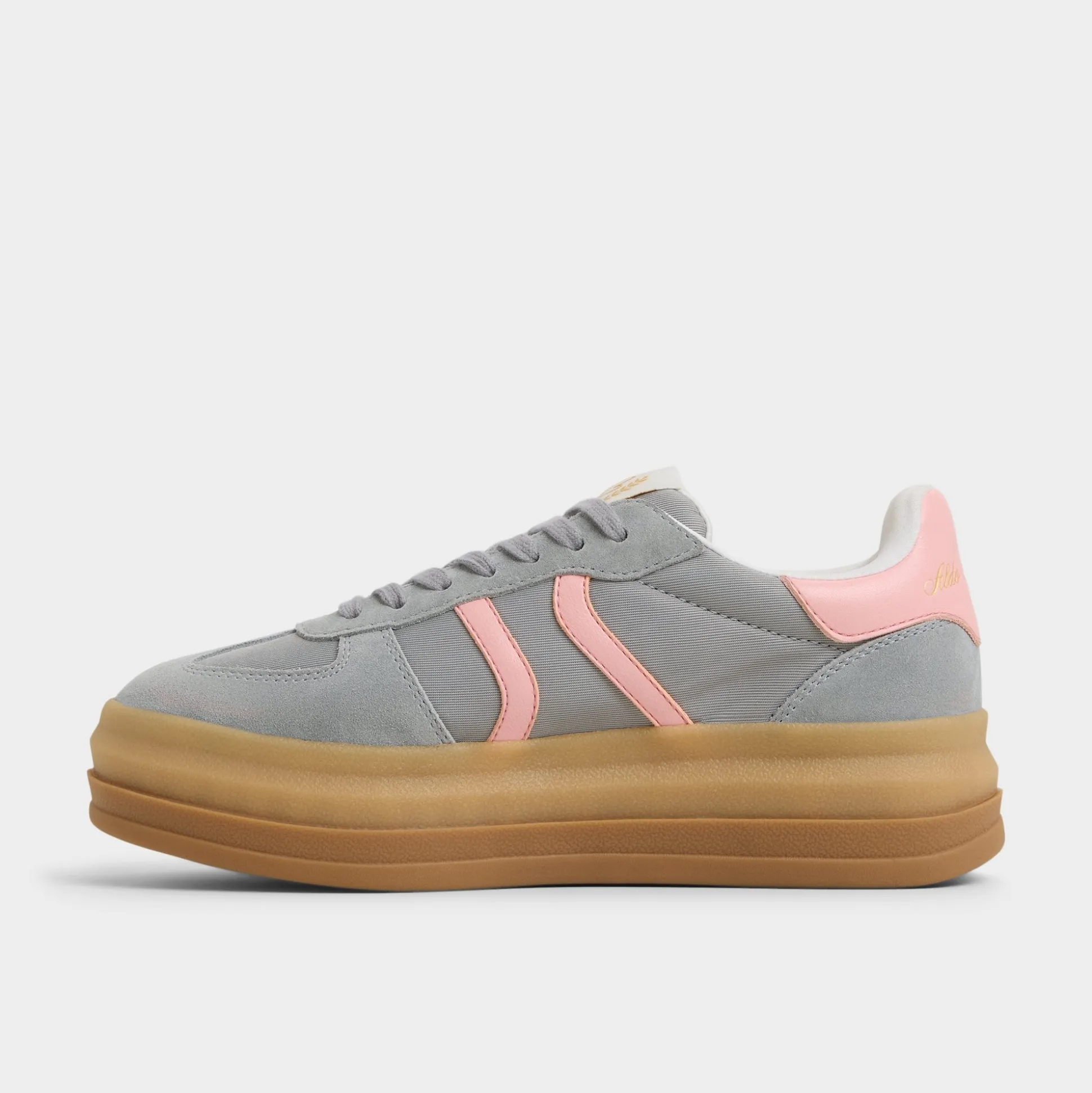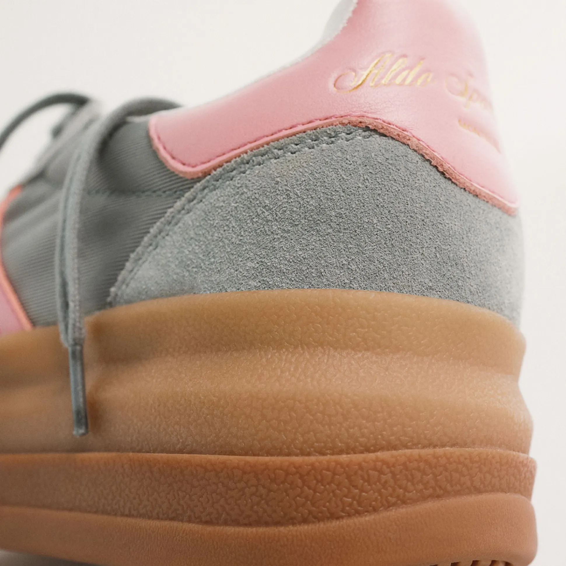 Retro-sport mix of grey suede and blush leather meets a chunky gum platform, delivering lift and bounce that keeps the city vibe lively from first latte to last call. Pair cargos for campus runs, or swap in a ribbed midi for sunset strolls, rain or shine.