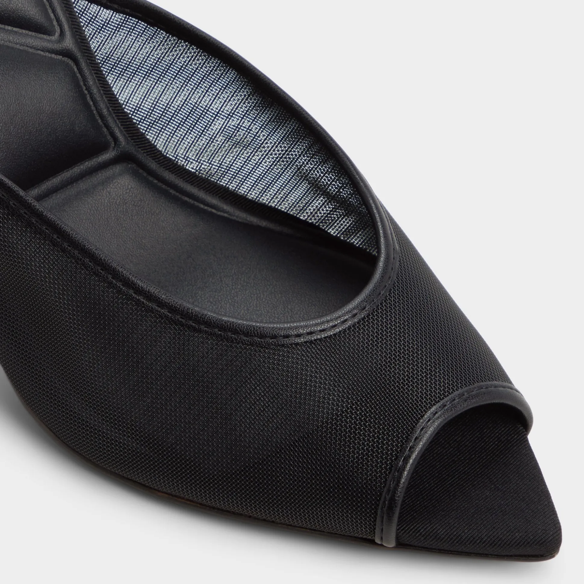Sheer mesh drapes the foot like night air, sculpted with smooth leather piping on an open-square-toe mule, a sultry lift that stays breathable through city strolls and after-dark confidences all day long. Pair with tuxedo trousers for gallery openings, or slide beneath silky midis as glowing city walks turn into starlit conversations.