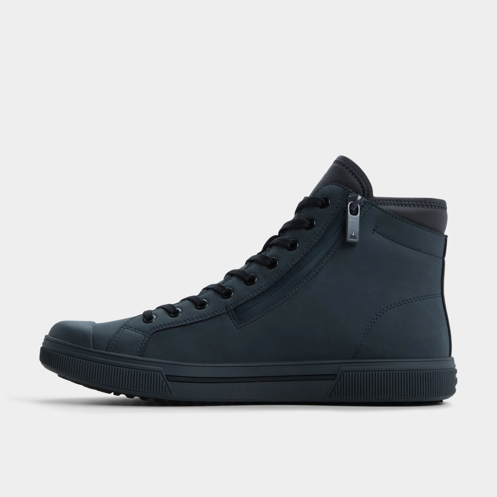 Stormy grey matte upper and metal eyelets climb to the ankle in this streamlined high-top, its cushy rubber cup sole absorbing daily pavement shock while tonal stitching keeps the look stealth. Anchor black joggers for weekend errands or pair cuffed chinos for casual drinks—its clean palette plays nicely wherever plans wander.