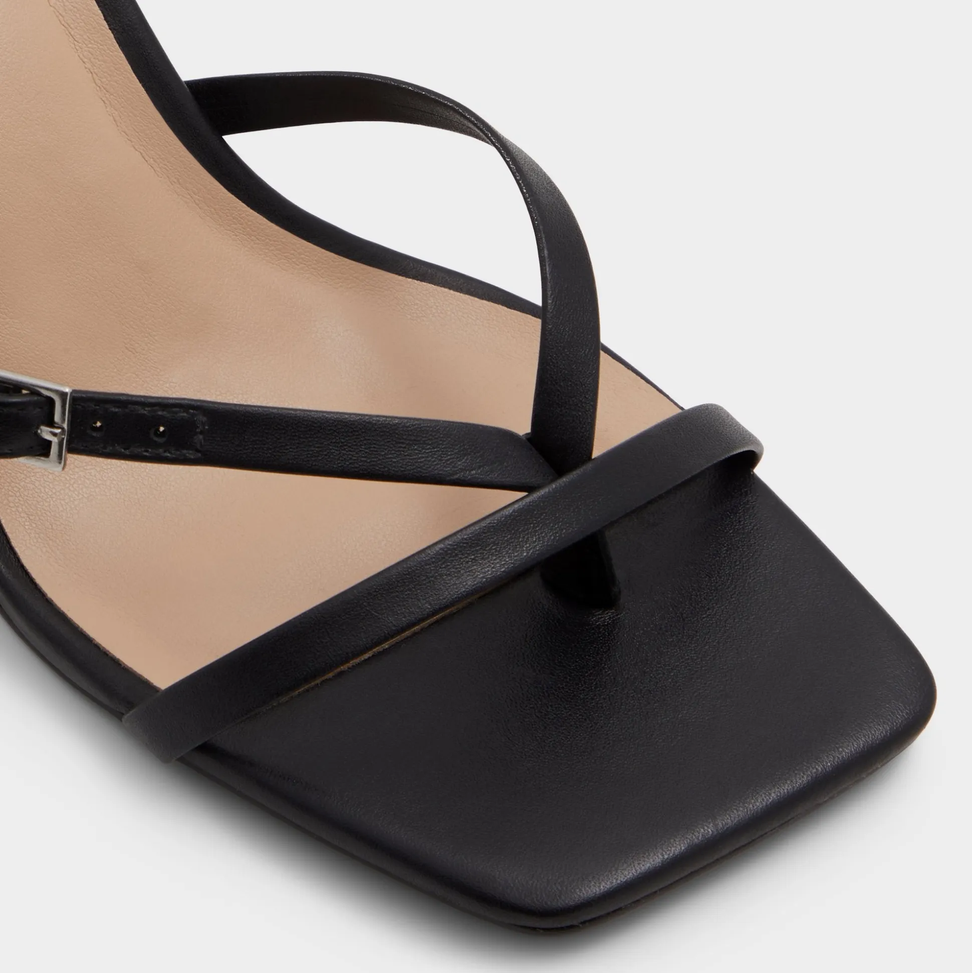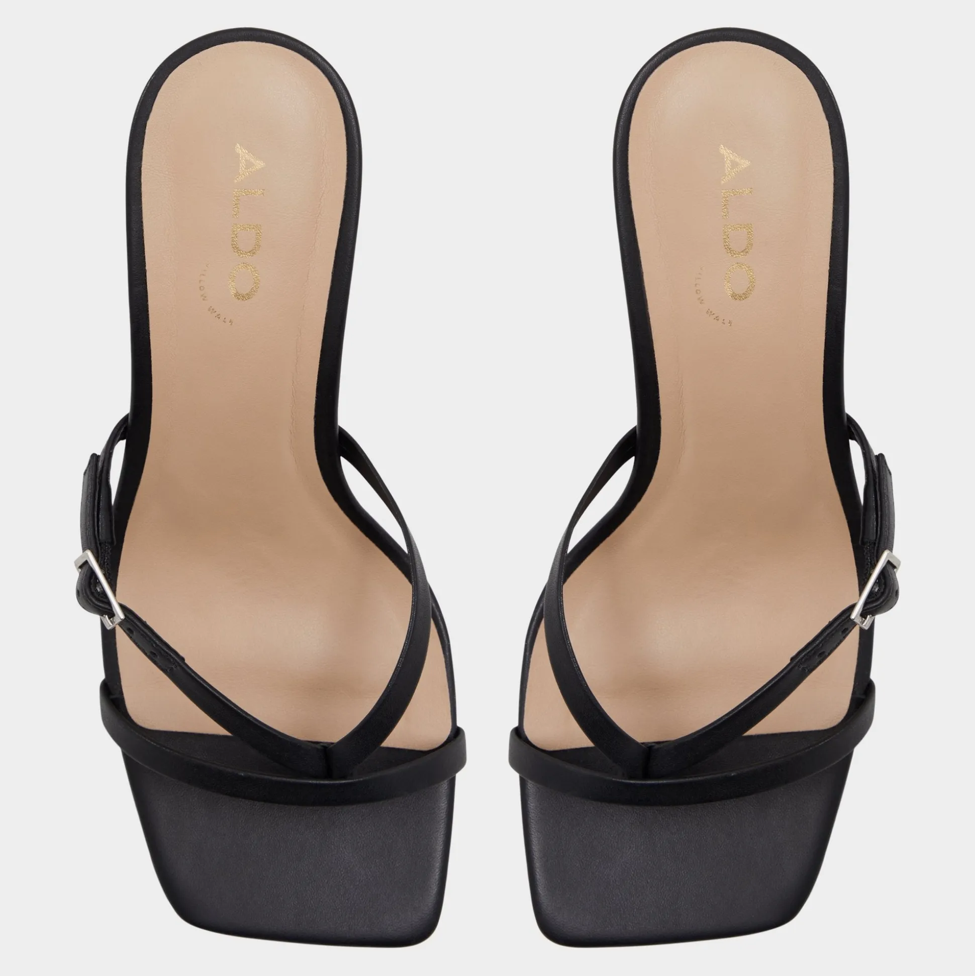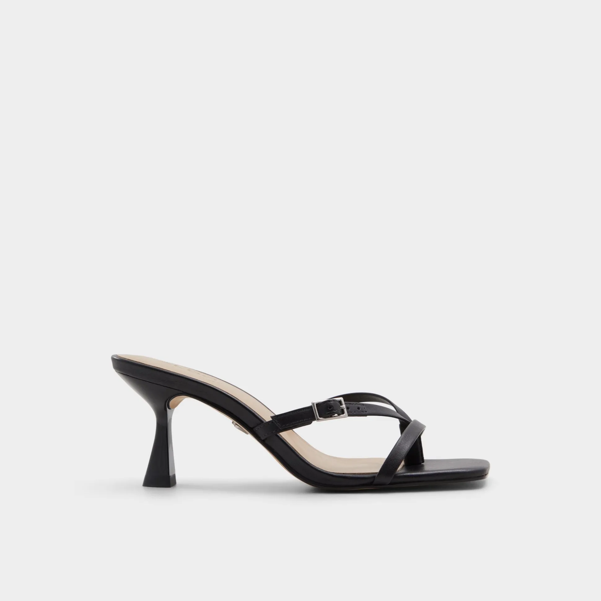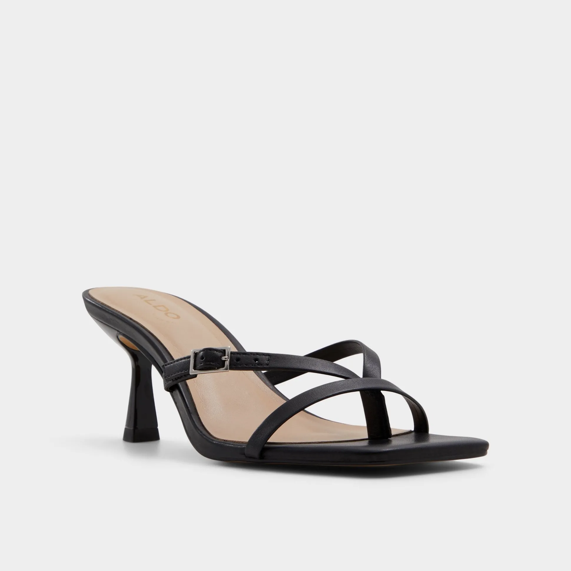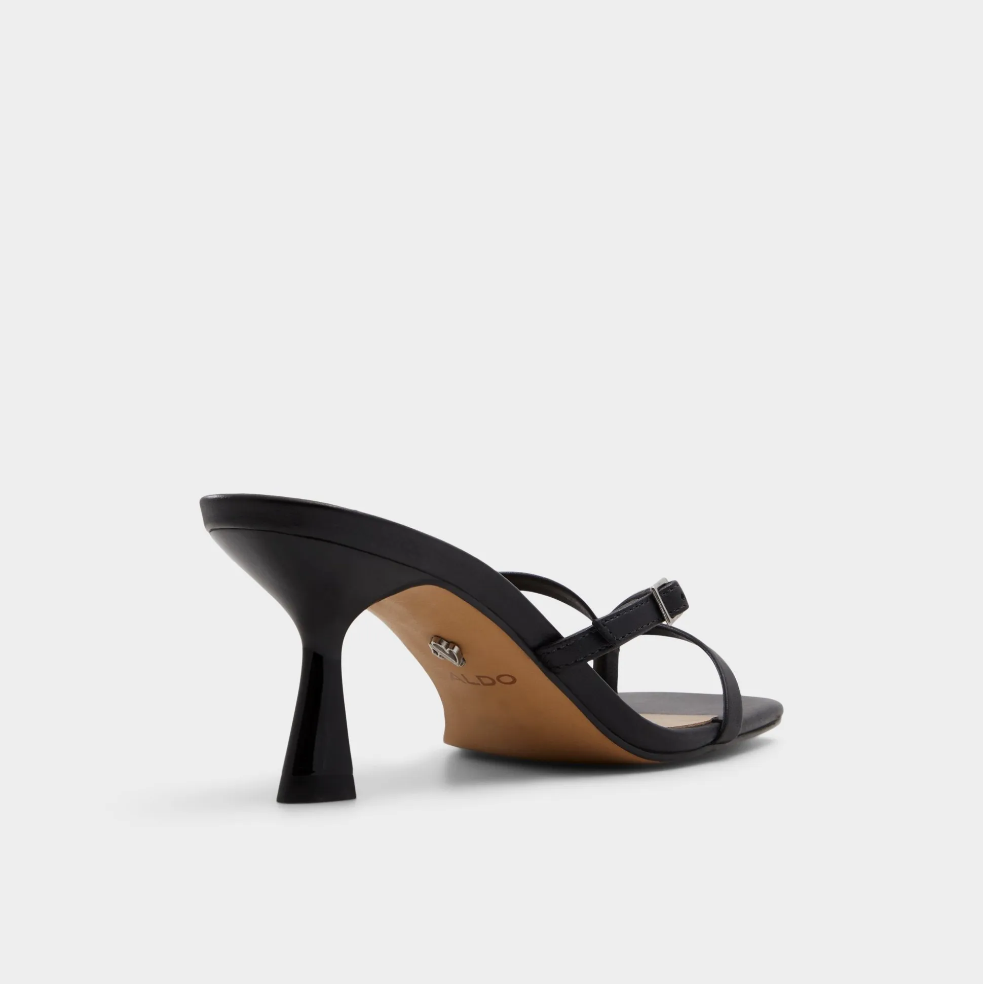 Glossy black leather straps anchor an open square toe, while a flared kitten-stiletto heel lifts the leg with quiet confidence and a touch of polish. Pair with cropped tailoring for pitch-day poise, or swap in midi skirts when cocktails call, and graceful evenings on rooftop decks.