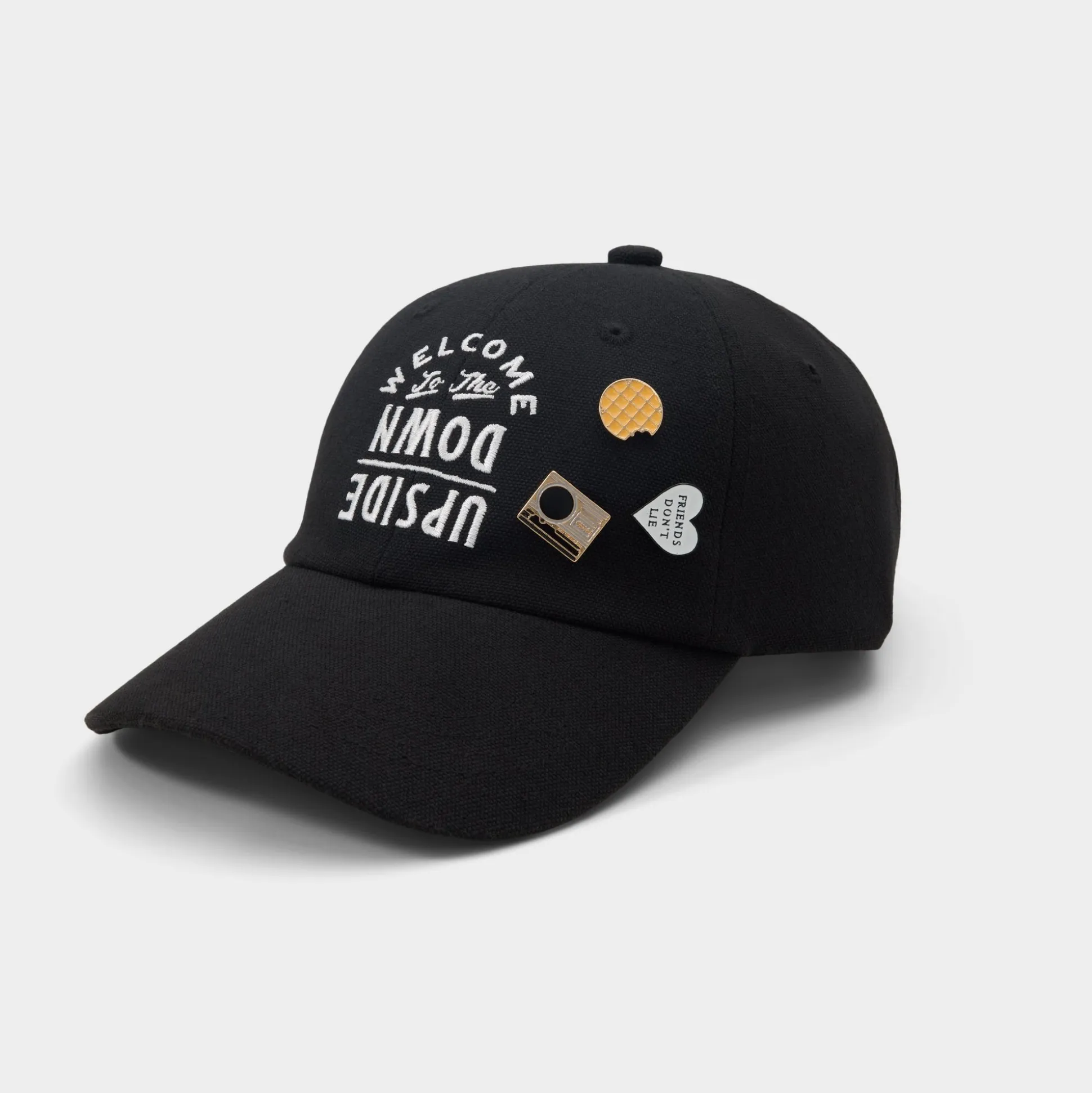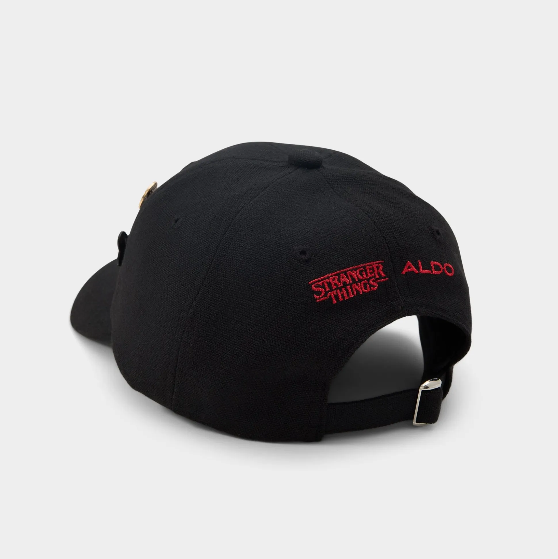 Code red: Tune into the dark side with this Stranger Things x ALDO black canvas baseball cap. Removable pins and an embroidered quote welcome you to the Upside Down.