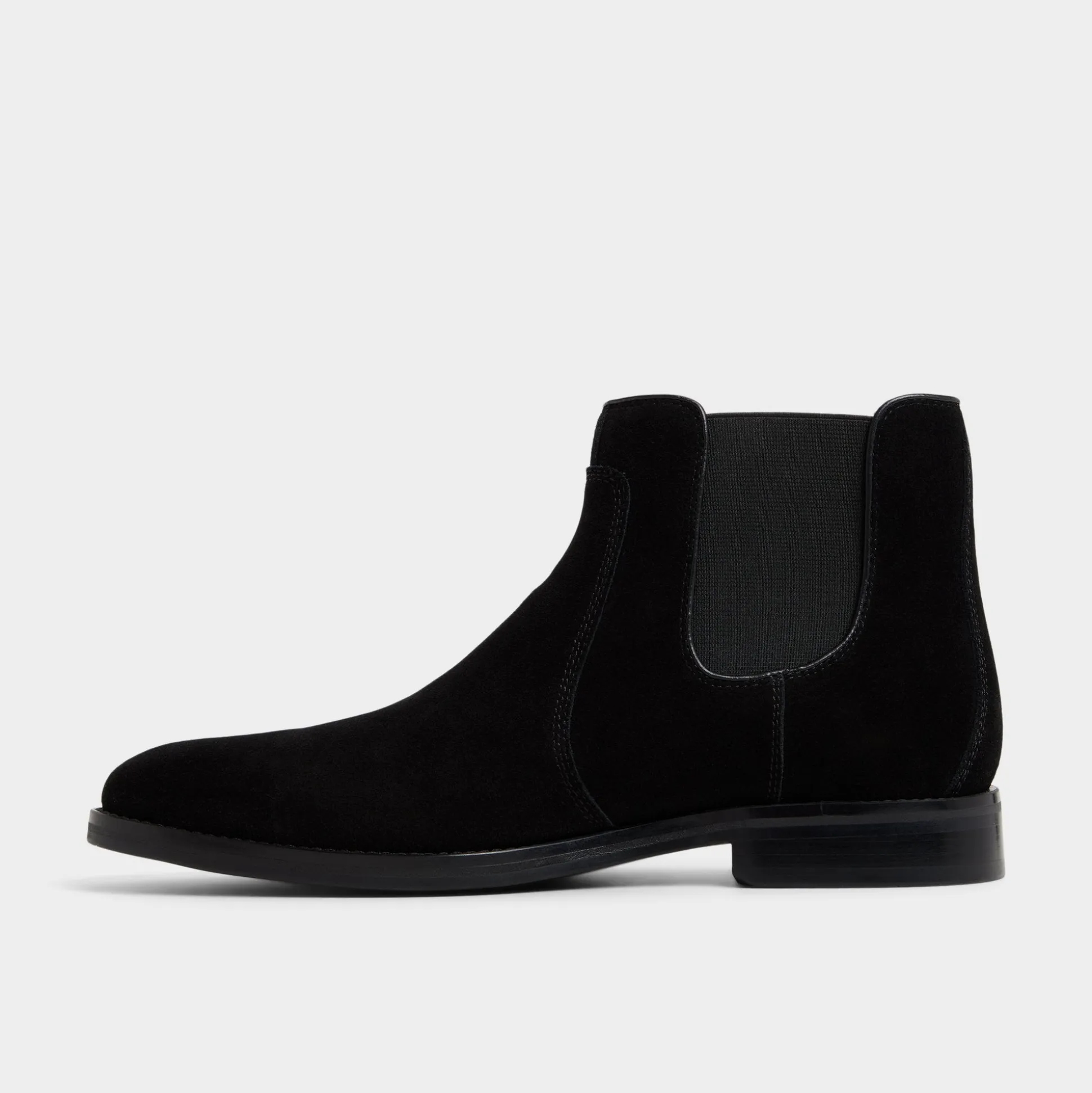 Velvety black suede gives this Chelsea boot a subtle texture, with elastic side panels for easy wear and a low-profile rubber sole providing sneaker-like flexibility throughout busy days. Pair it with slim indigo jeans for Friday gigs or ground a charcoal suit from desk-to-dinner seamlessly.