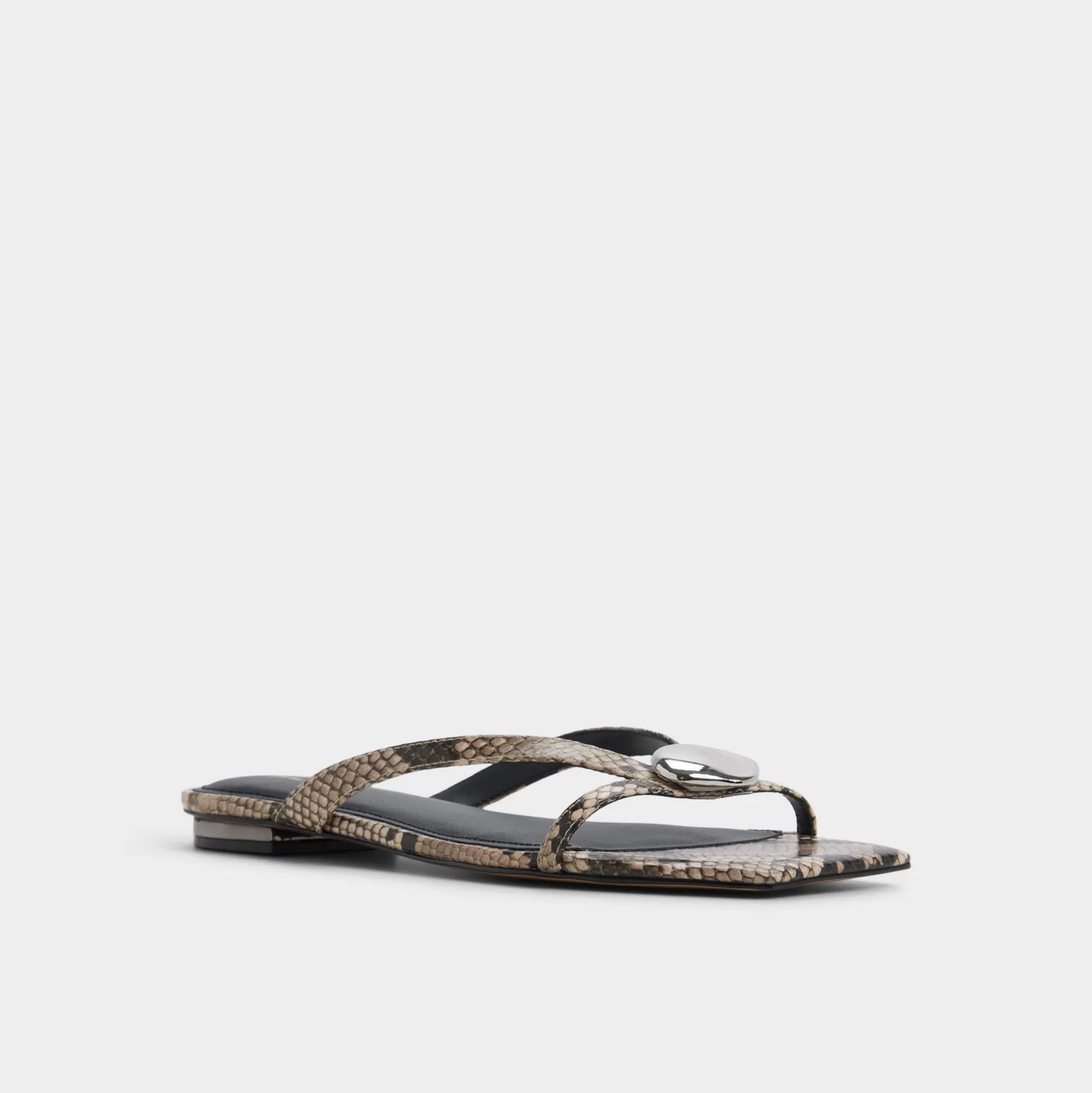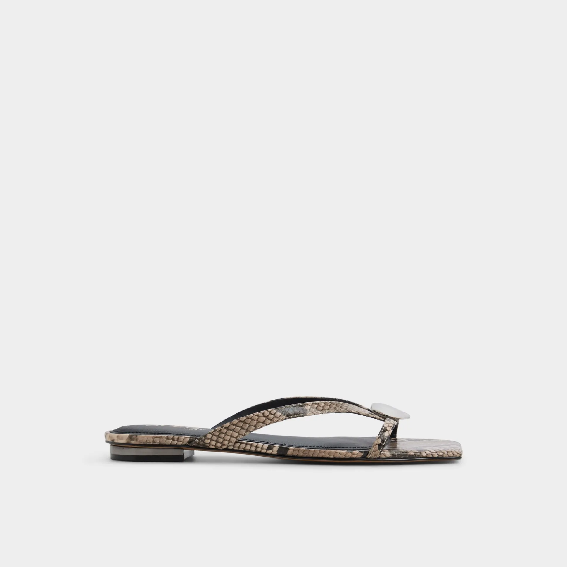 Snake-print straps crown this flip-flop, pairing bold texture with a cushioned sole for all-day ease from airport lines to seaside strolls. Pair with airy shorts for market strolls, or slip beside a flowy cover-up as you float between poolside lounging and sunset balcony chats tonight.