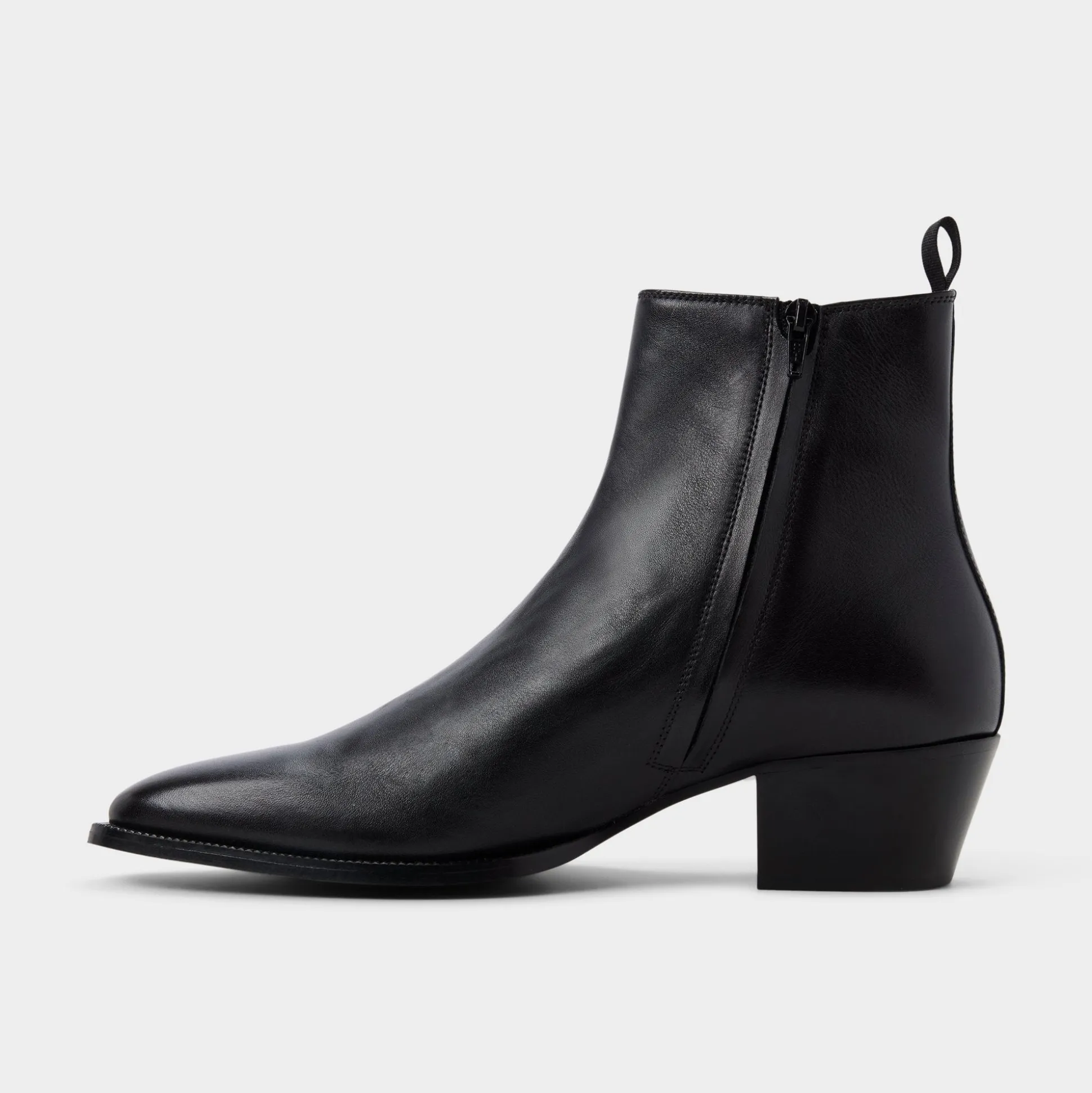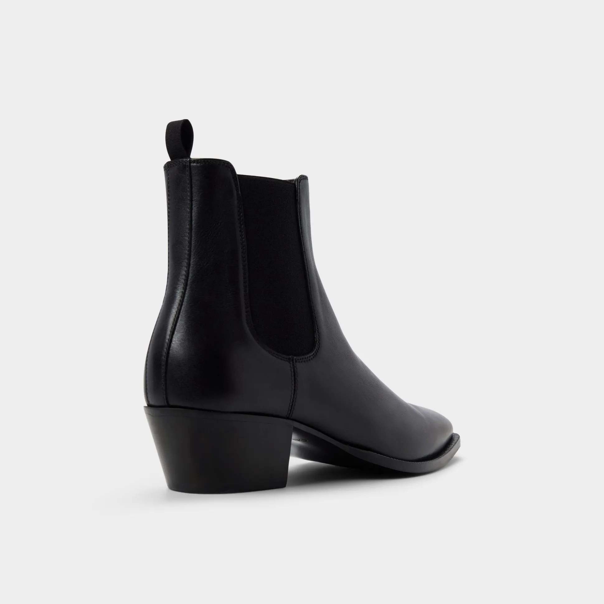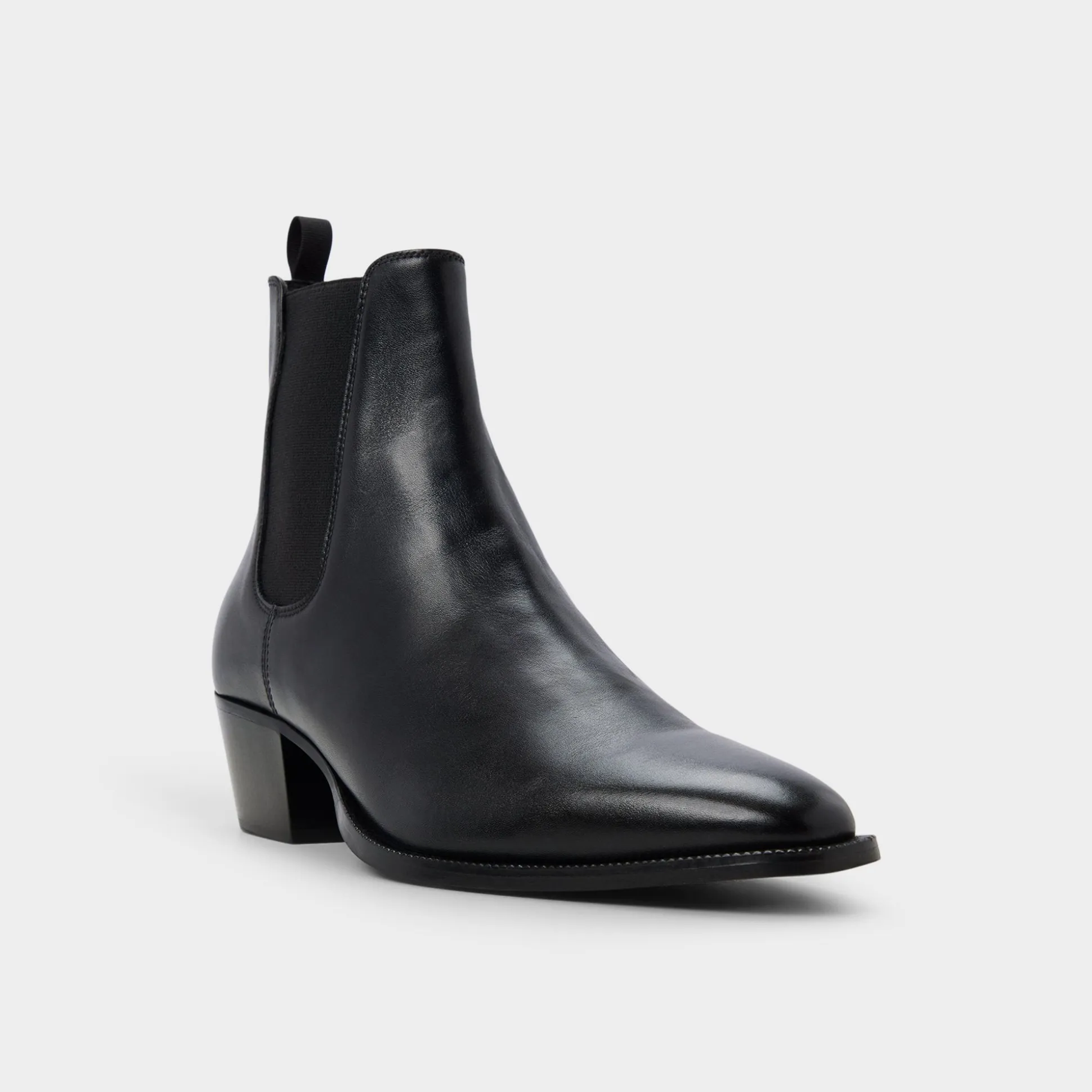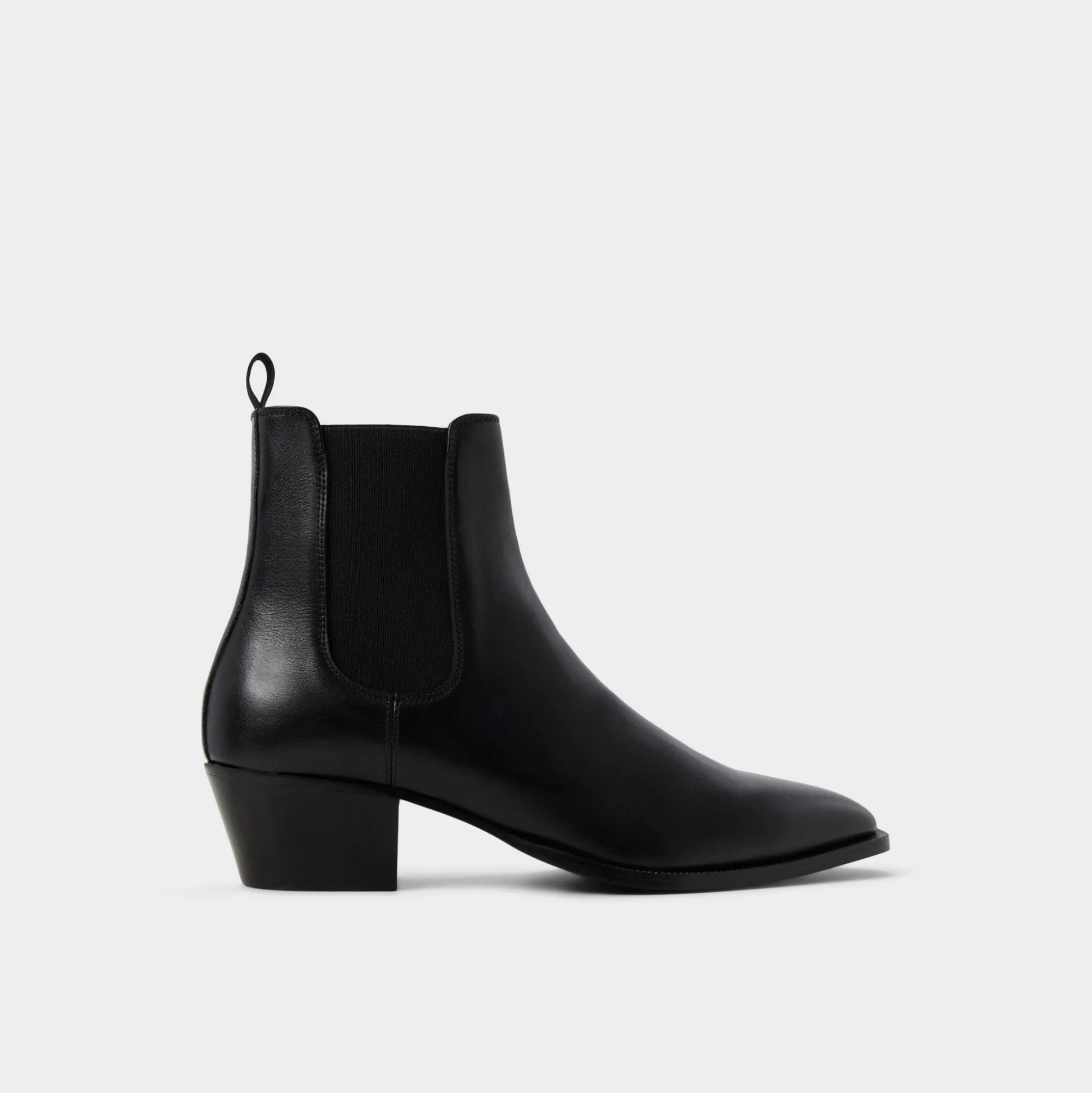 Midnight-smooth leather meets elastic side panels for wear, while the heel helps you glide from errands to nights on the town anywhere in city life. Team it with trousers for gallery visits, or roll denim for gigs, and the look remains for day or night tonight.