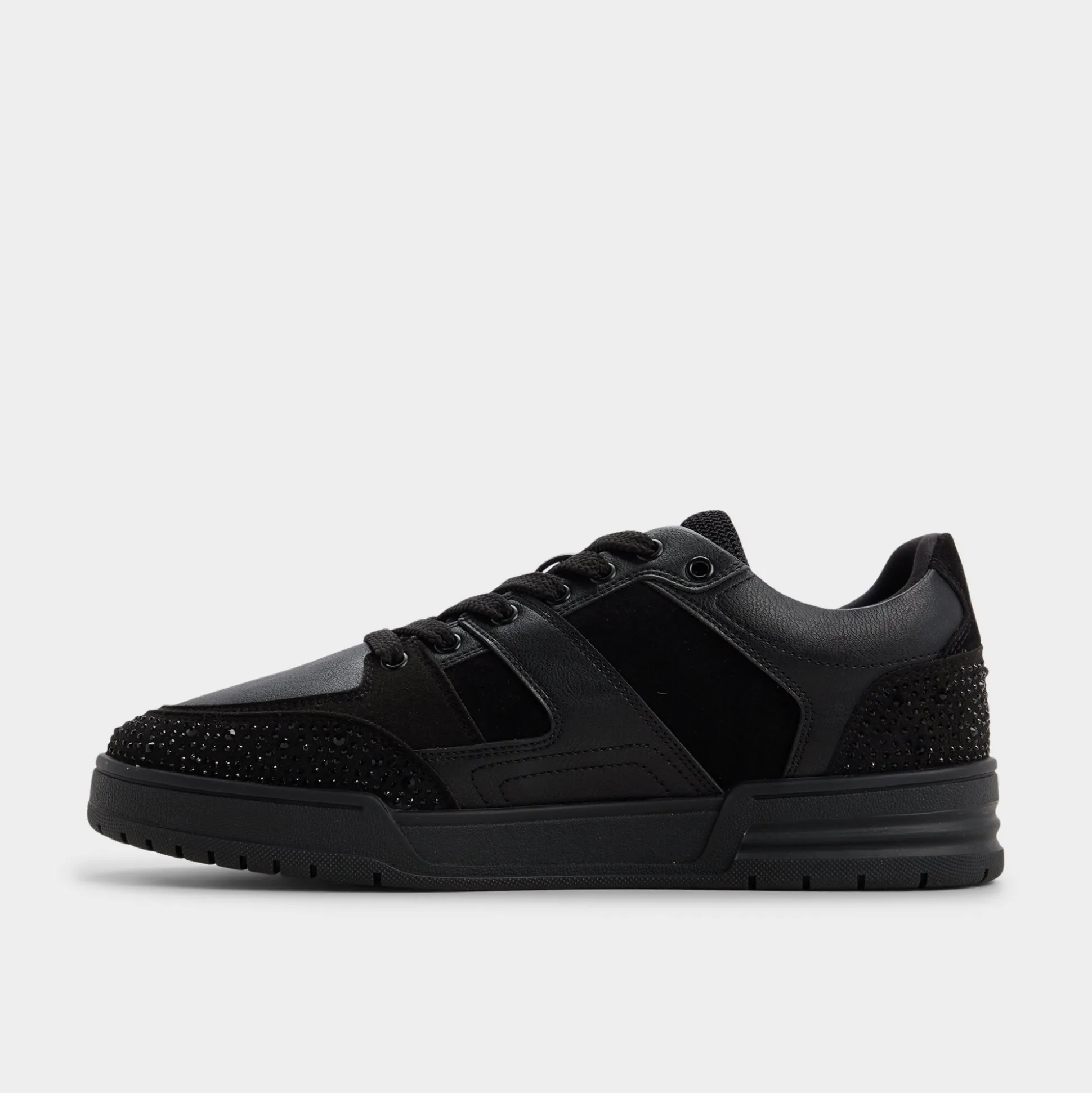 Midnight leather meets smooth suede, and micro-studded heel and toe panels give this low-top subtle shine, while a cushioned cupsole ensures comfort from morning commutes to midnight outings. Match it with cuffed cargos for rooftop sets or slot beneath slim joggers for weekend coffee runs.
