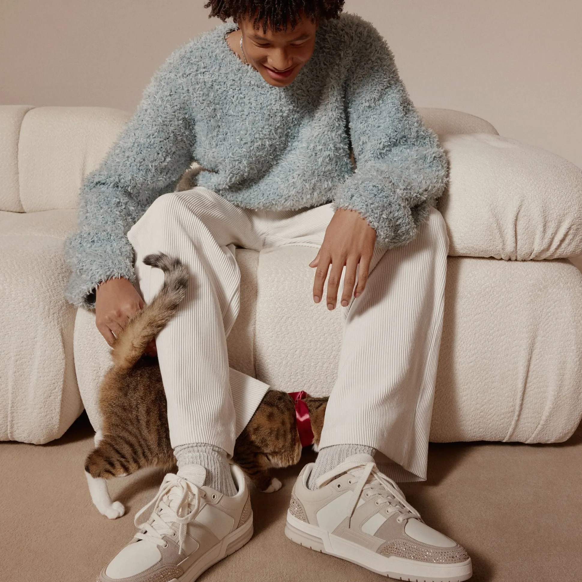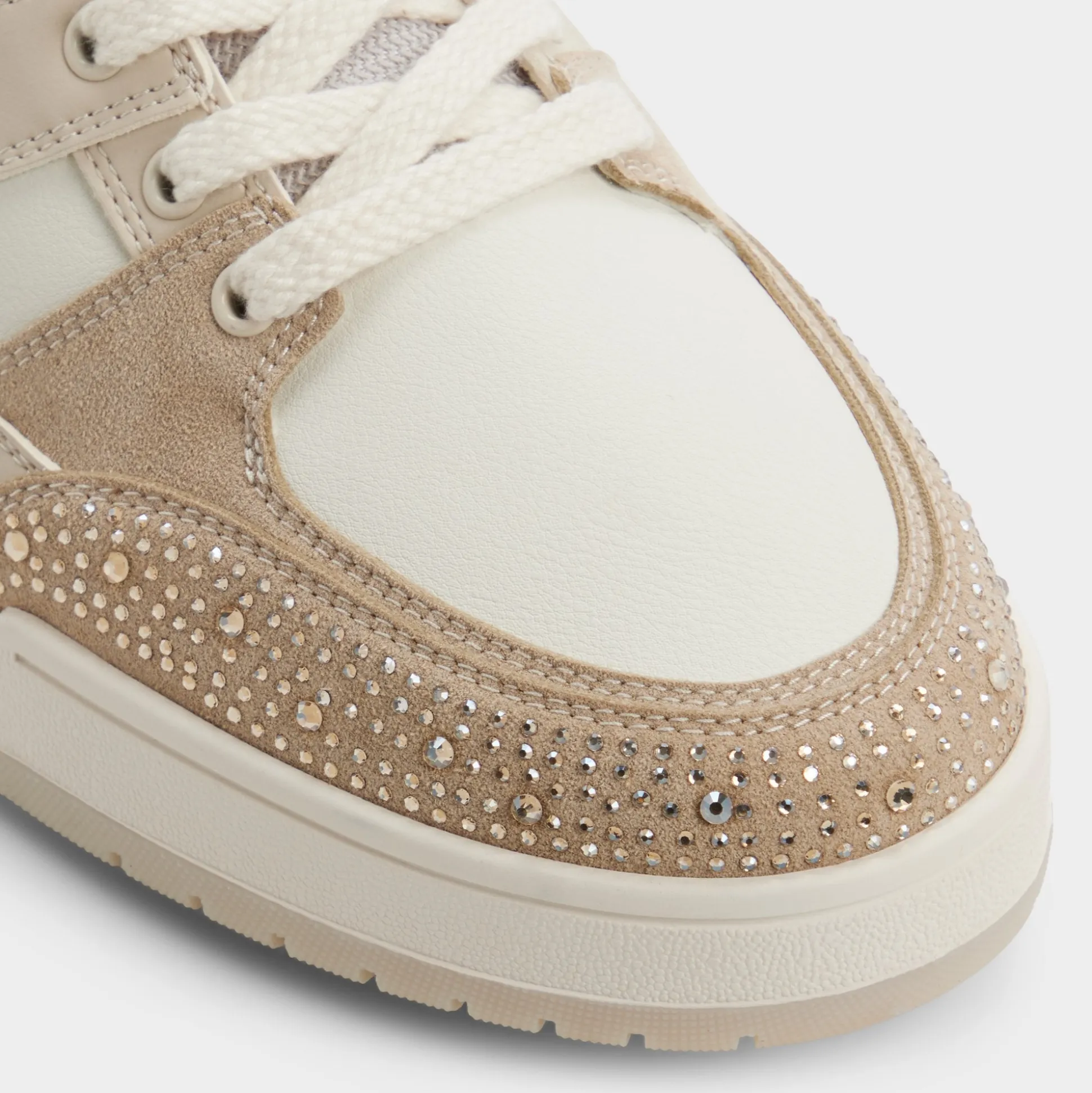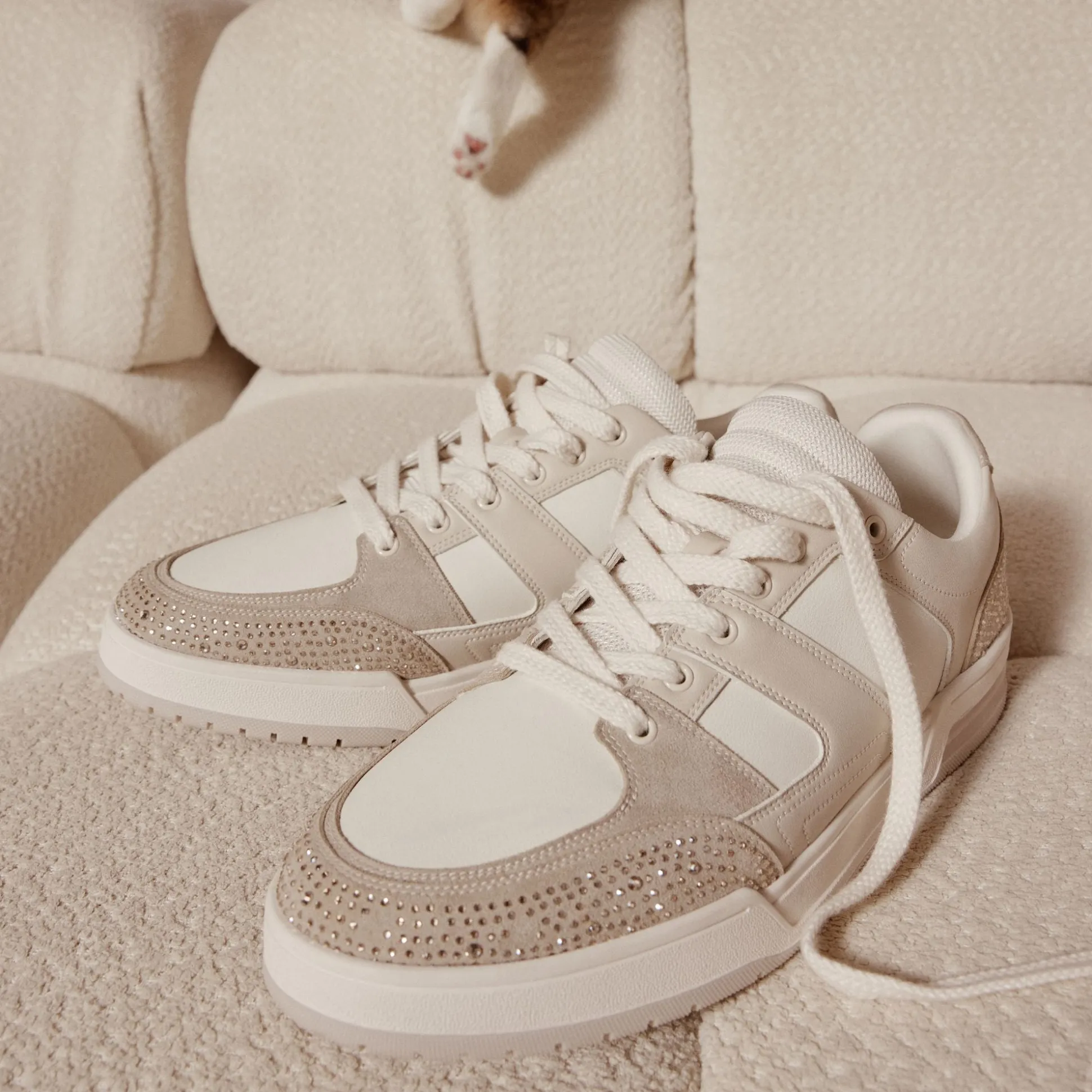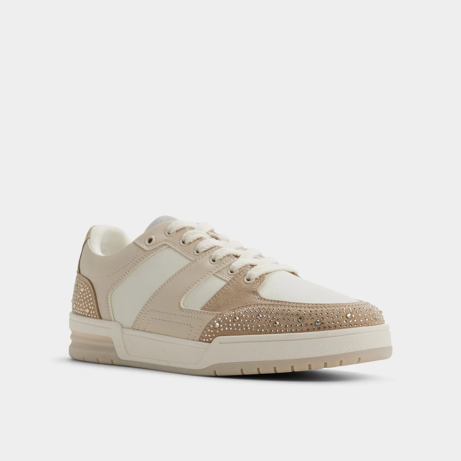 Studded suede panels pop against smooth beige leather on this low-top, adding unexpected flair, while a cushioned cupsole keeps steps light from terminals to late-night plans. Pair it with tapered chinos for brunch or team with a bomber and joggers for evening concerts.