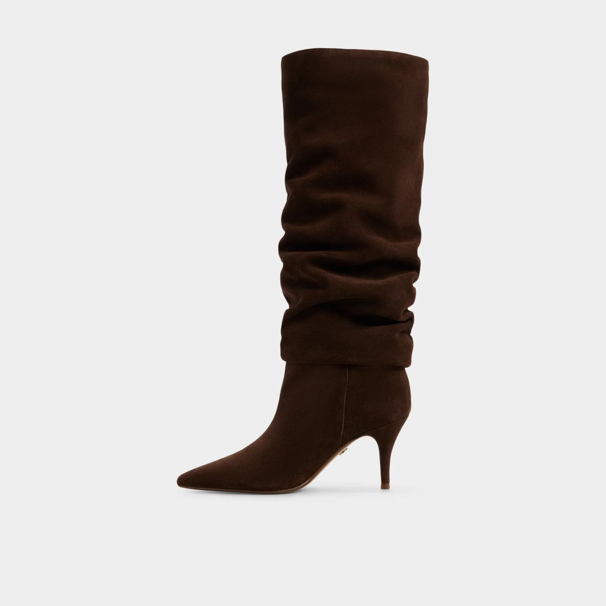Chocolate suede drapes into slouchy chic from knee to toe, bringing a lean stiletto that sharpens the line with city-ready confidence and a touch of edge, perfect for glow-lit streets and late-night ambitions. Pair with denim minis for brunch, or swap to leggings for jazz bars or city-date nights.