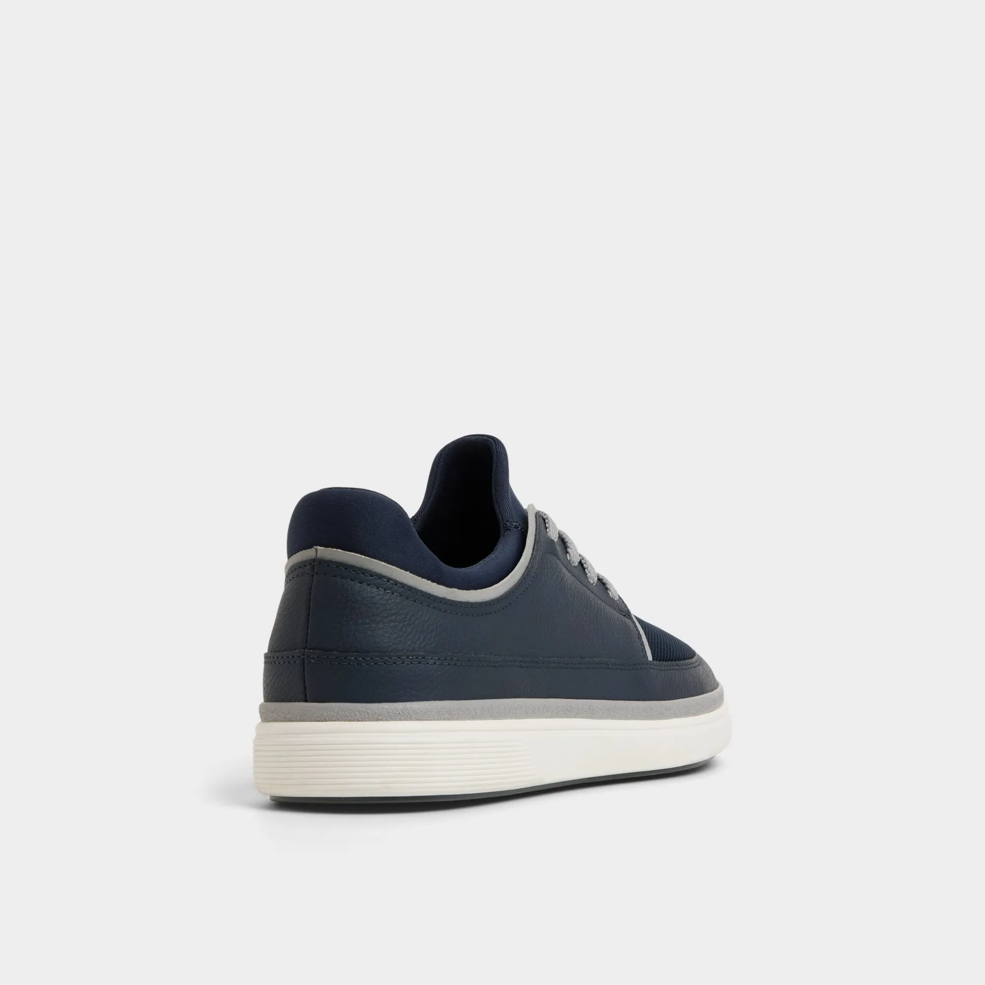 Navy panels traced with grey piping shape this low-top pair, turning a clean silhouette into city-ready polish as a feather-light cupsole cushions each stride and keeps fatigue at bay daily. Team them with cuffed joggers for quick city games, or roll with chinos for Sunday brunch—the crisp profile covers weekends and weeknights with ease.