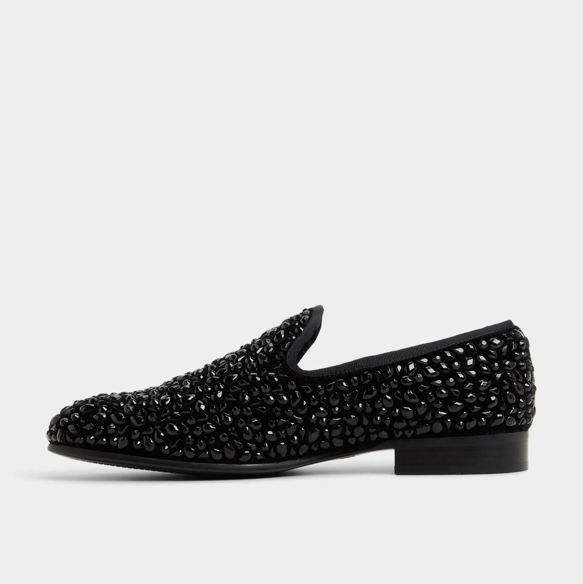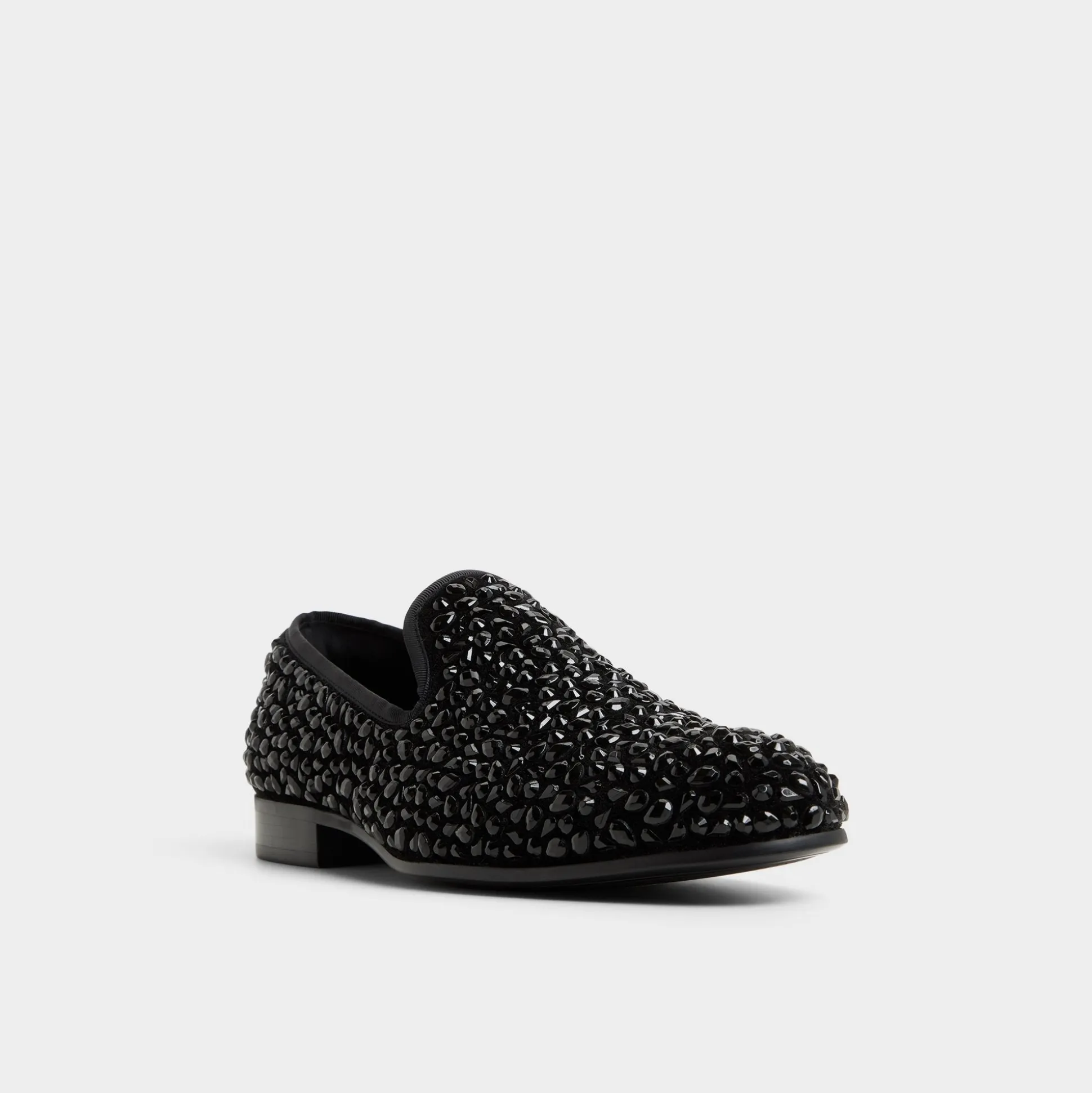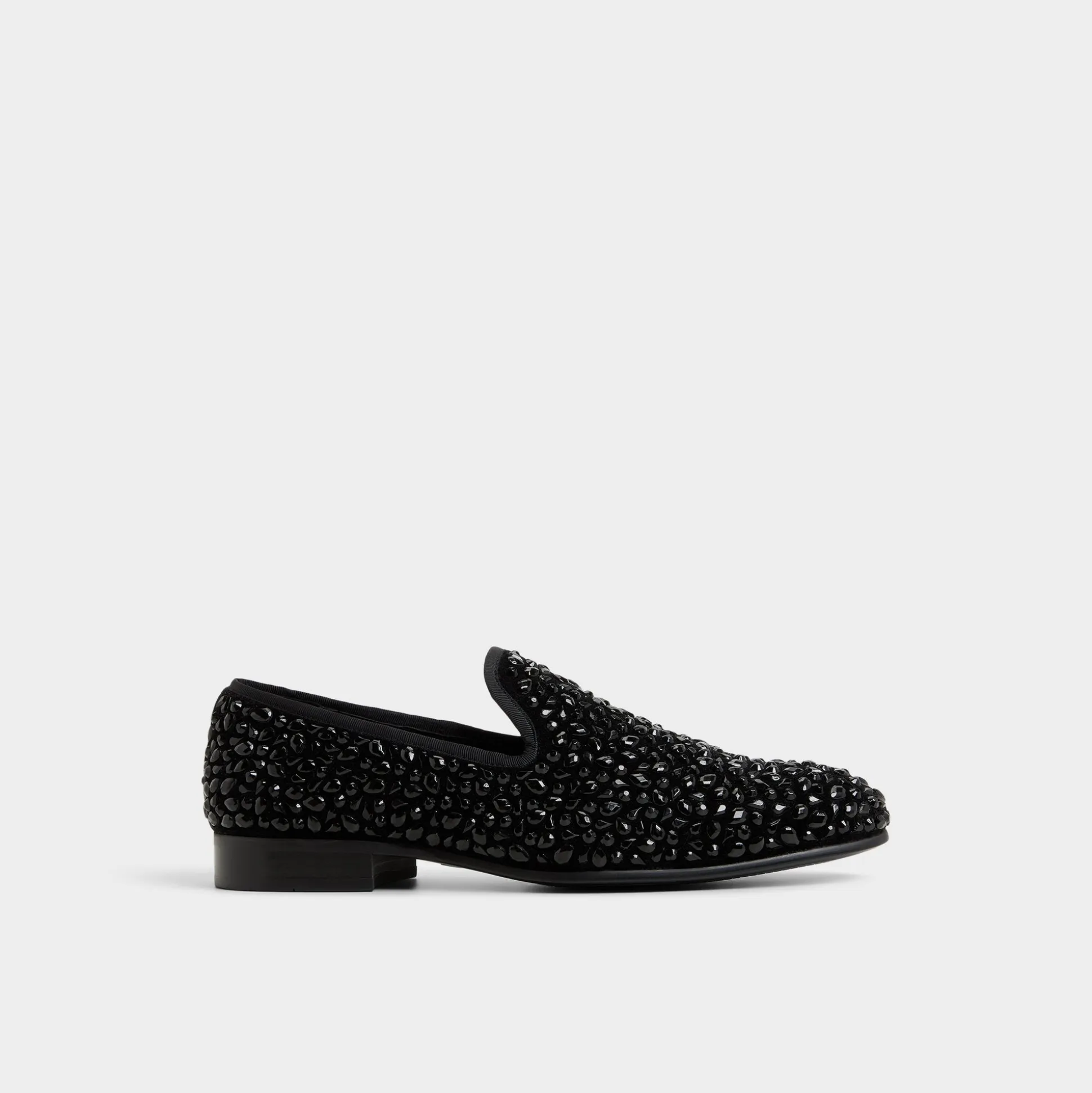 Jet-black leather with studded accents elevates these slipper loafers into night-ready silhouettes, while a slim almond toe and leather outsole keep the profile refined yet bold. Team them with dark denim for a city-after-dark vibe, or anchor a velvet blazer with tapered trousers for gala-ready evenings.