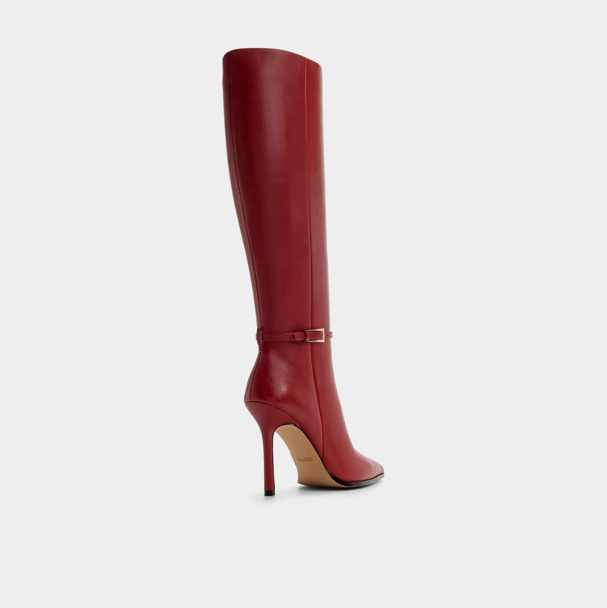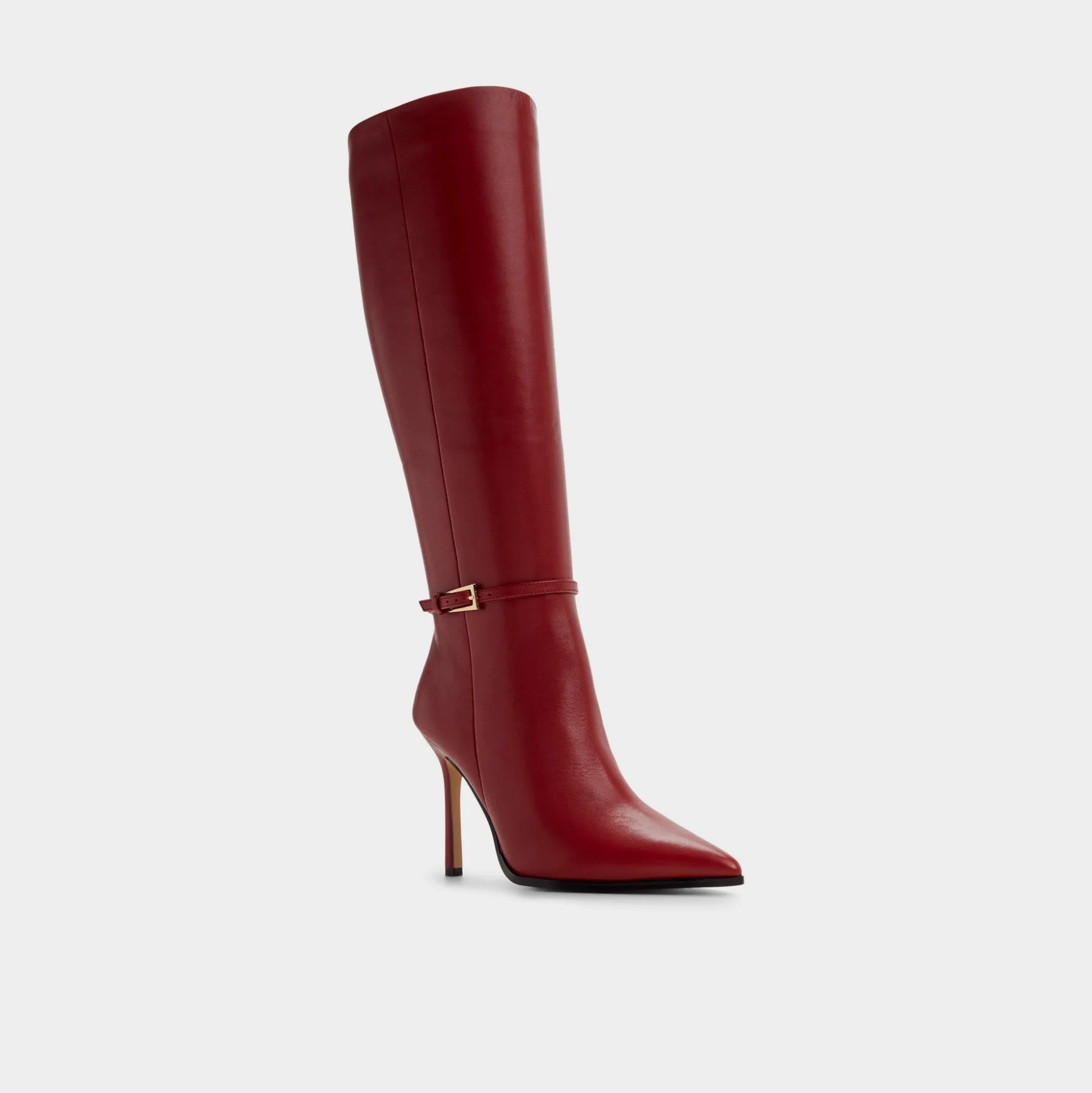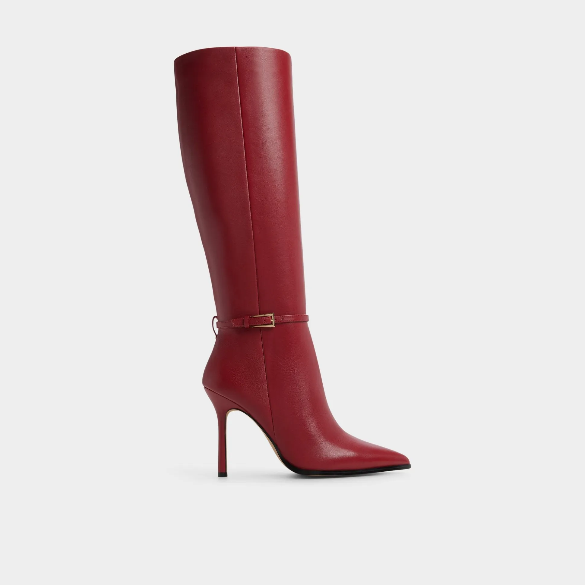 Fire-red leather carves a knee-skimming silhouette, accented by a slim gold buckle and a razor stiletto that lifts every entrance from boardroom doors to late-night cab rides into the spotlight of every moment. Pair with tailored pants for boardroom polish, or slip beneath a flirty mini when rooftop cocktails beckon.