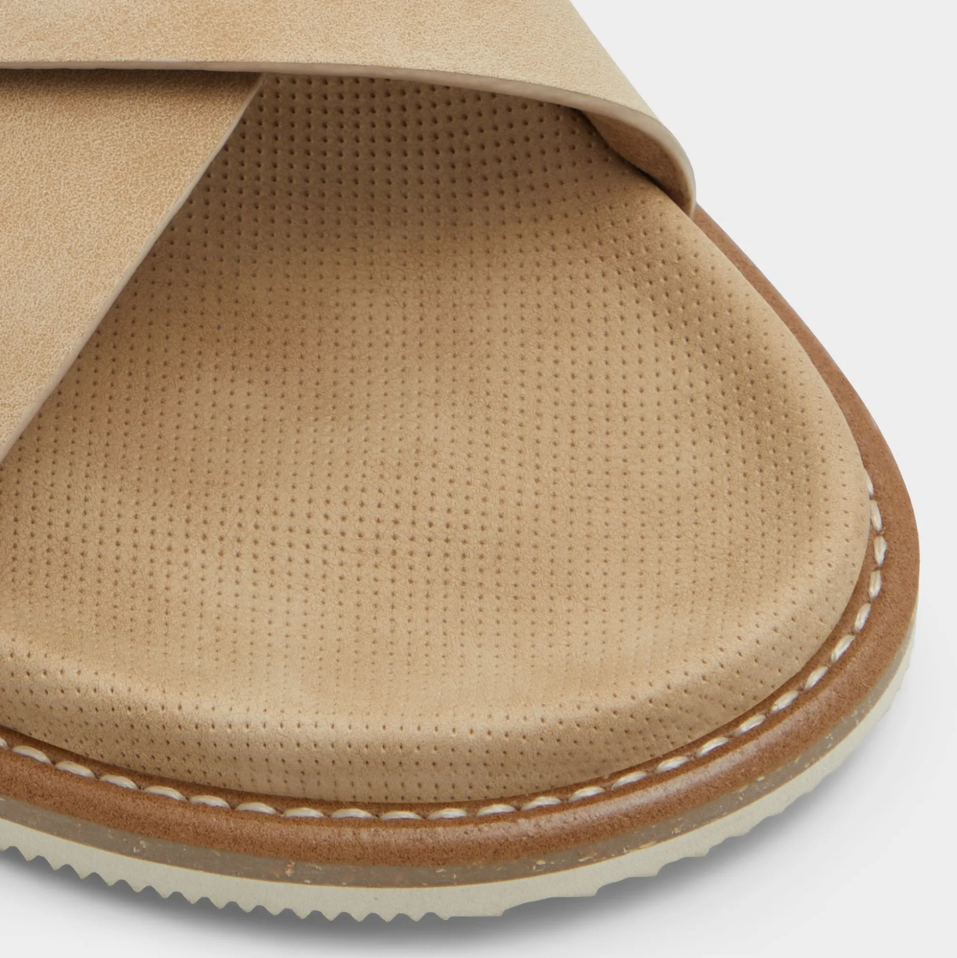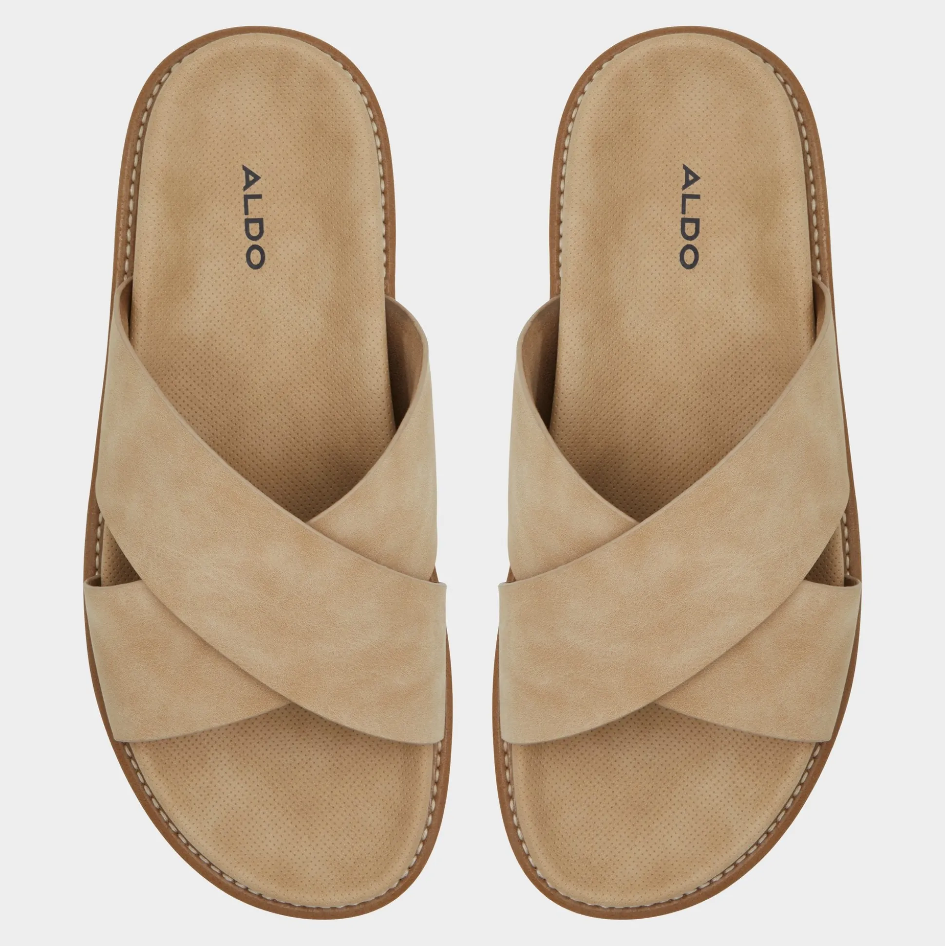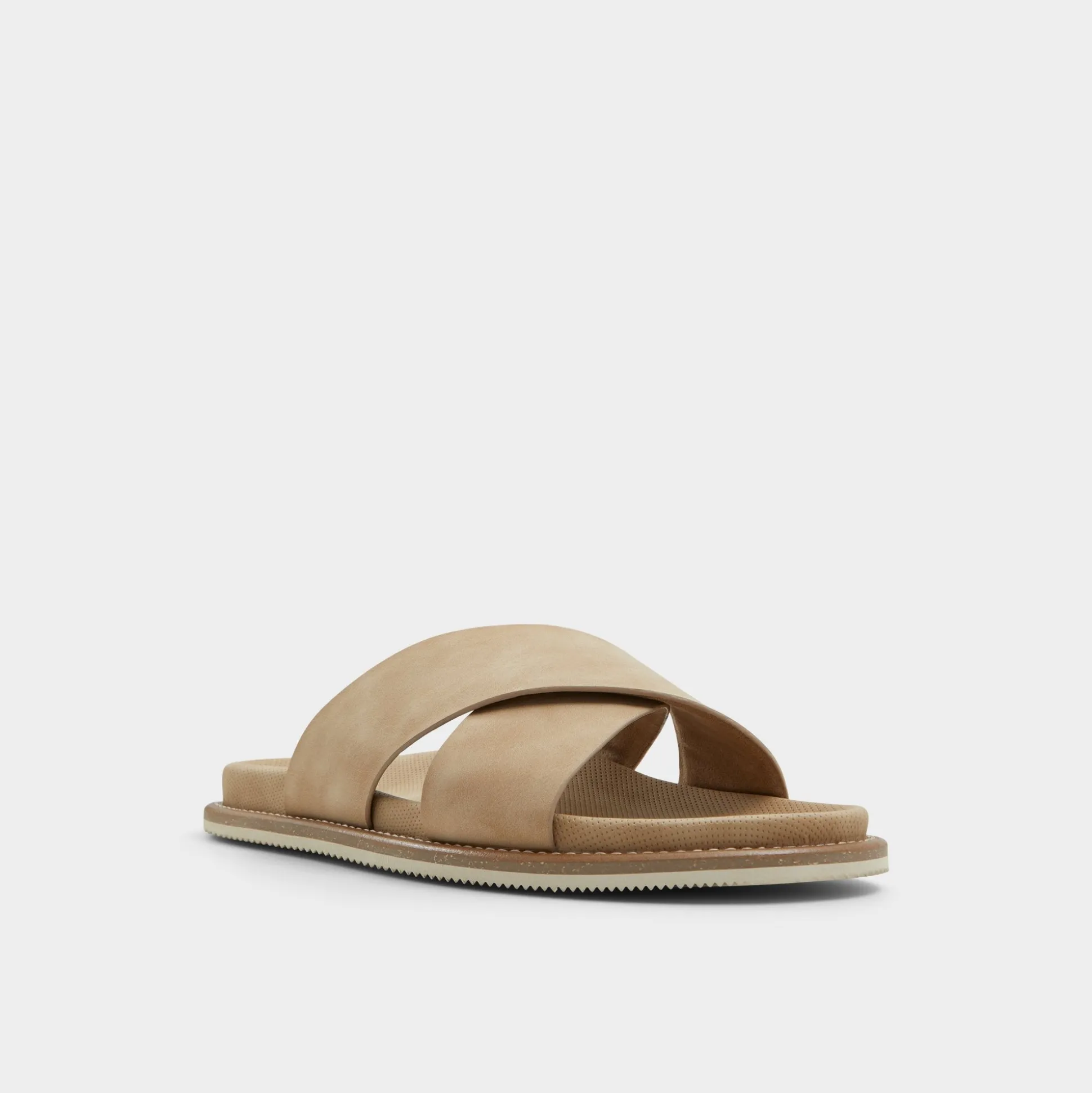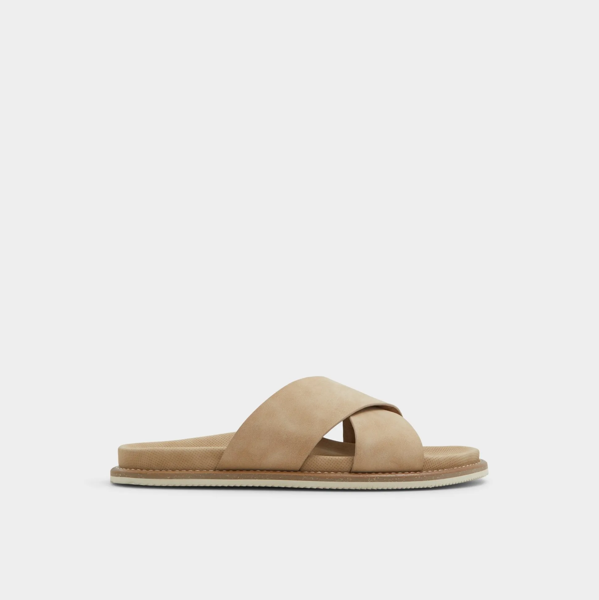 These sleek slides with with wide crossed straps will add a contemporary touch to your warm-weather wardrobe.