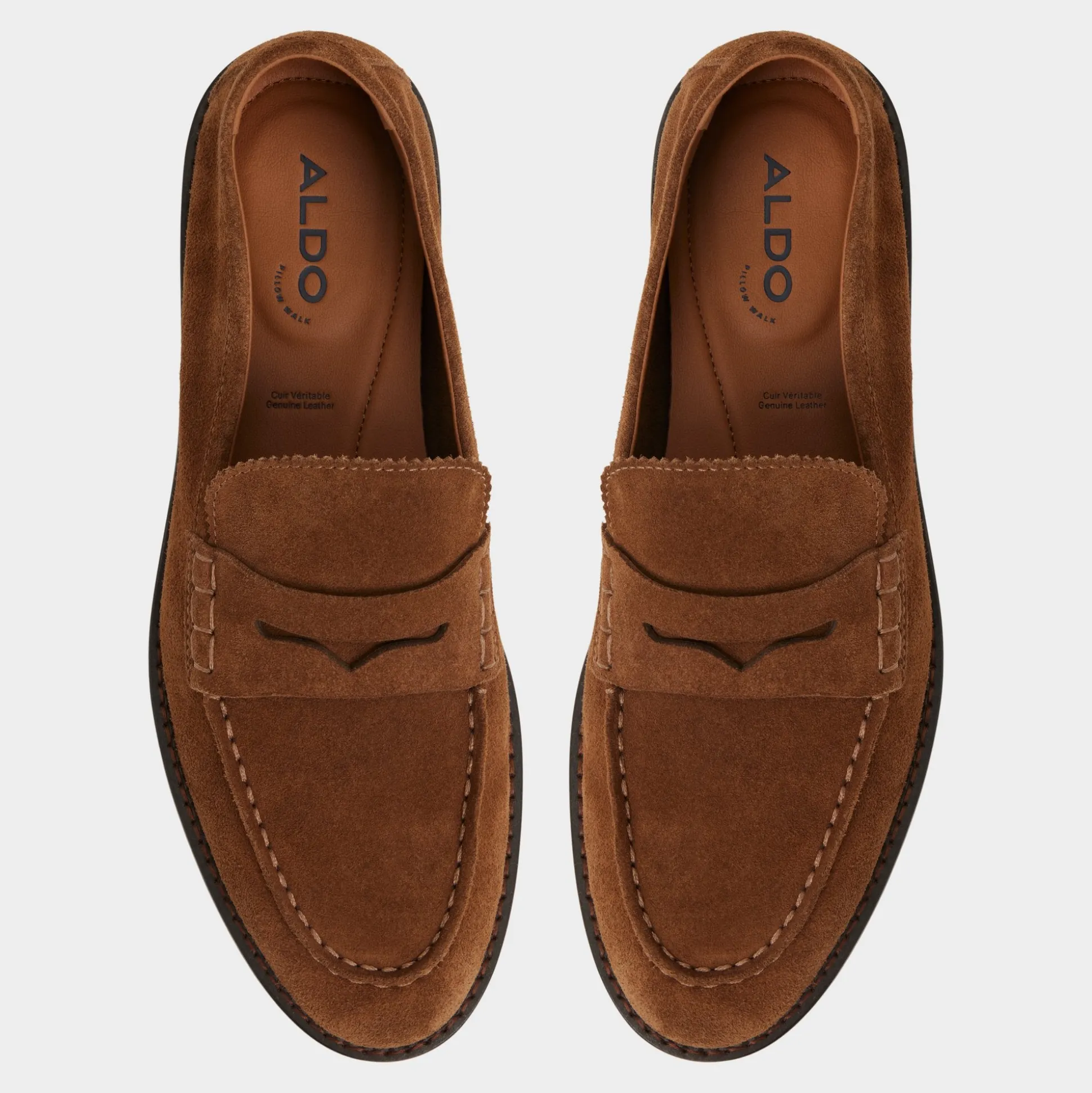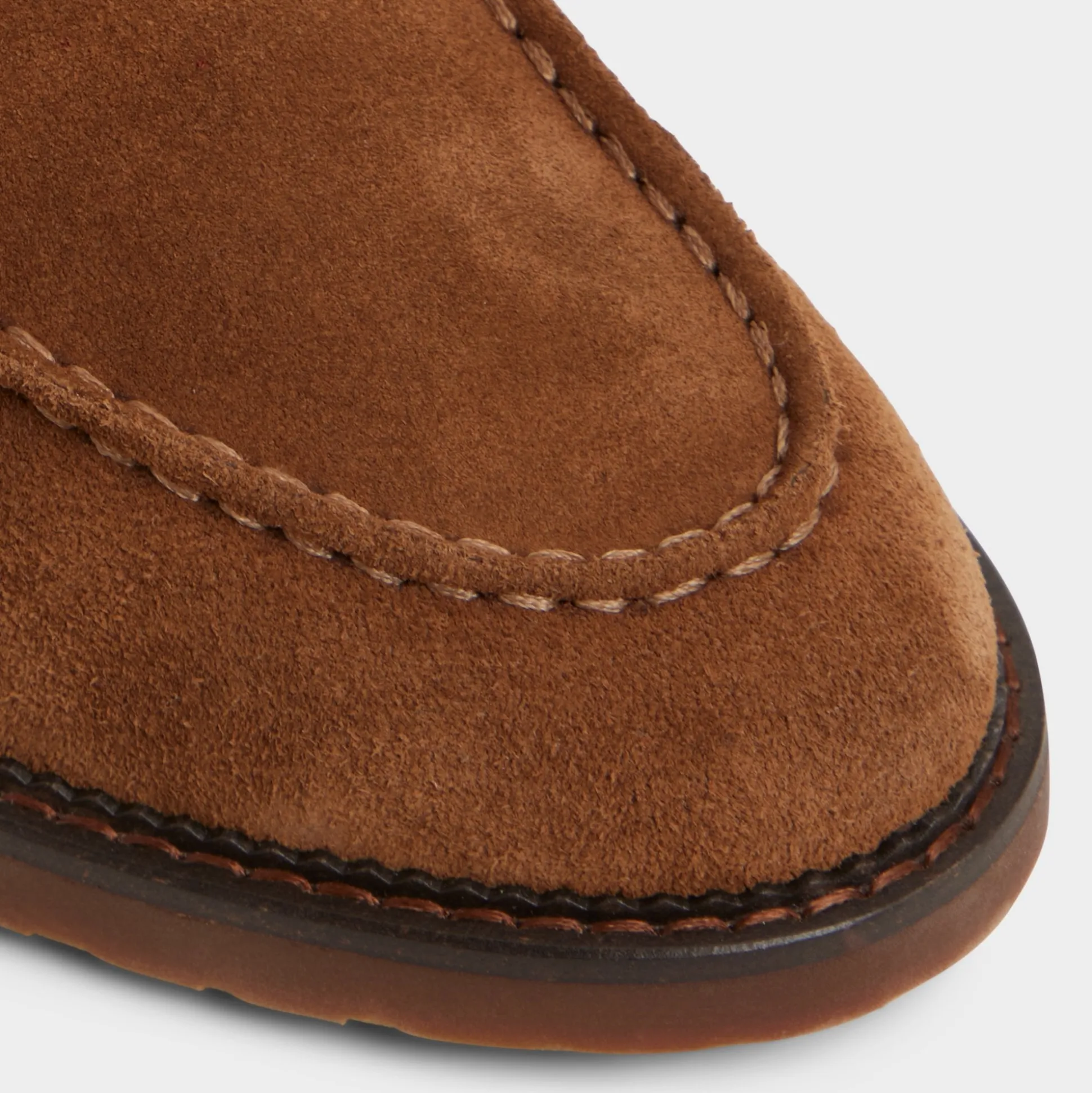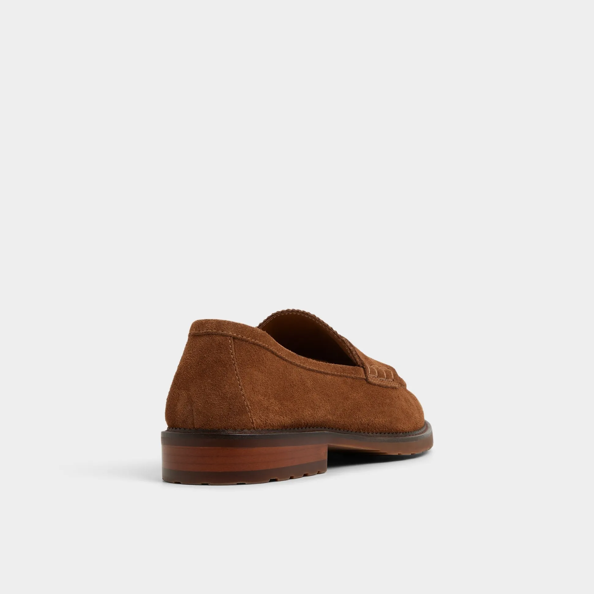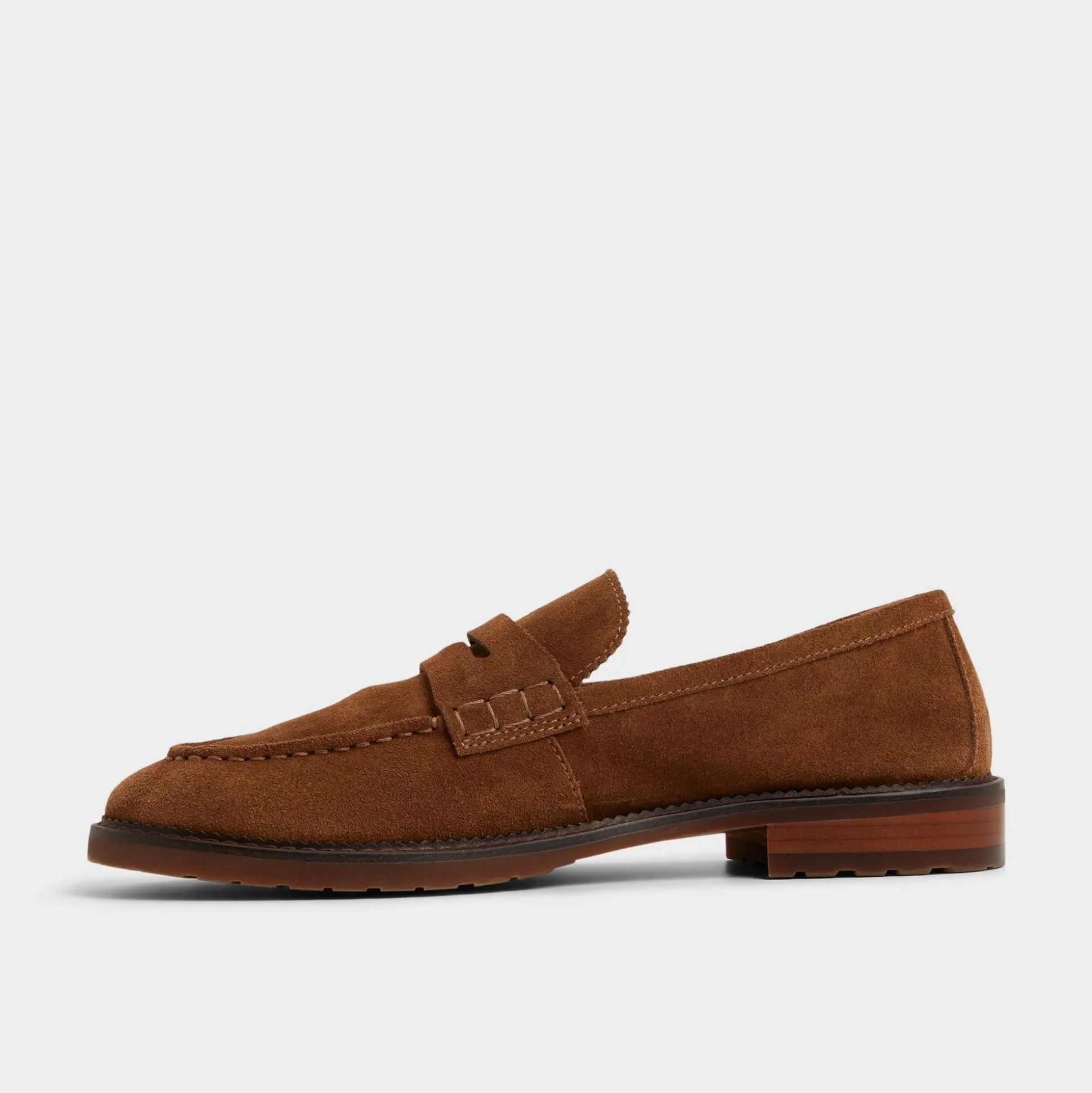 Soft cognac suede shapes this penny loafer, its silhouette paired with a slim lug outsole that moves with you and keeps traction discreetly confident through long days from commutes to casual hangs. Pair it with navy chinos for office brainstorms or roll with cuffed denim for weekend markets—two looks that flow from workdays to social life.