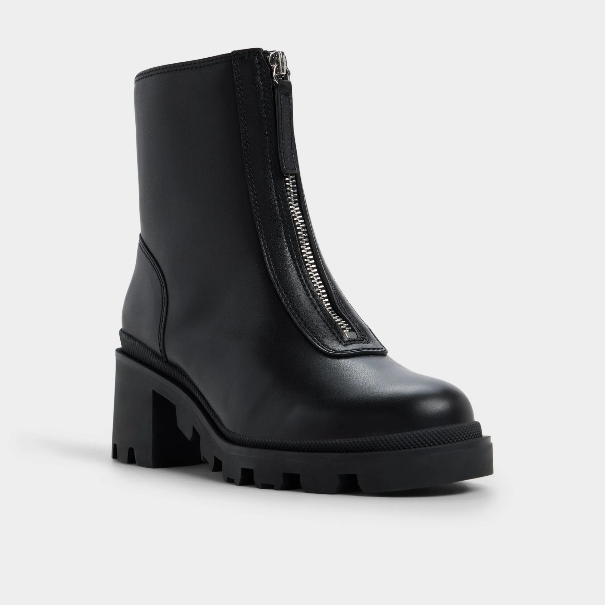Supple black leather meets gutsy front zips, while a chunky lugged sole lends bold, confident stance from city sidewalks to late-night outings, and a refined silhouette keeps it poised for meetings and street-hungry weekends. Pair with cropped denim for city errands, or ground a sleek midi with a leather jacket for after-hours sips and rooftop moments.