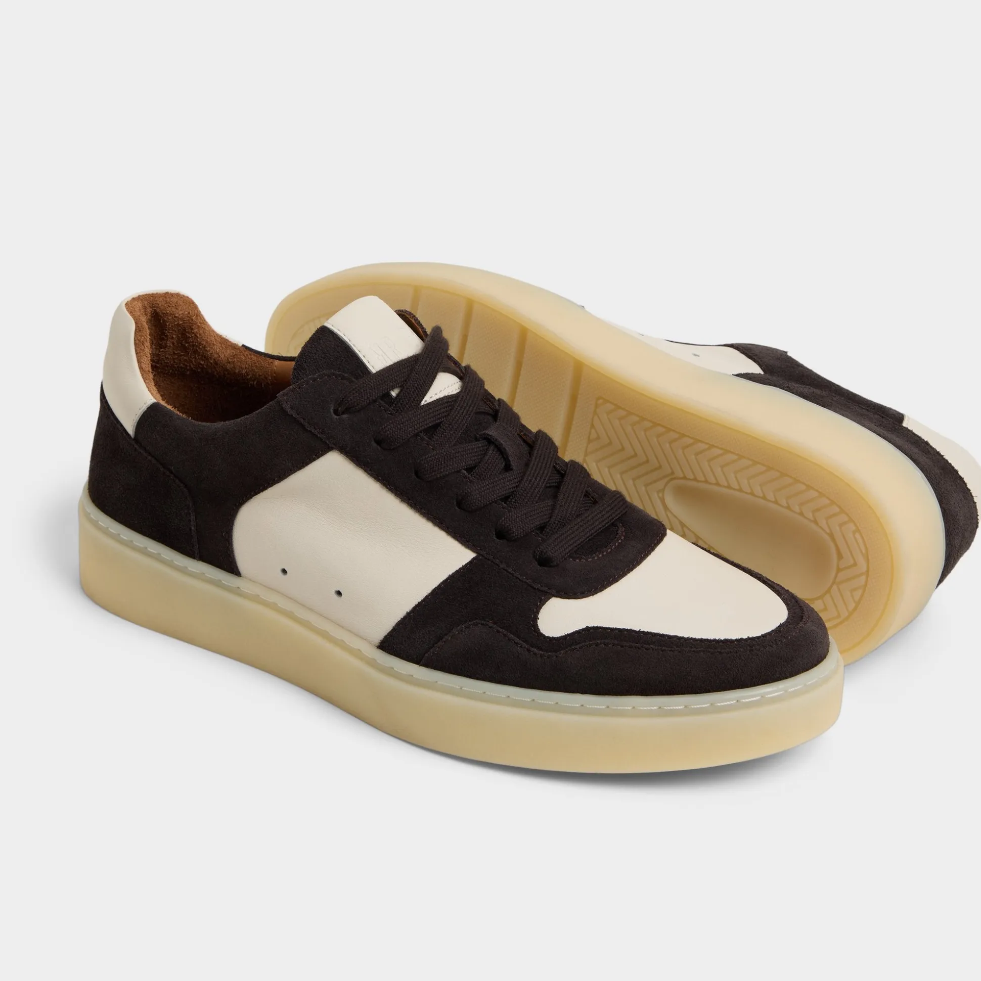 Bold black-and-white leather meets velvety suede in these low-tops, a contrast that quietly elevates every stride and keeps the look polished from dawn to dusk. Team them with tapered joggers for morning coffee runs, or pair with dark denim for city strolls on weekends.