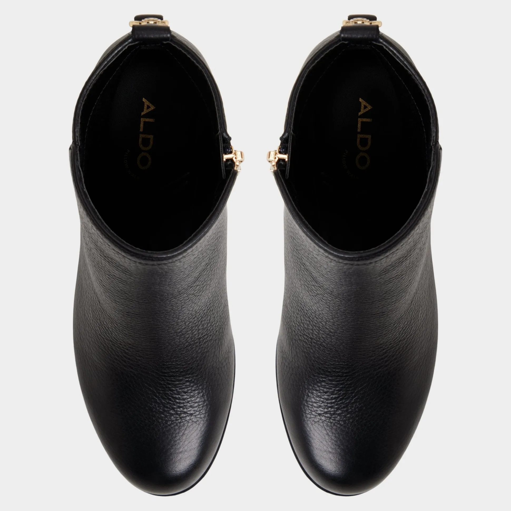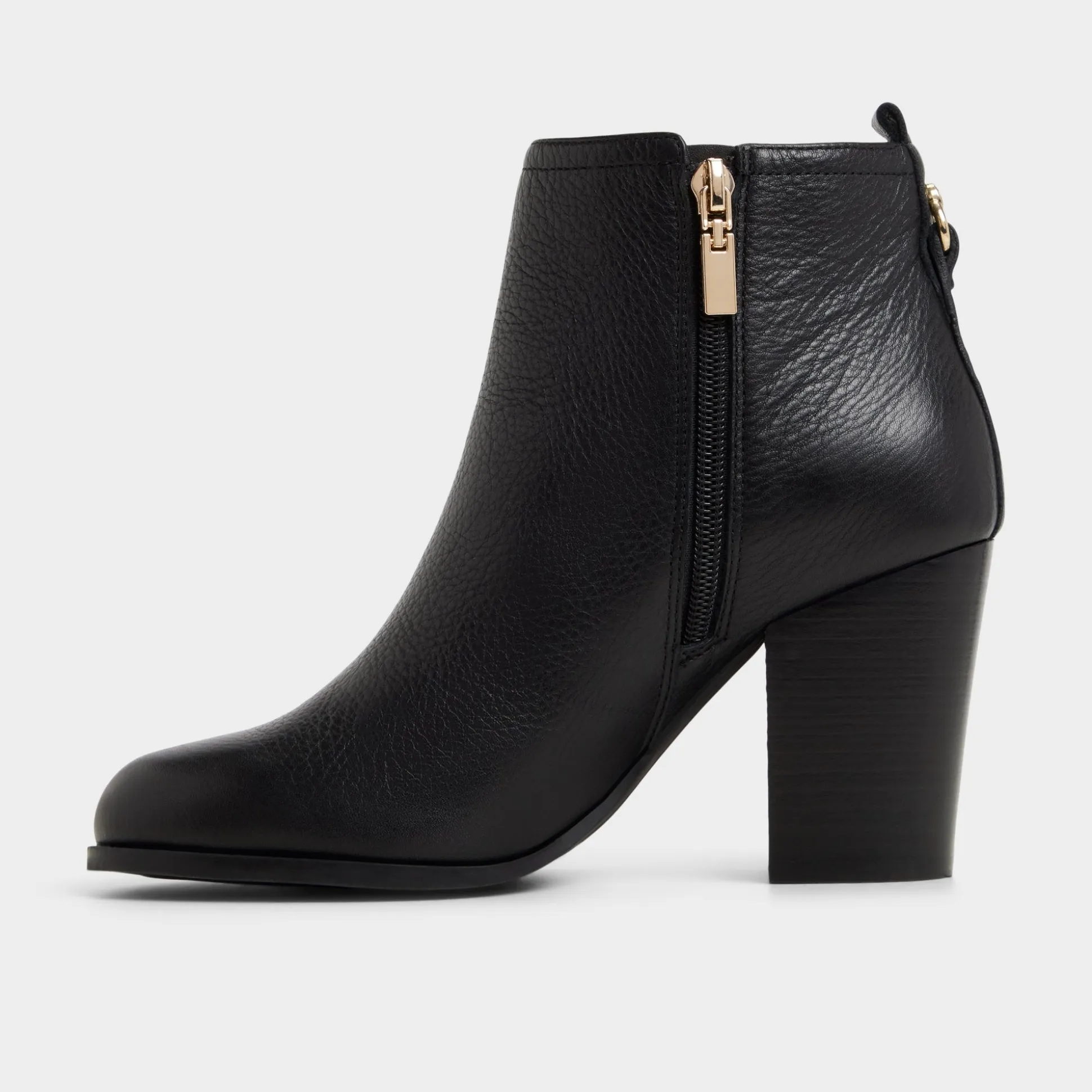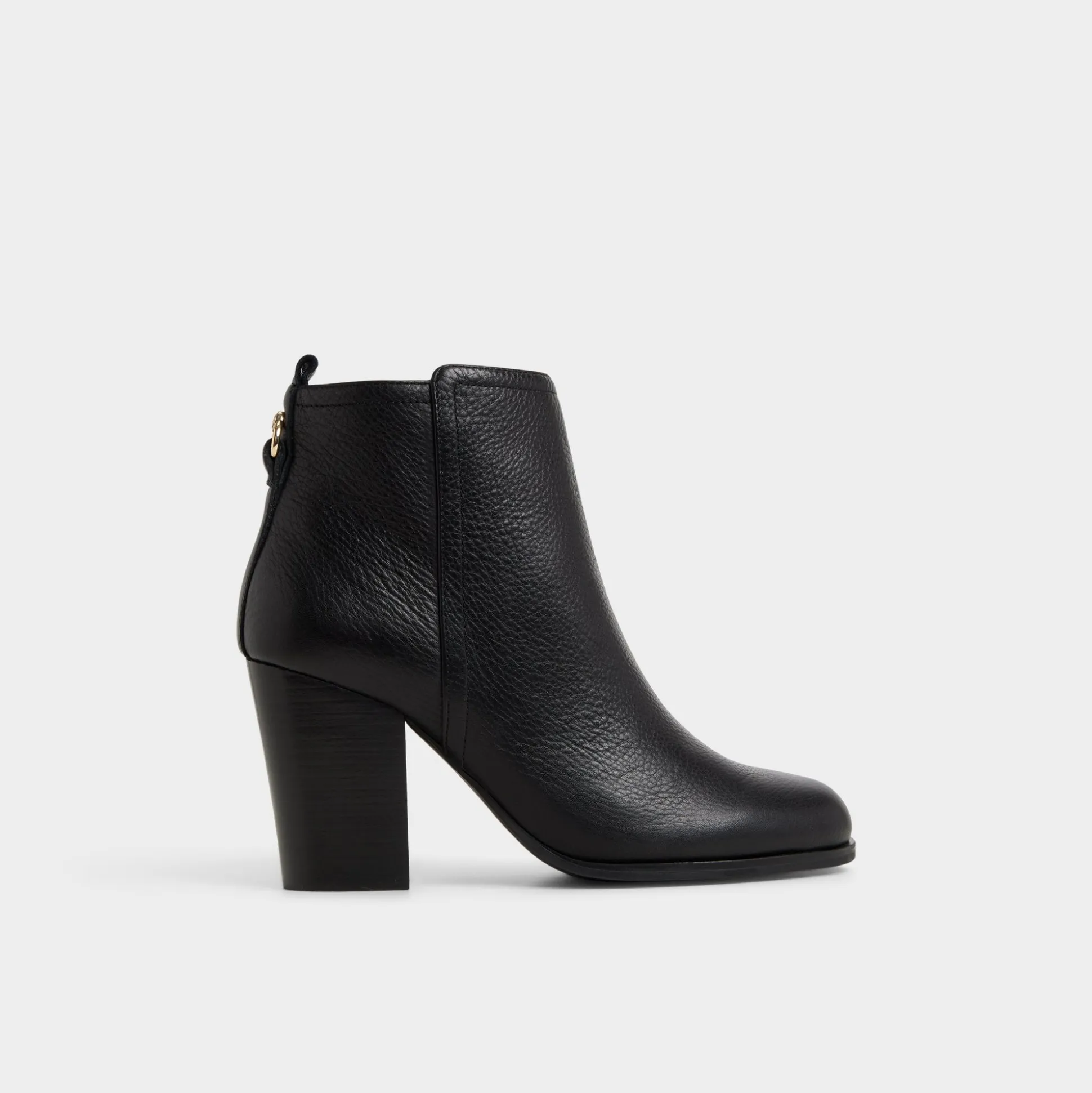 Richly grained leather shapes this sleek ankle boot, while a stacked block heel delivers steady lift as you breeze through packed agendas with downtown polish from the first meeting to the last. Pair with cropped trousers for office mornings, or slot beneath a satin midi as after-hours cocktails drift into city strolls.