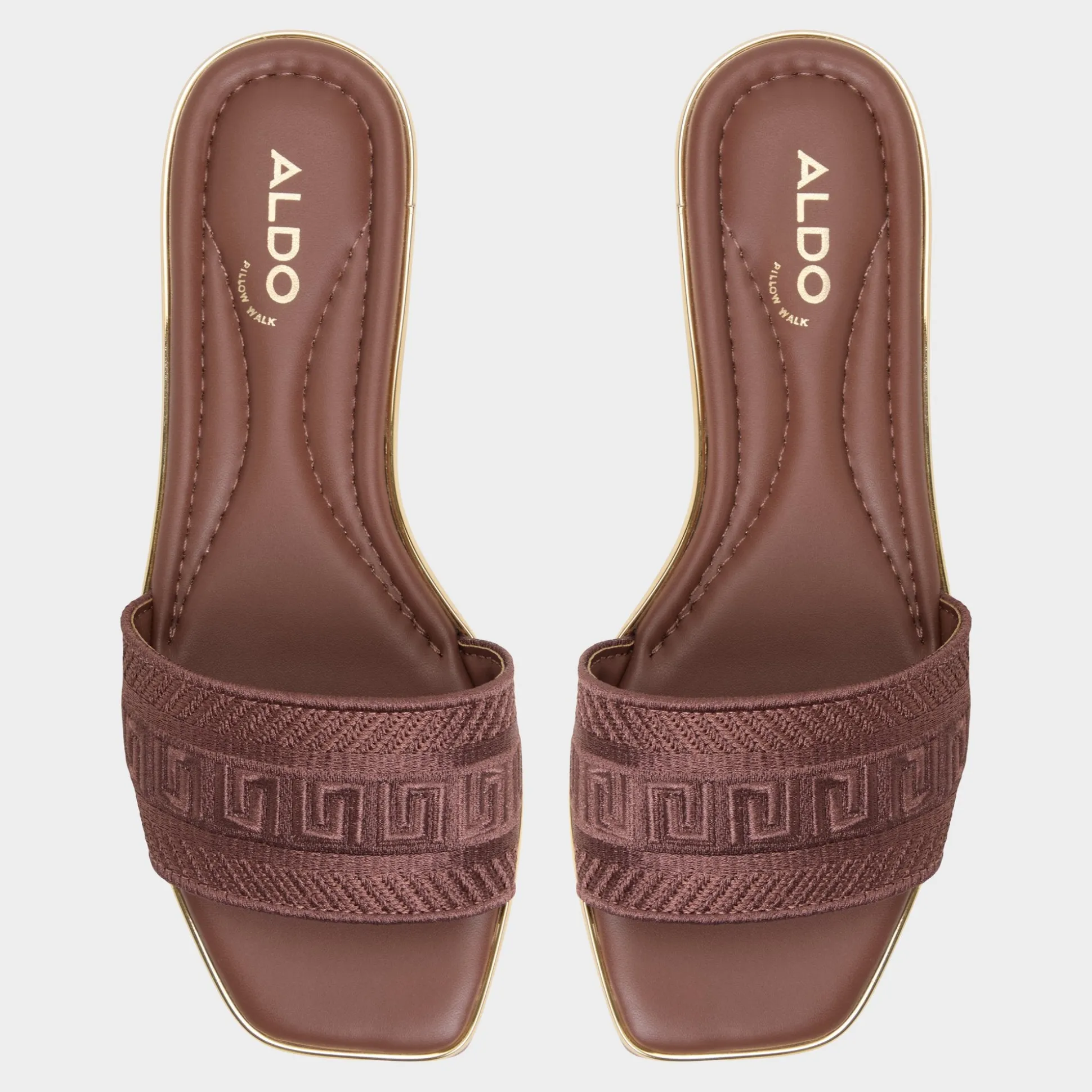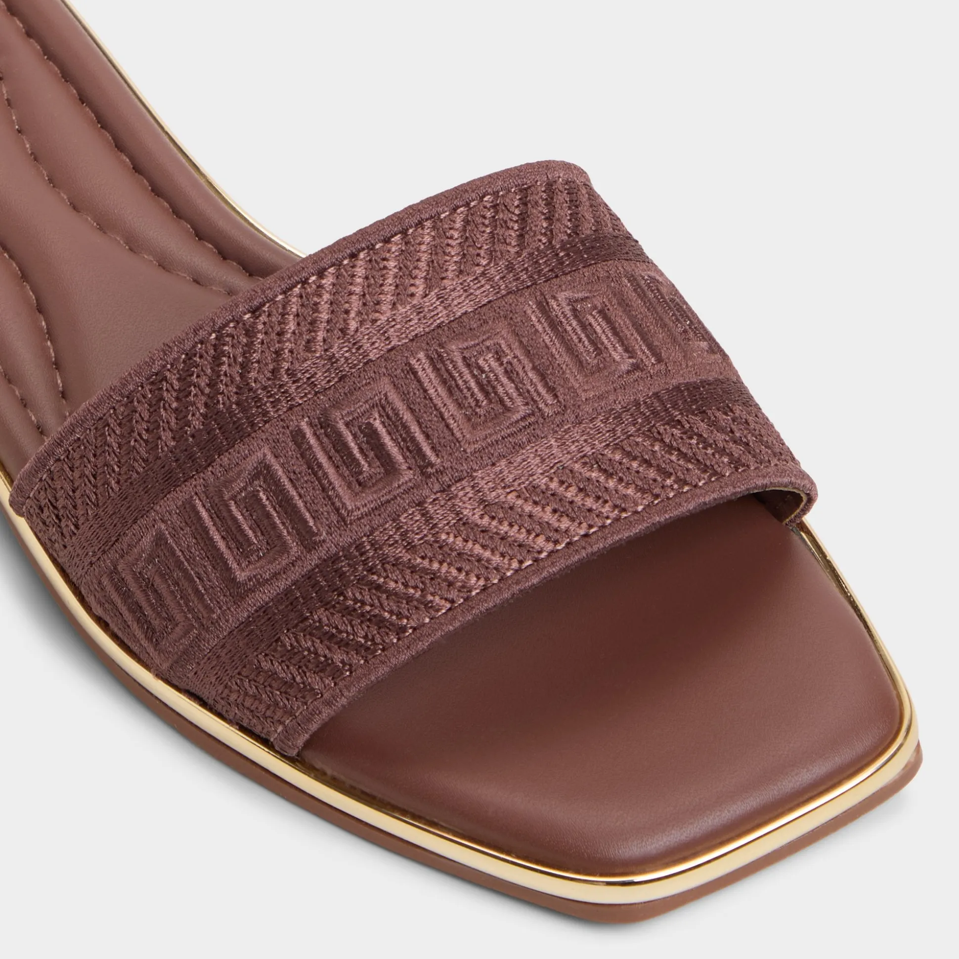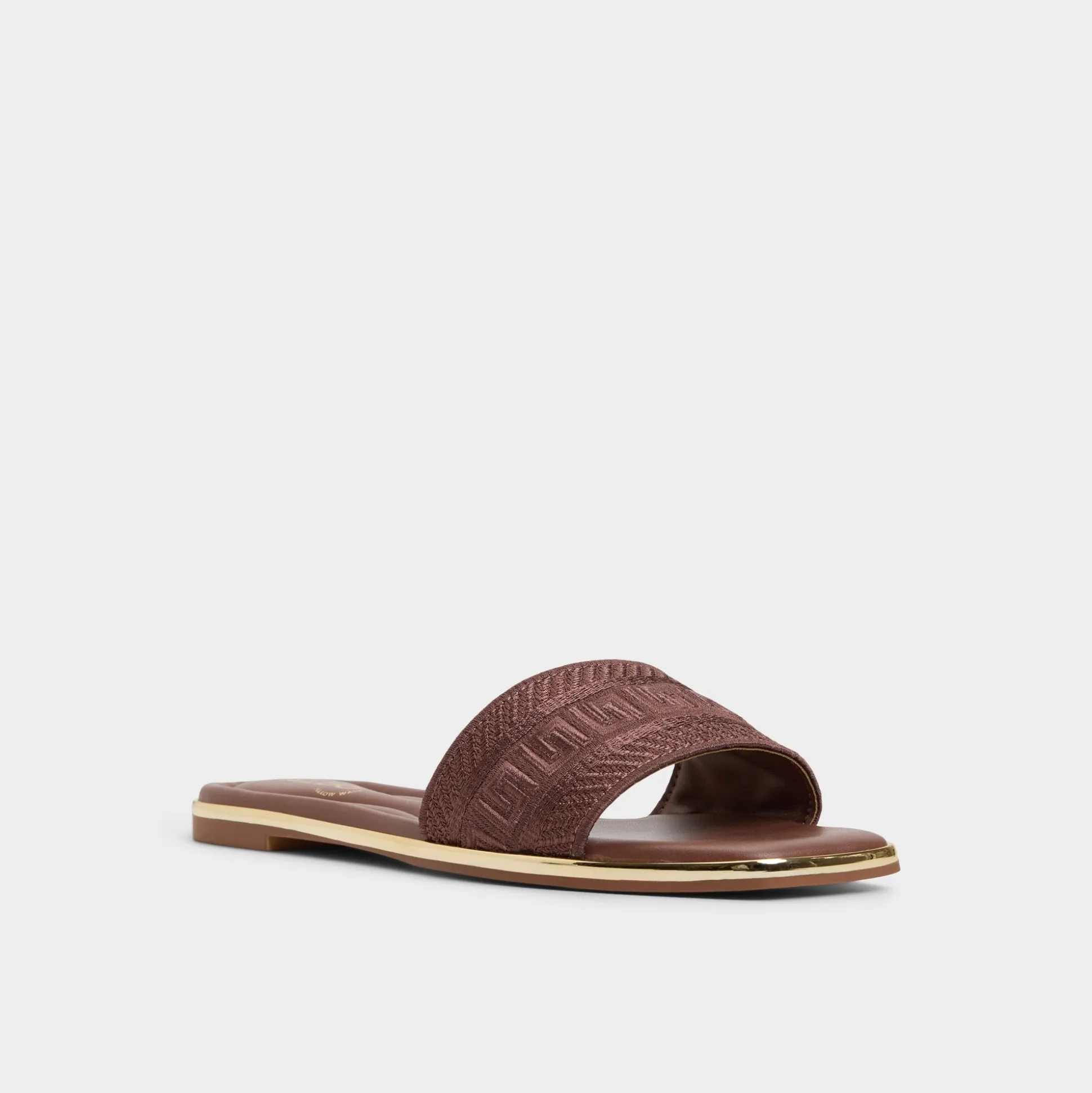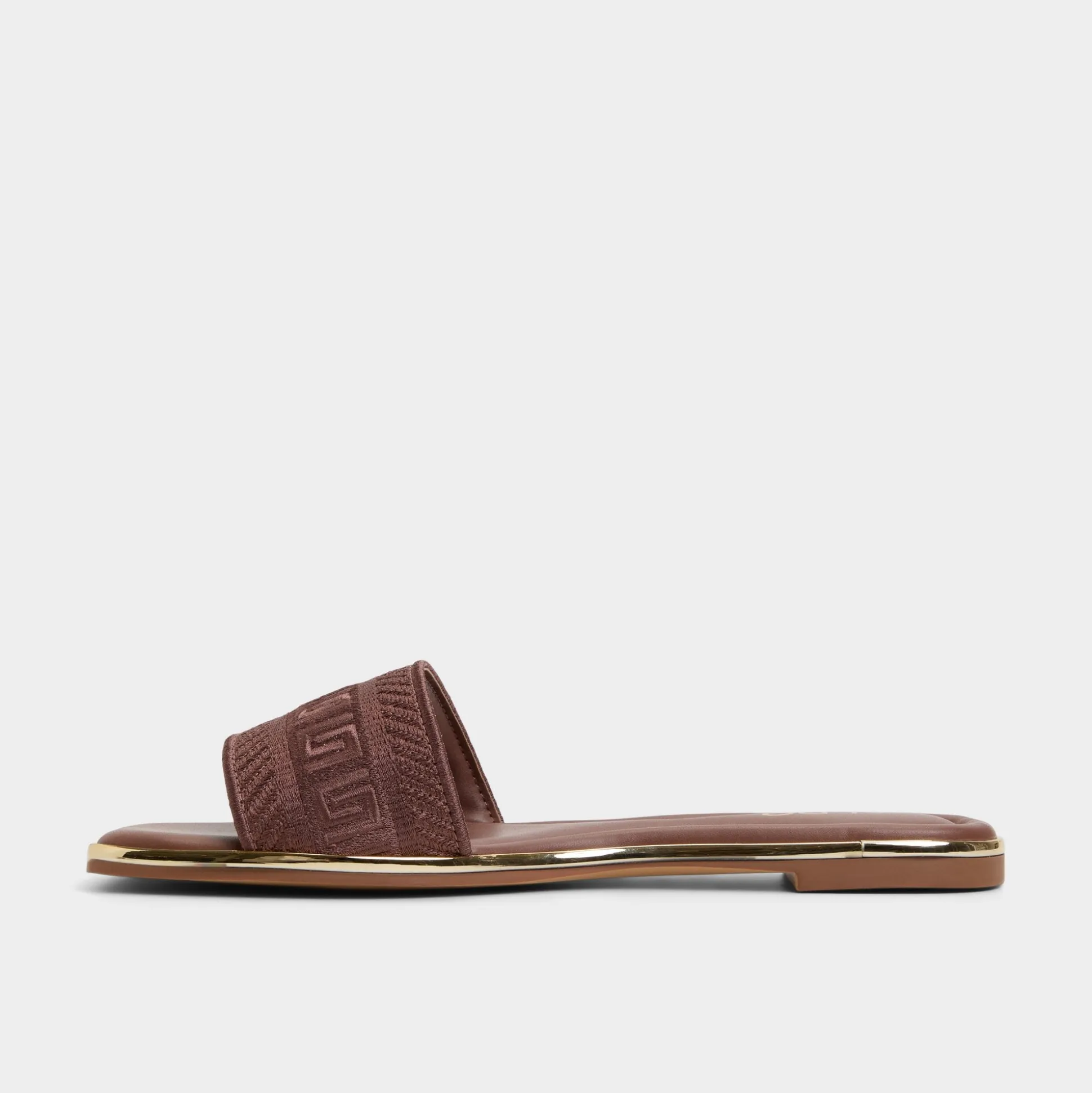 Matte mocha leather grounds a city-ready silhouette with a raised maze-like strap and a slim gold-trimmed sole, while a softly padded footbed makes every step feel calm, confident, and ready for gallery strolls. Pair with linen shorts for cafe runs, or slip beside a column dress as gallery openings begin.