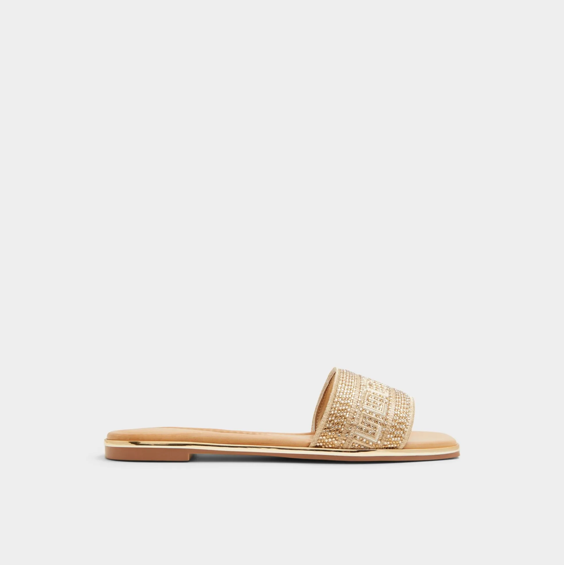 Show off your sun-kissed style with these obsession-worthy gold metallic slides destined to make a splash this summer.
