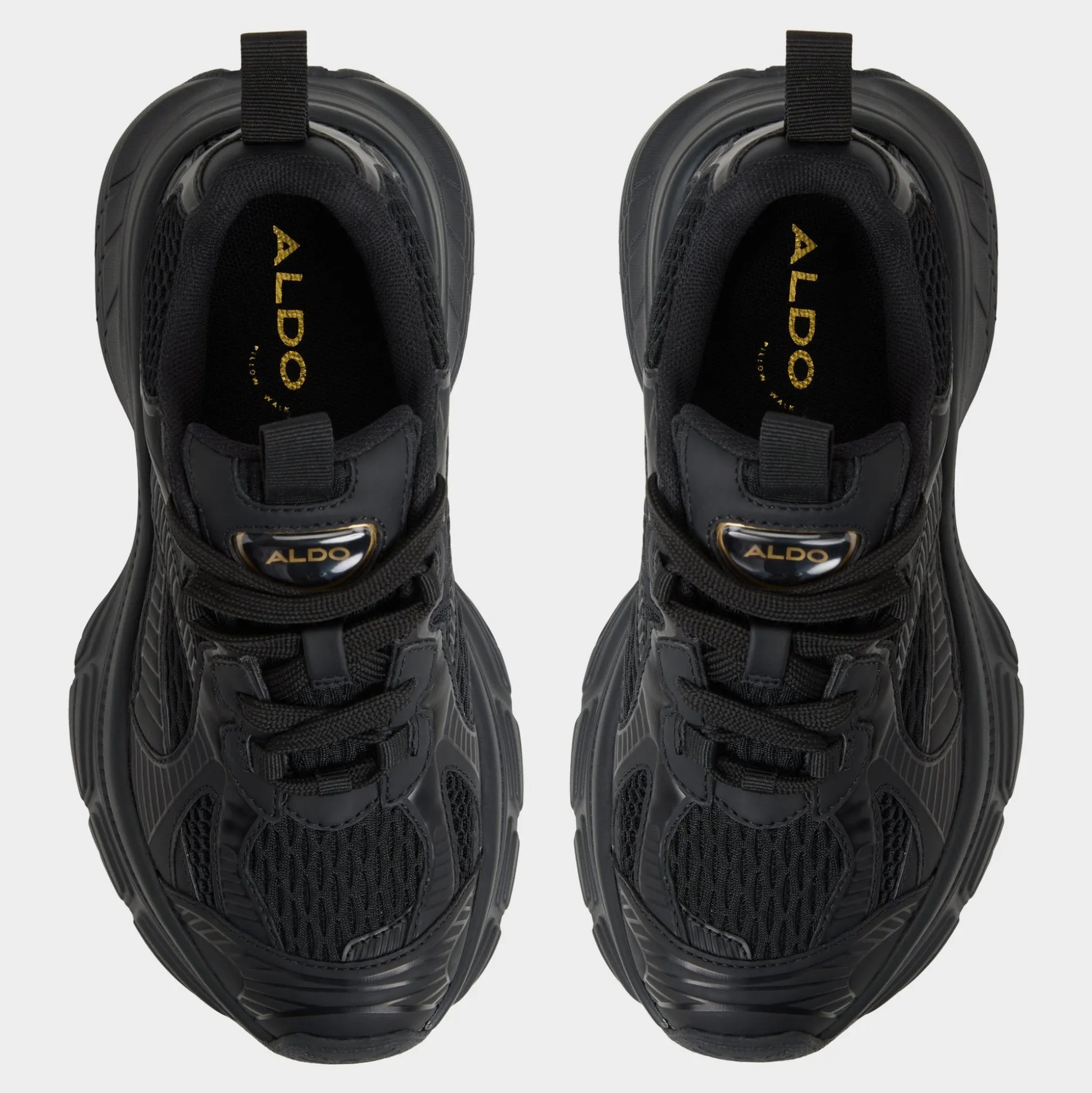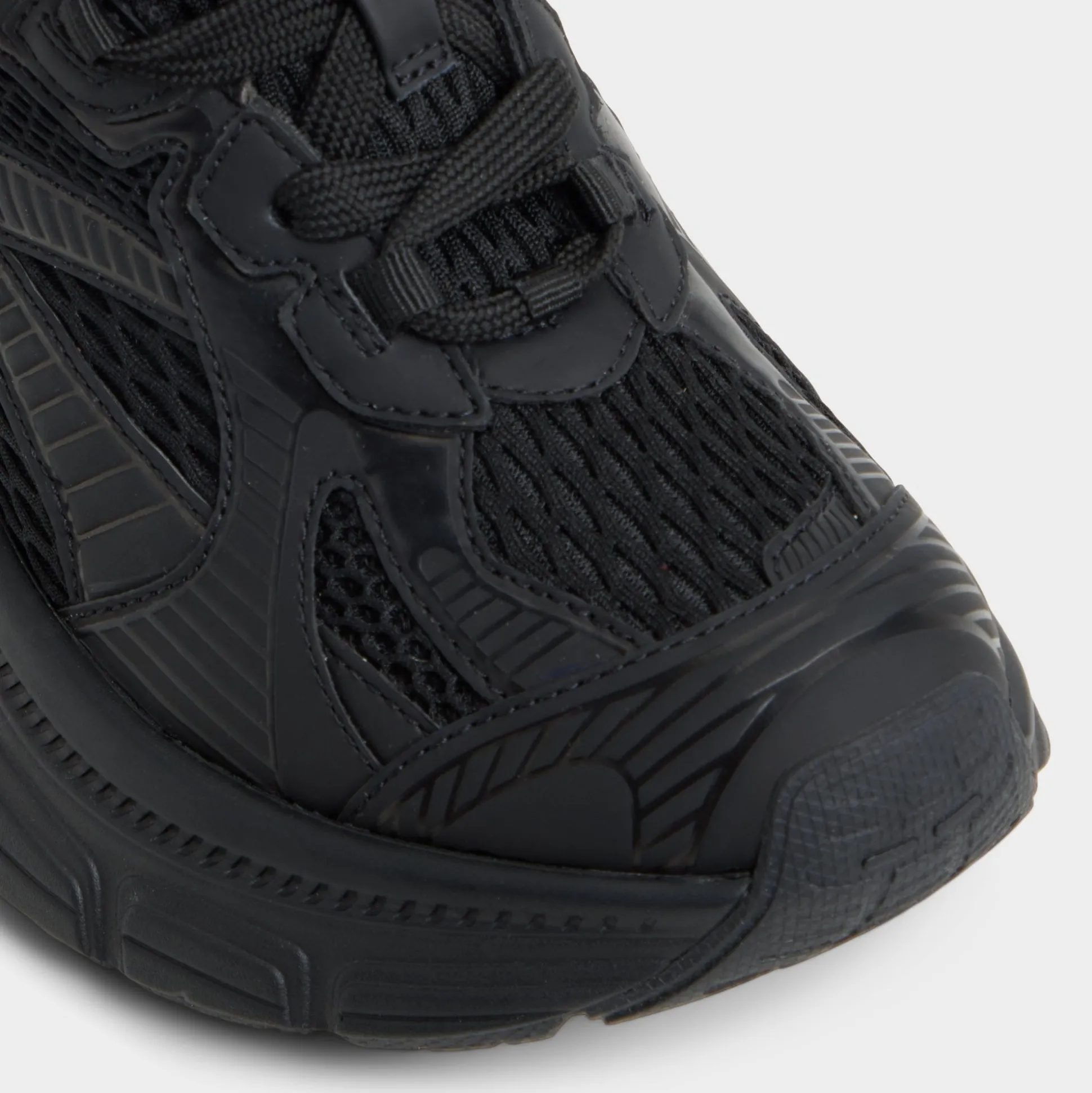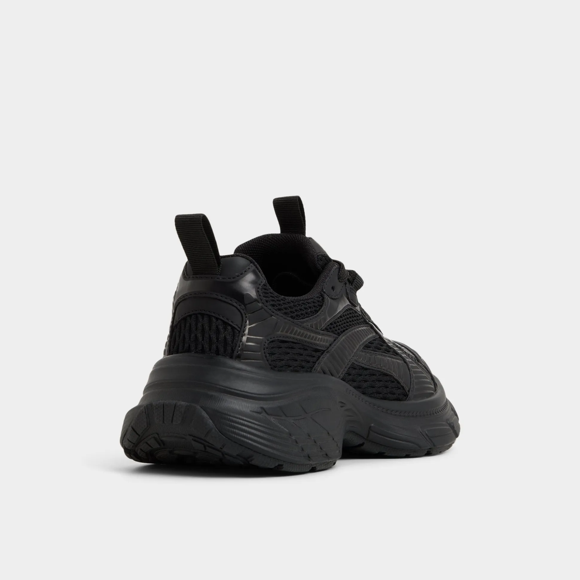 Mega-sculpted jogger sole elevates this black-on-black sneaker, while textured mesh keeps breathability high from morning playlists to evening strolls, delivering confident steps all day. Pair with bike shorts for coffee runs, or ground a satin slip skirt when post-work gatherings call for comfort.