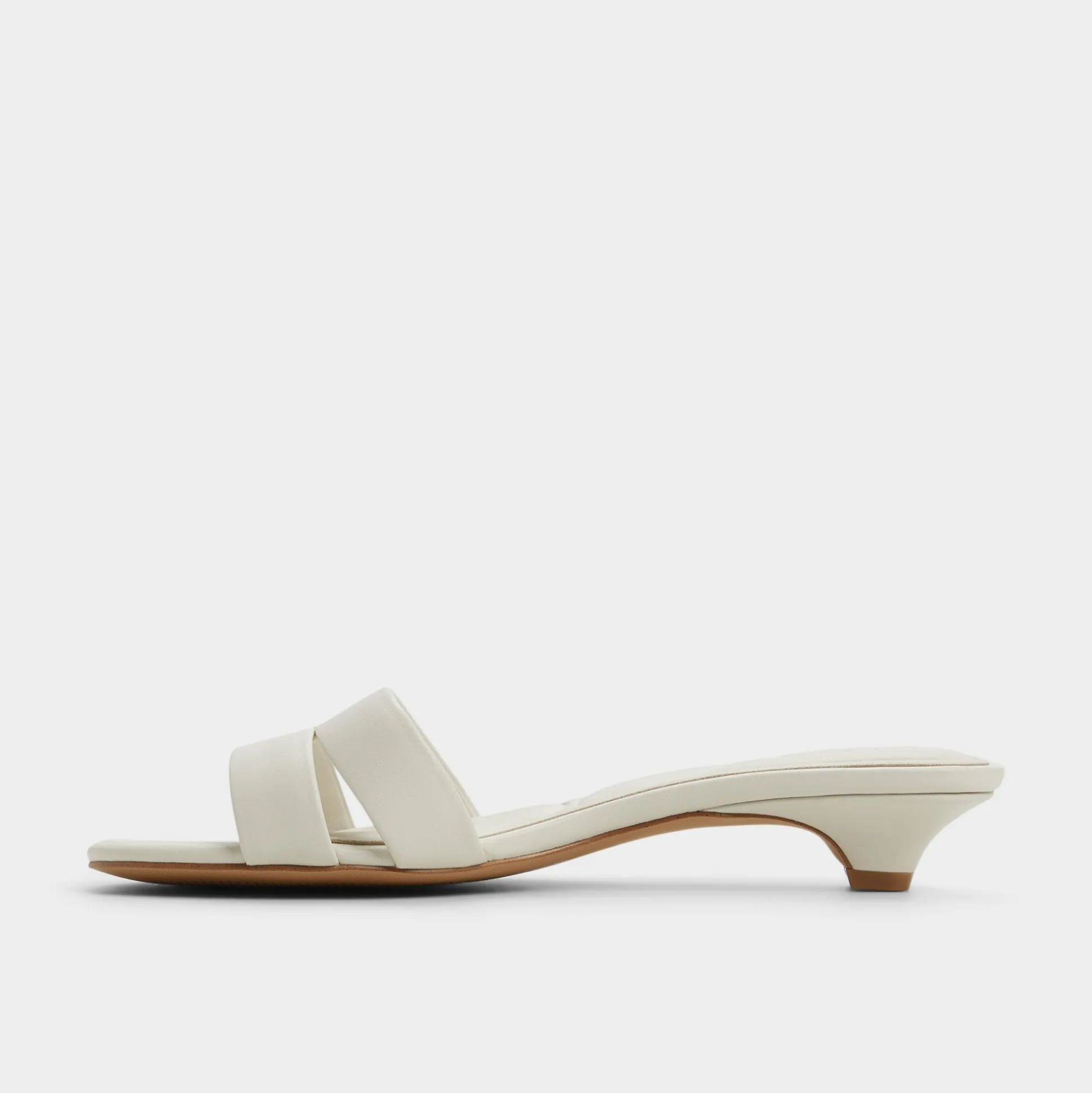 Subtle kitten-heel lift graces this refined leather slide, while twin folded straps frame a minimalist line, pairing city-smart polish with casual ease for everyday commuting, coffee runs, brunches, and impromptu invites. Wear with cropped denim for brunches, or switch to a silky slip dress when wedding receptions demand cool elegance.