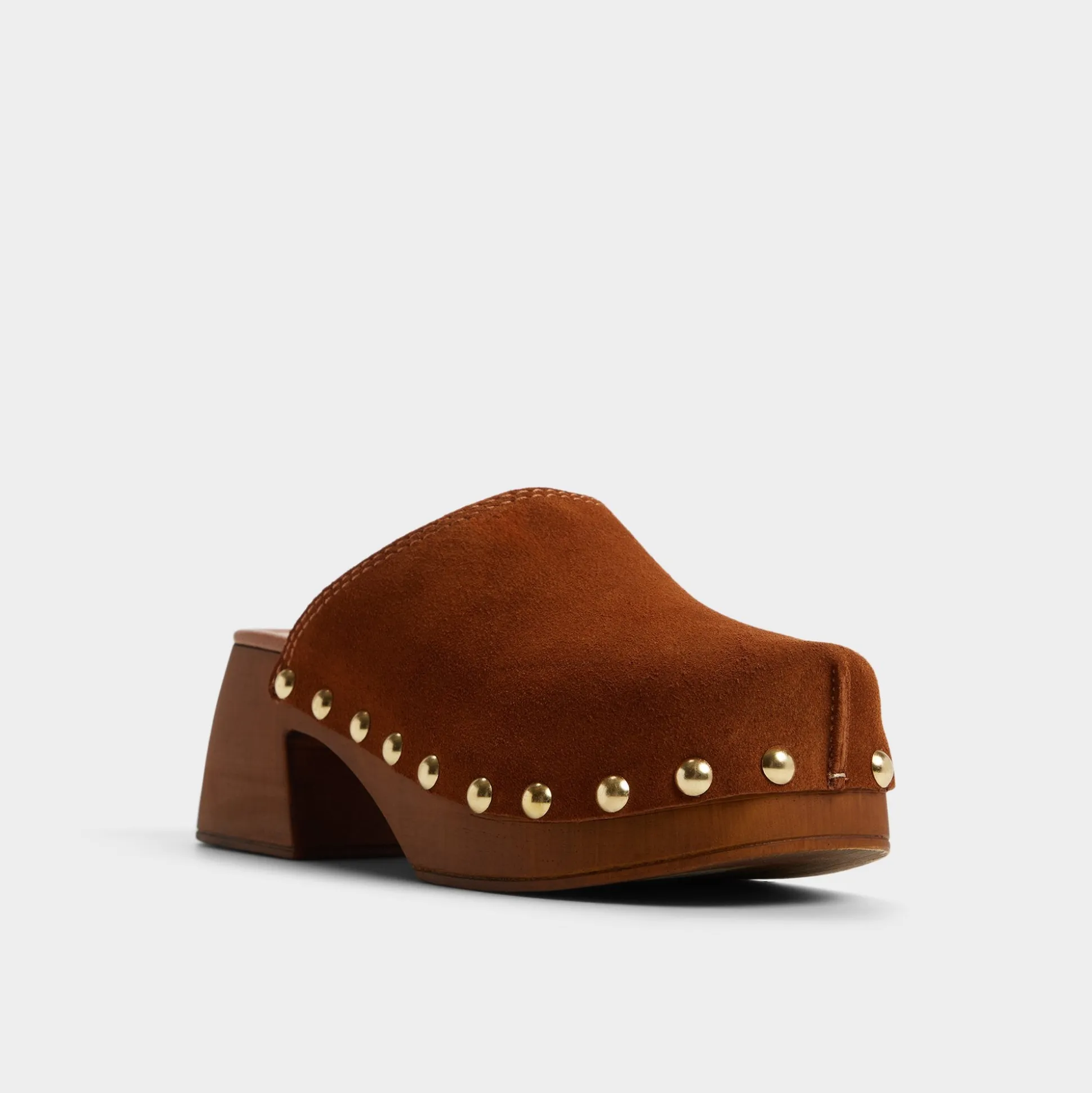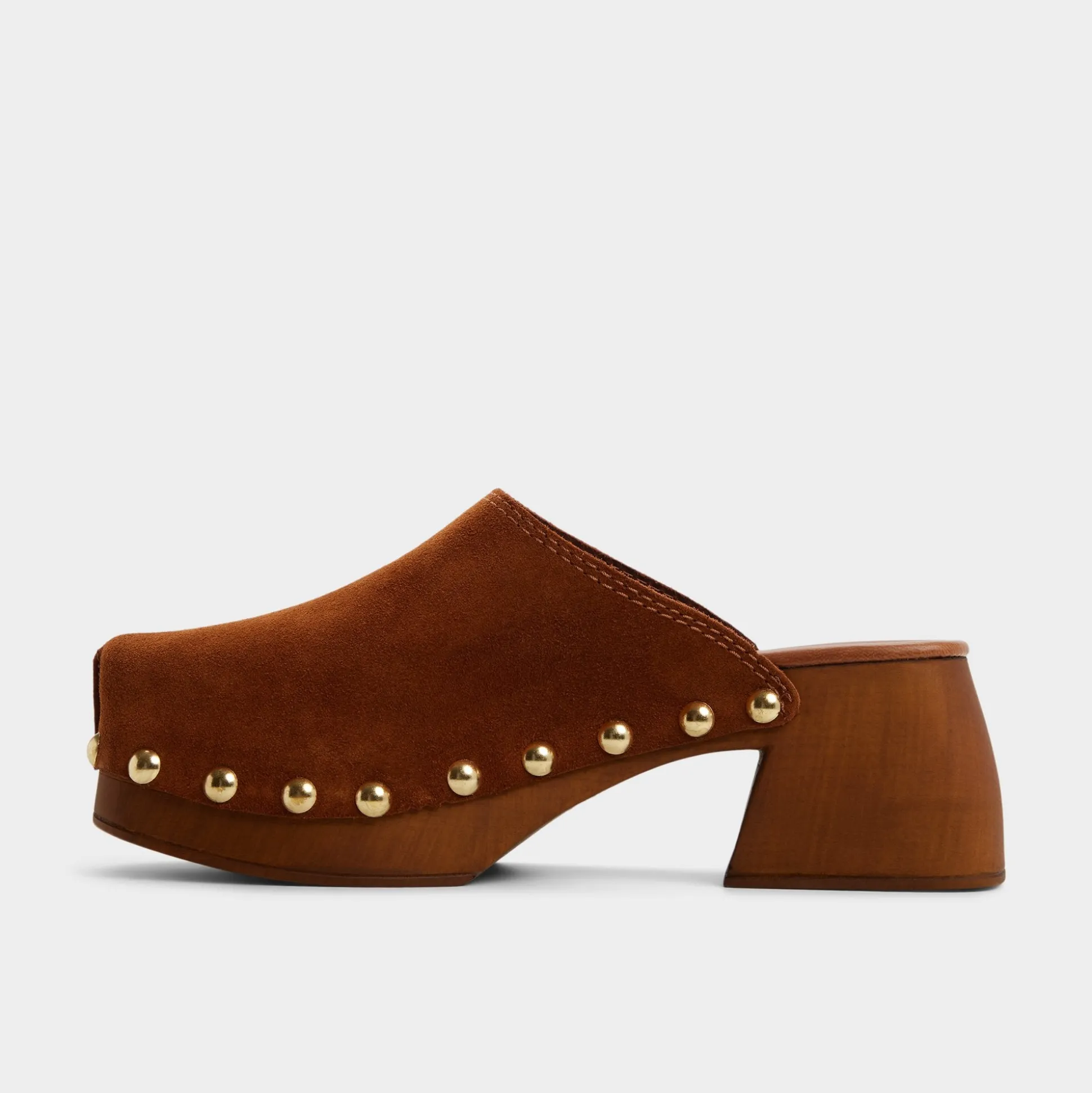 Soft suede drapes a sculptural wood clog sole crowned with gleaming studs, while a cushioned insole keeps city errands light, making every step feel balanced, grounded, and unexpectedly chic. Pair with cropped flares for coffee catch-ups, ground a prairie dress for easy festival days, or swap in linen separates to keep style effortless from dawn to dusk.