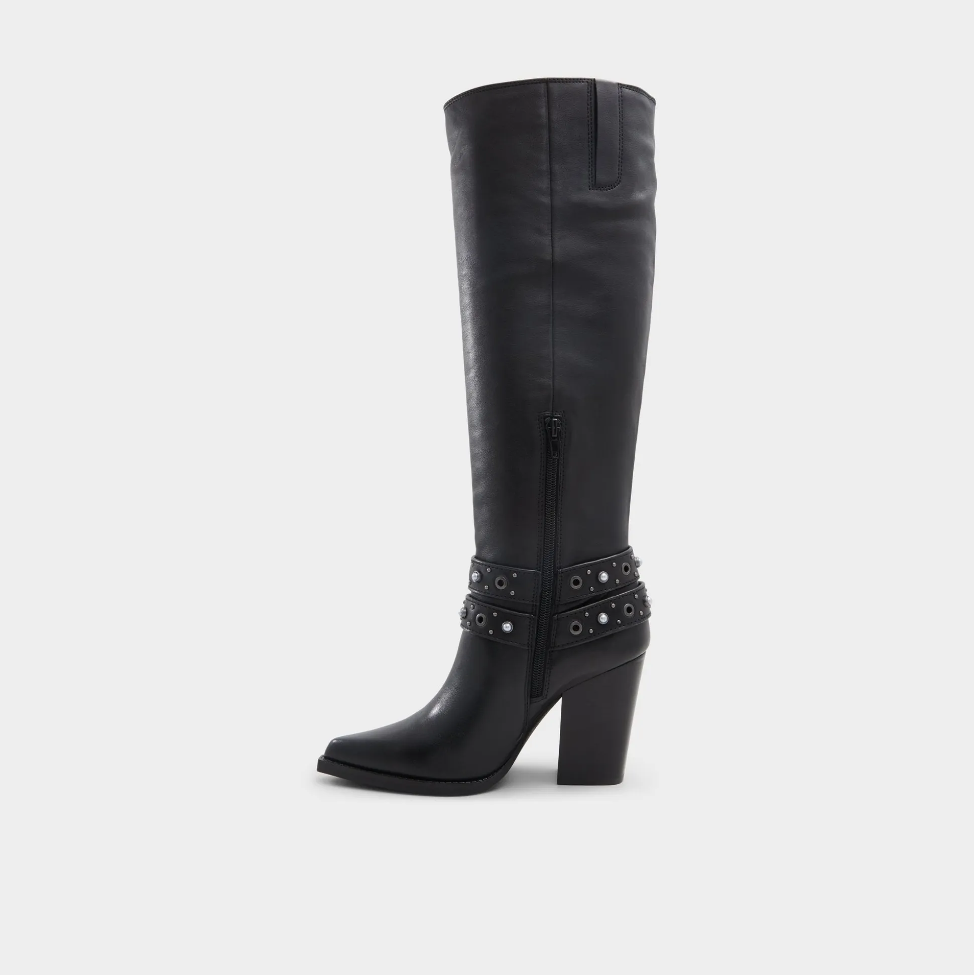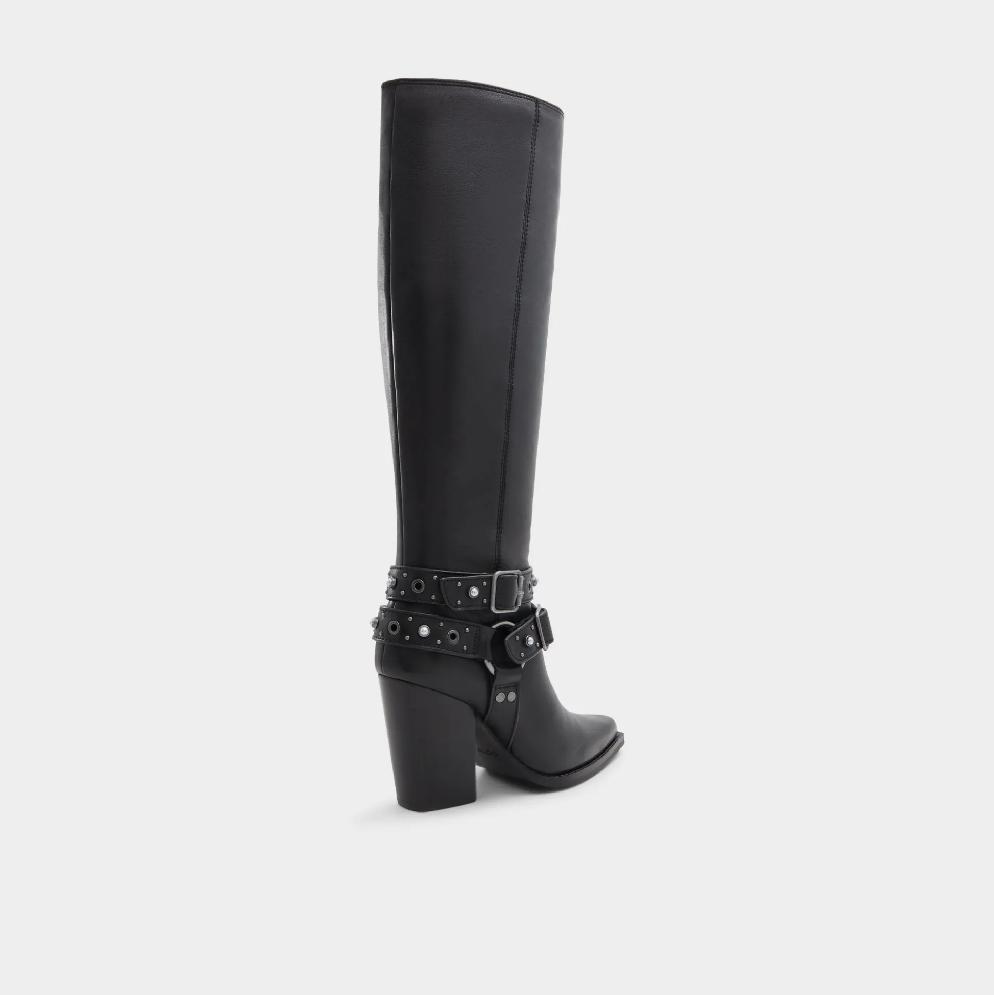 The buckle detailing of these pointed toe, western-inspired knee-high boots adds just that extra touch of edge you were looking for.