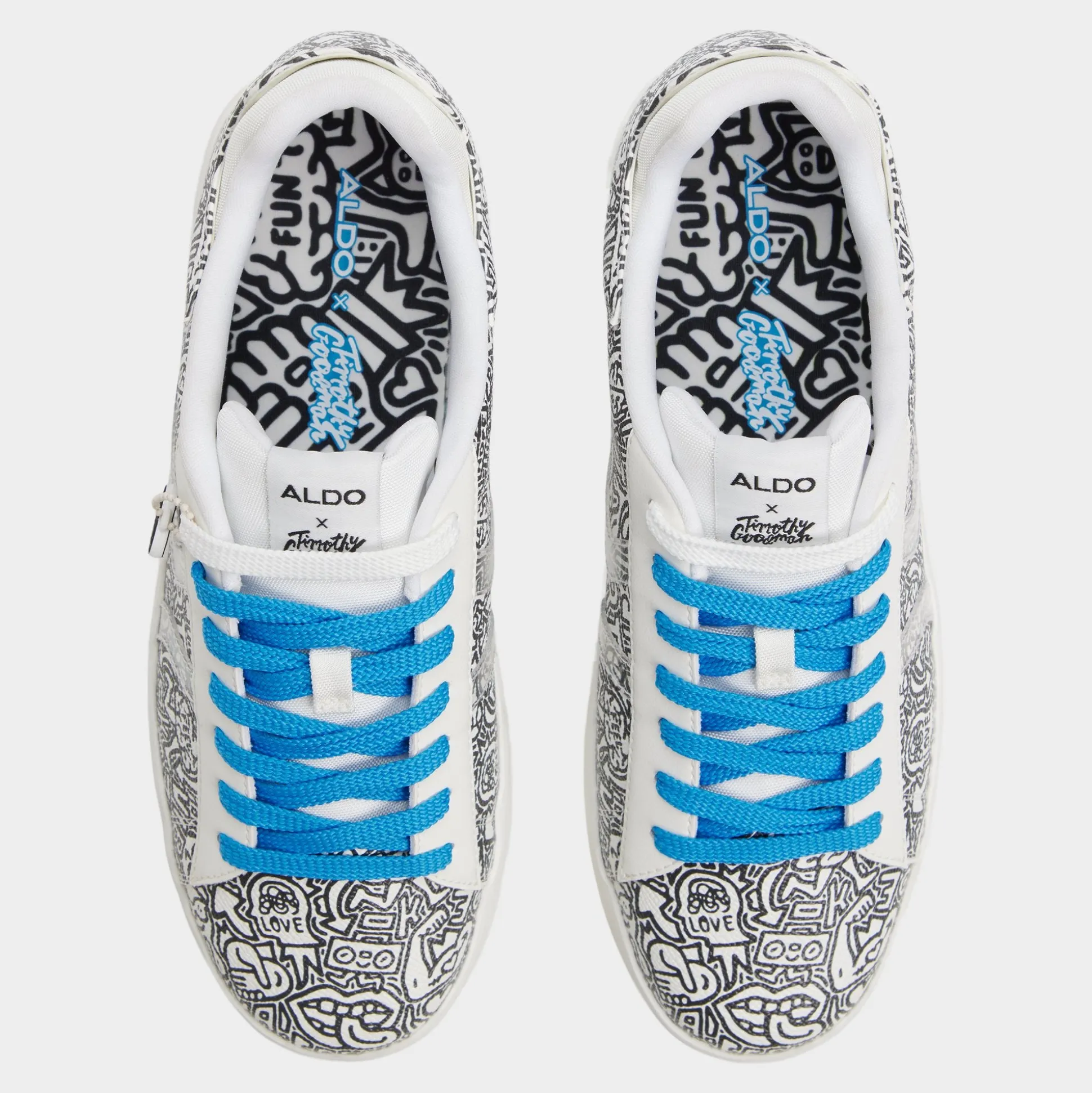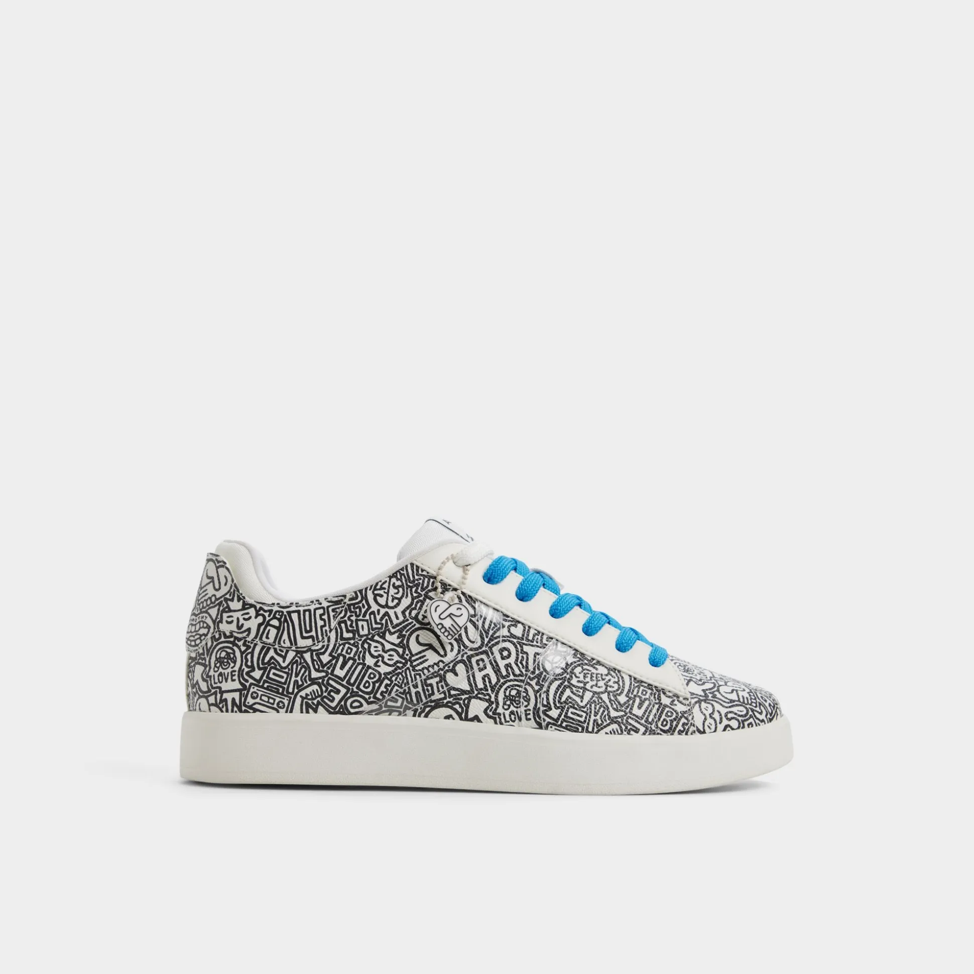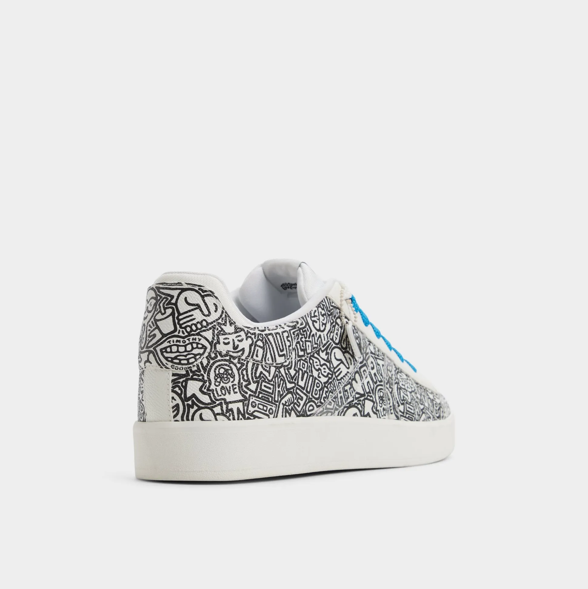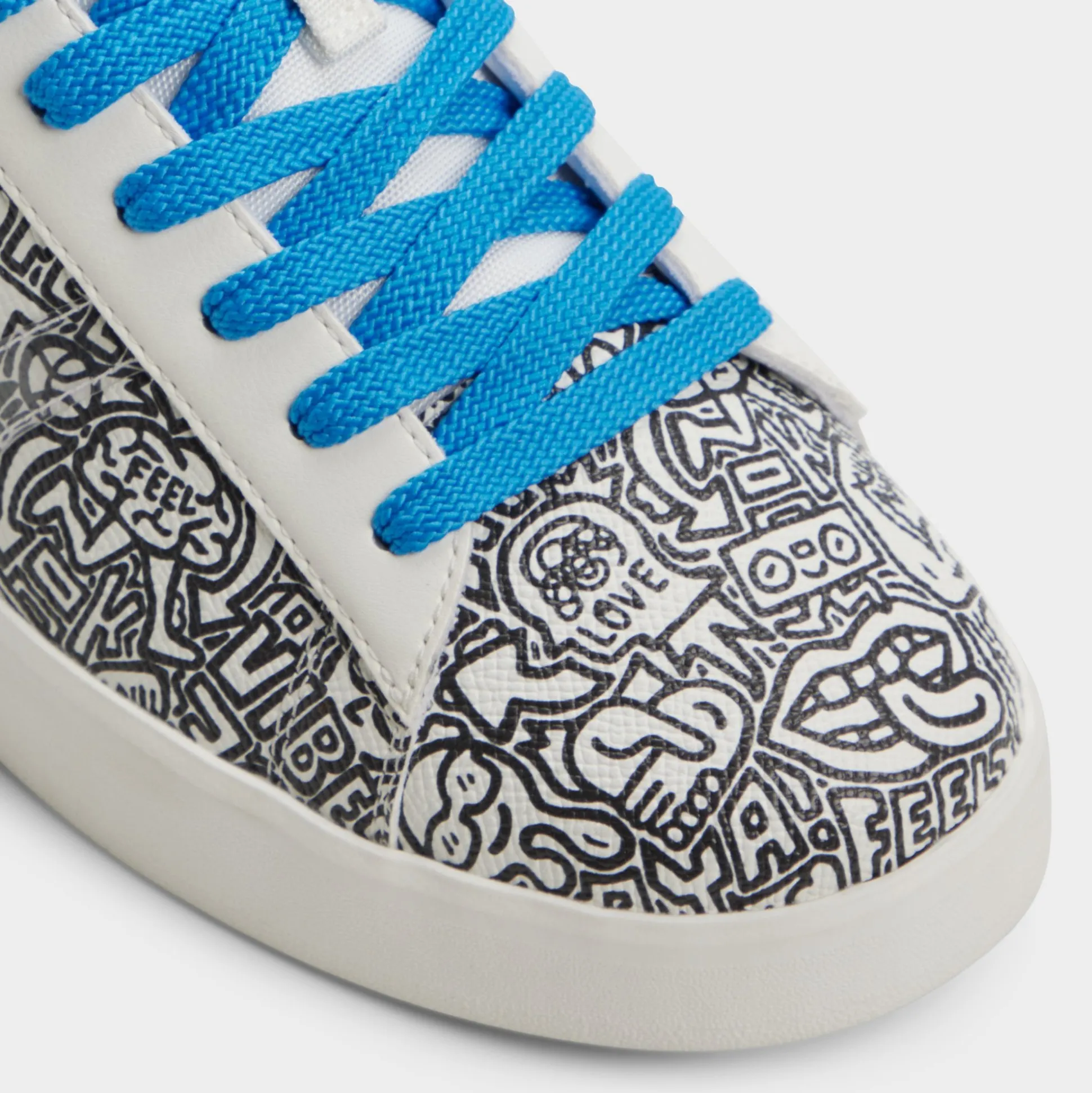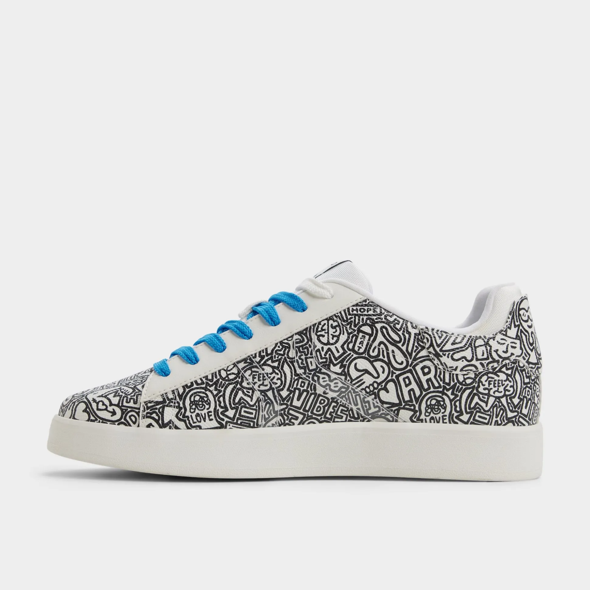 Synthetic uppers with graffiti-inspired flair and electric-blue laces give this low-top city energy, ready to turn sidewalks into runways, while a cushioned cup sole keeps every stride light and confident. Team with cuffed chinos for gallery visits, or roll with joggers for coffee runs—the bold print sparks conversations.