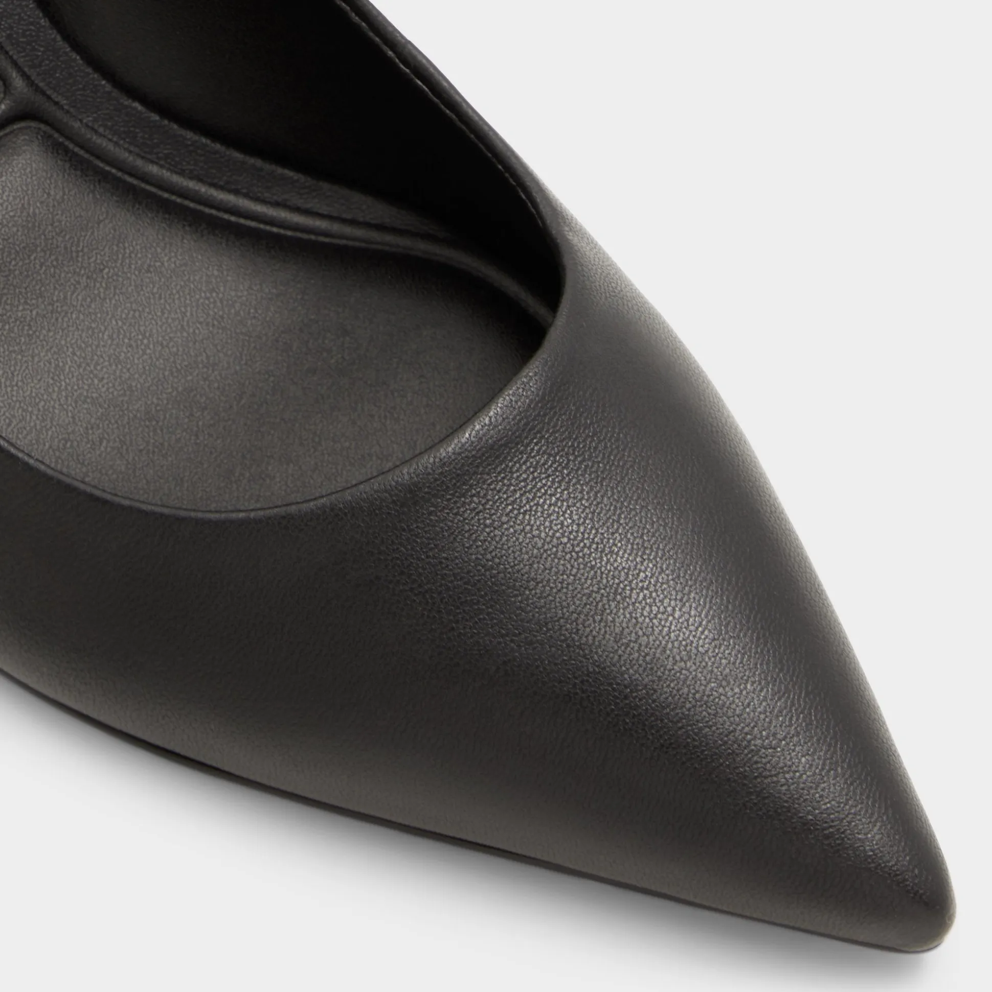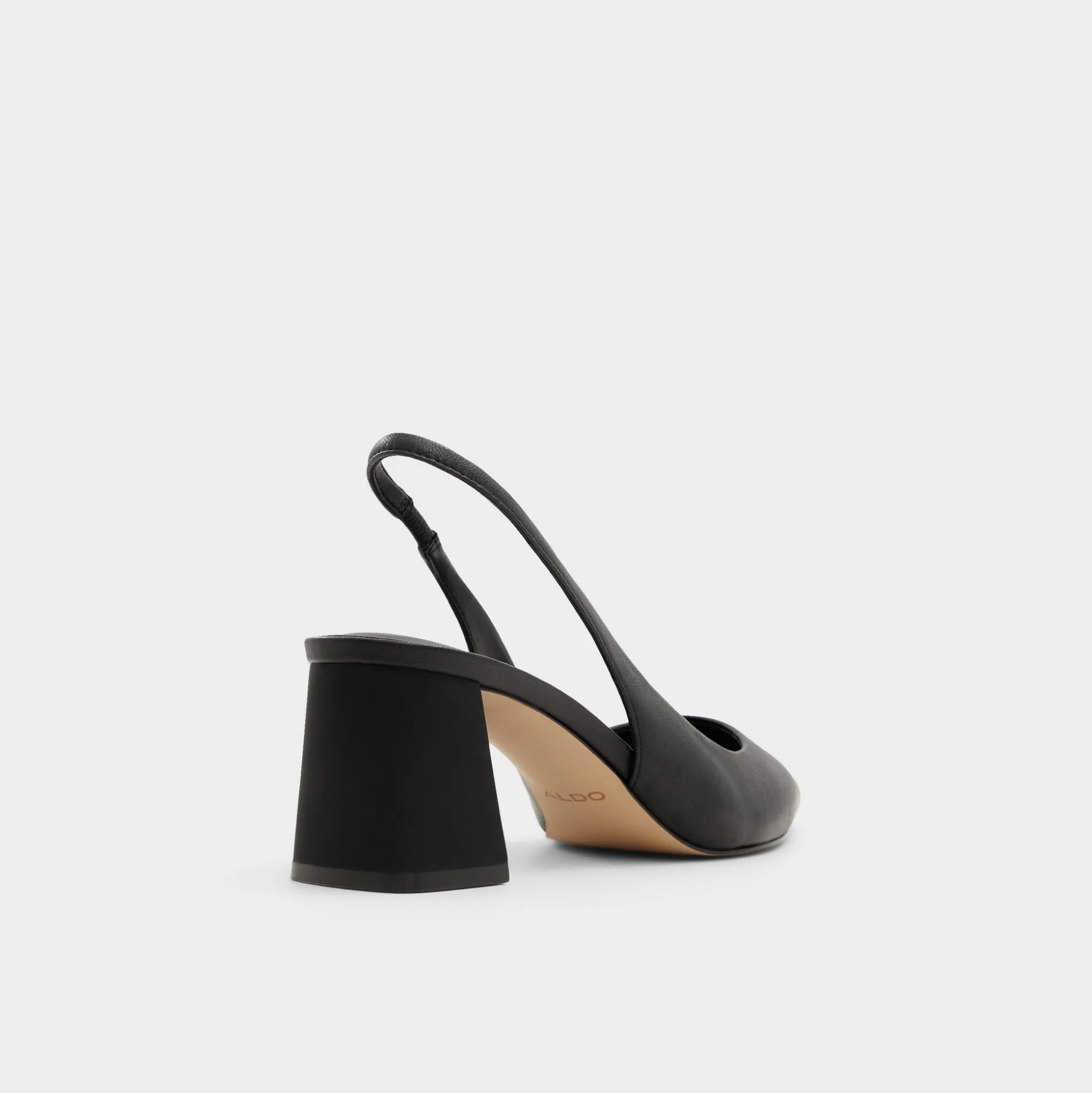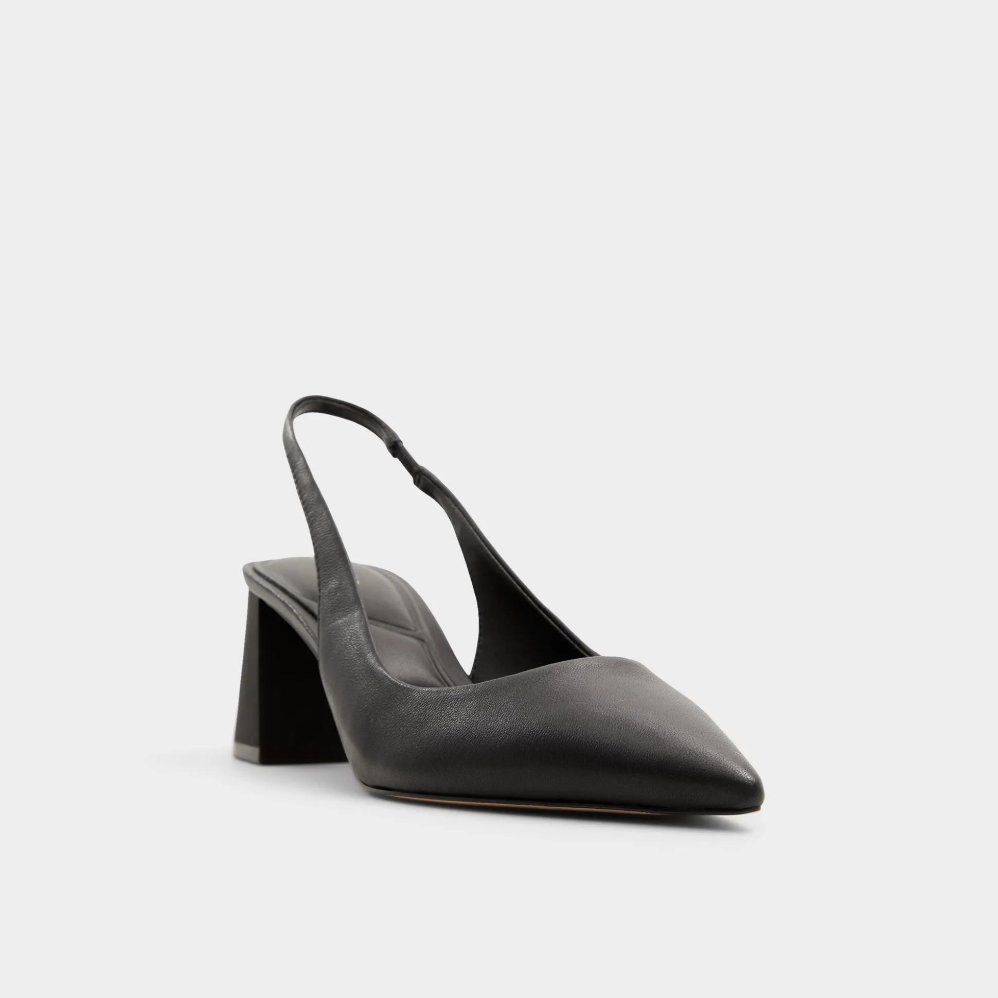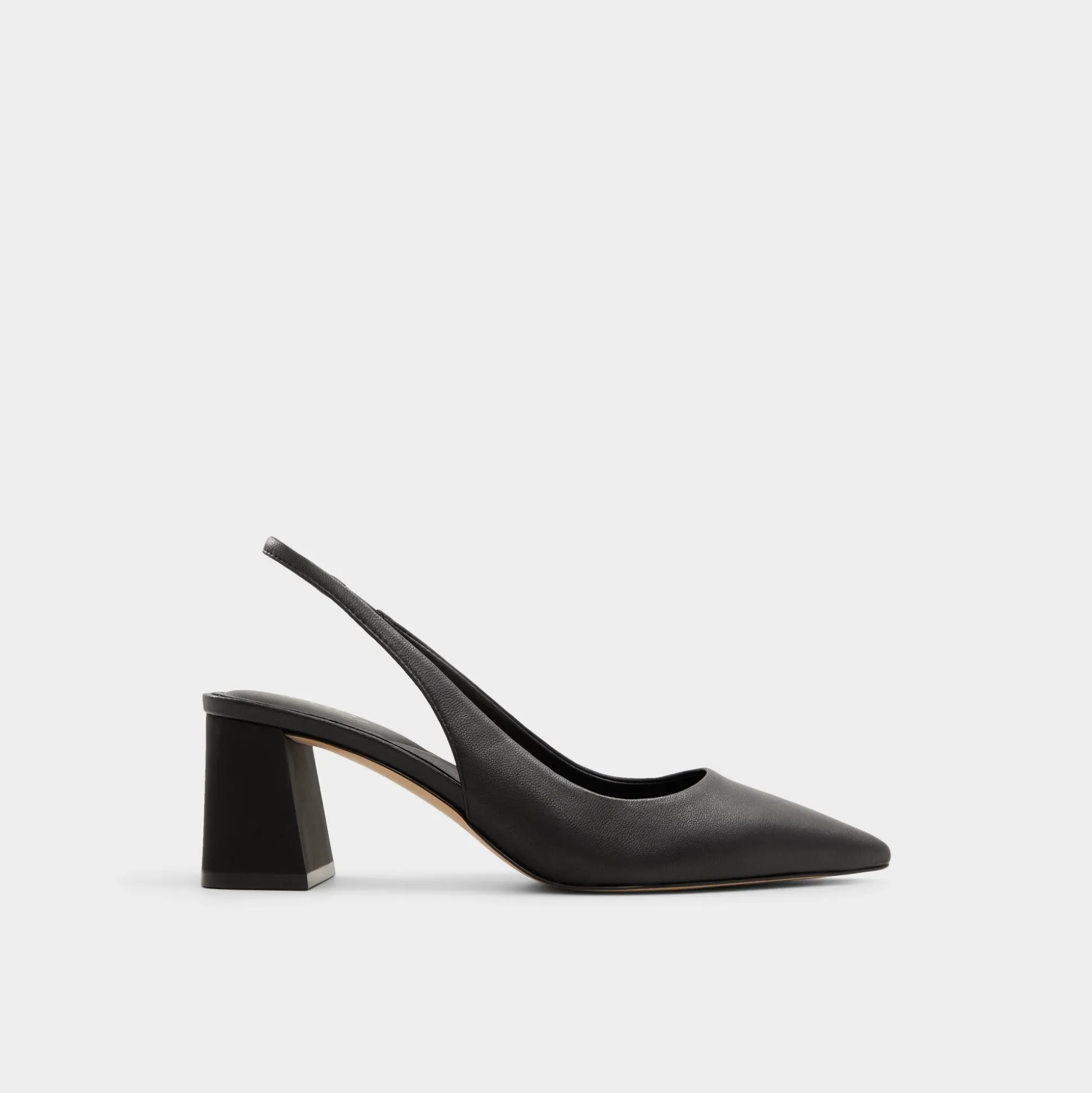 Supple black leather carves a sharp point and a sleek low-cut slingback, resting on a sculpted block heel that pairs height with steady, city-ready poise. Pair with cropped trousers for bold-morning meetings, or slip beneath a satin midi as cocktail chatter lingers past midnight, everywhere.