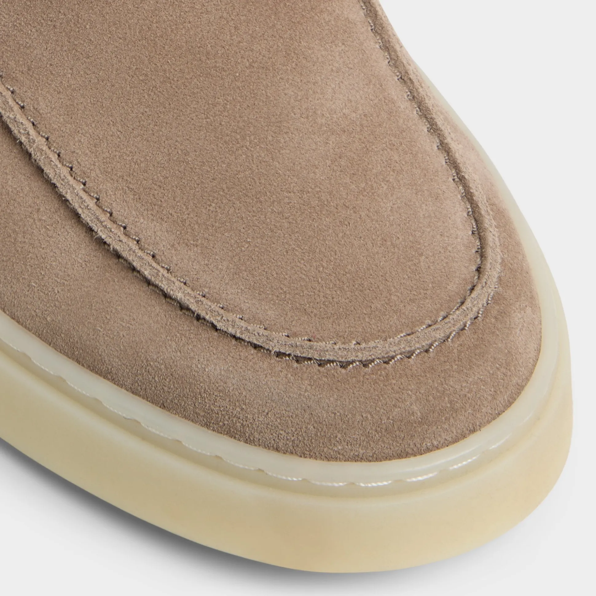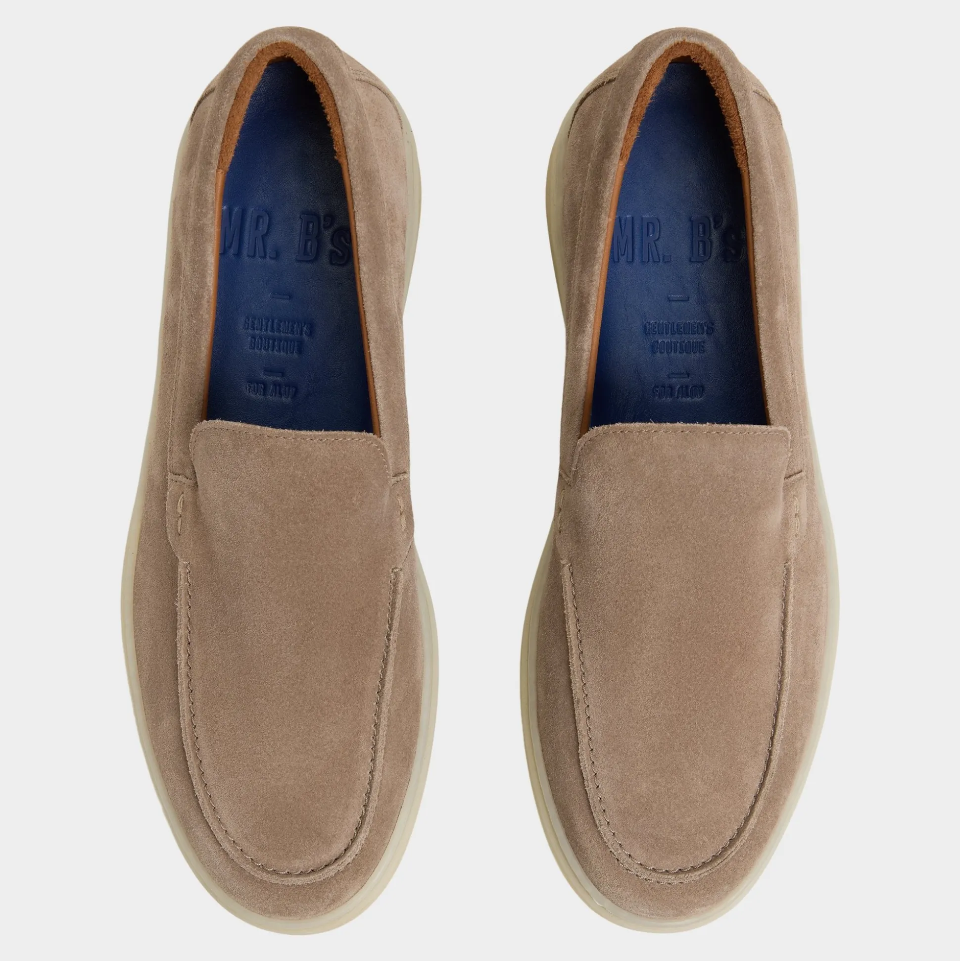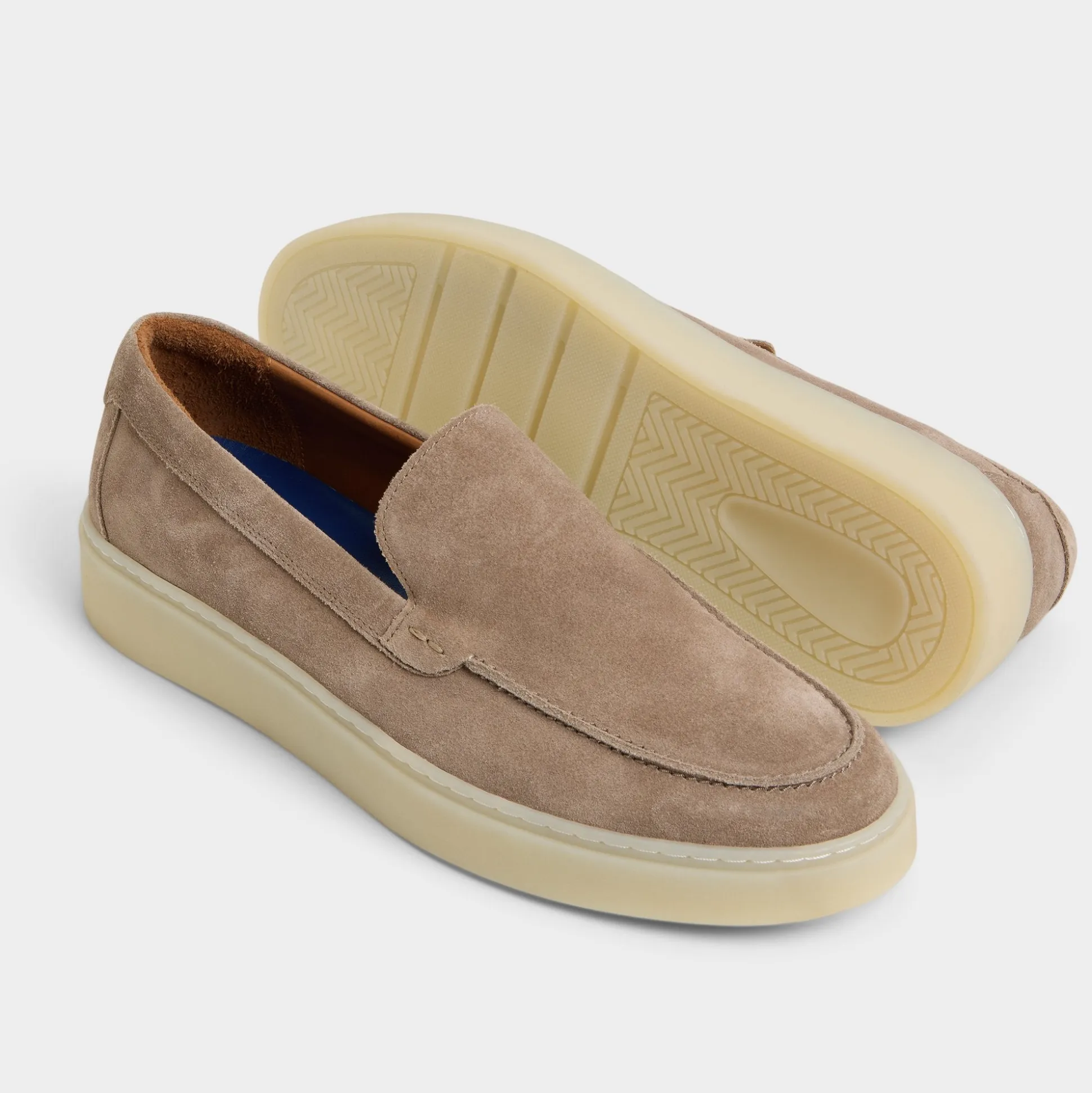 Soft taupe suede meets an ivory cupsole in this loafer, blending laid-back polish with everyday comfort as a cushy underfoot keeps you moving from morning errands to sunset strolls with easy confidence. Roll chinos for patio lunches or pair with a linen blazer on casual Fridays, easy polish that moves with you.