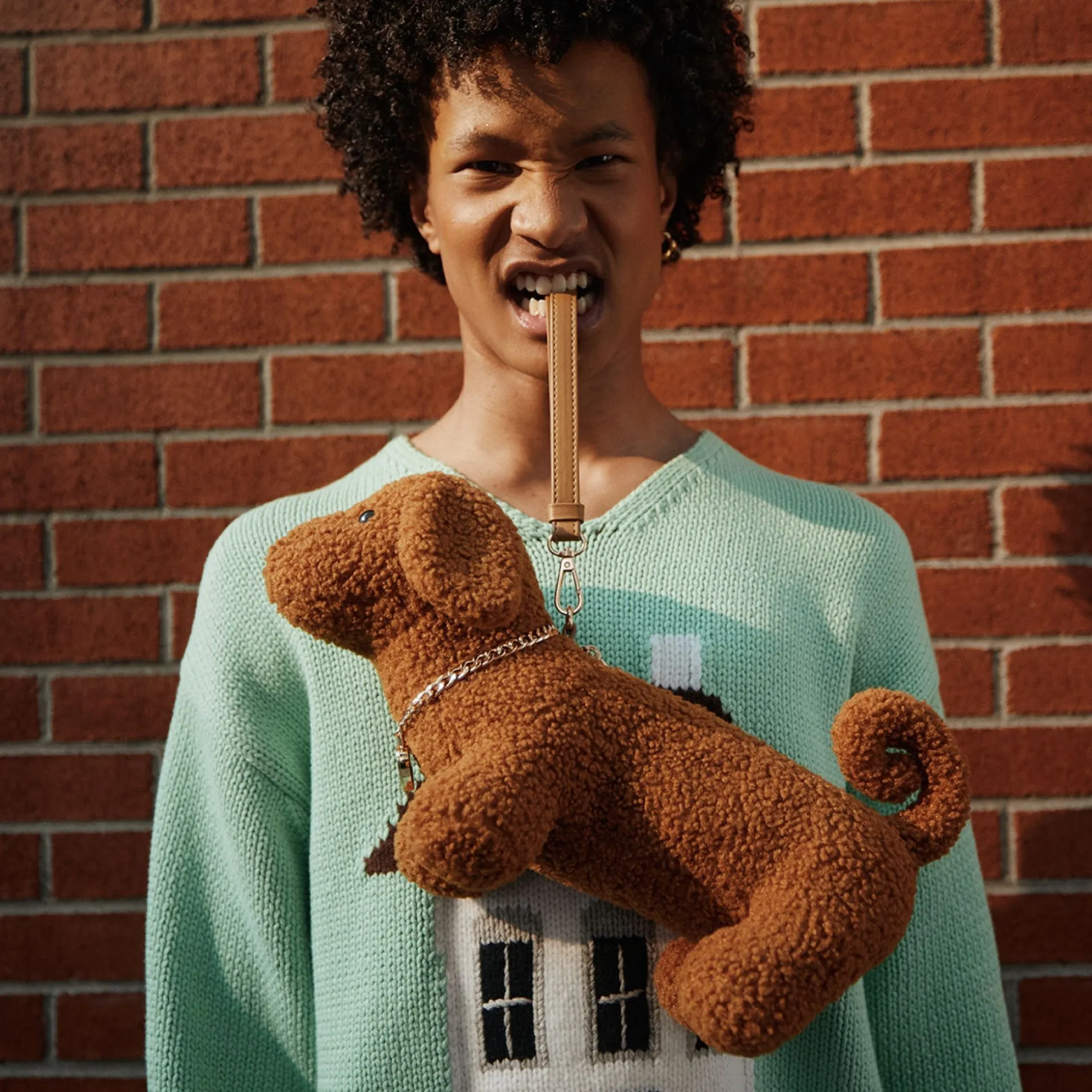 Bring a touch of whimsy to your outfit with the Woofy purse. Crafted with cozy sherpa material, this dog-shaped bag is full of playful charm and youthful energy. Perfect for carrying your essentials while adding a fun, cuddly vibe to your look. Ideal for those who love unique accessories that make a statement.