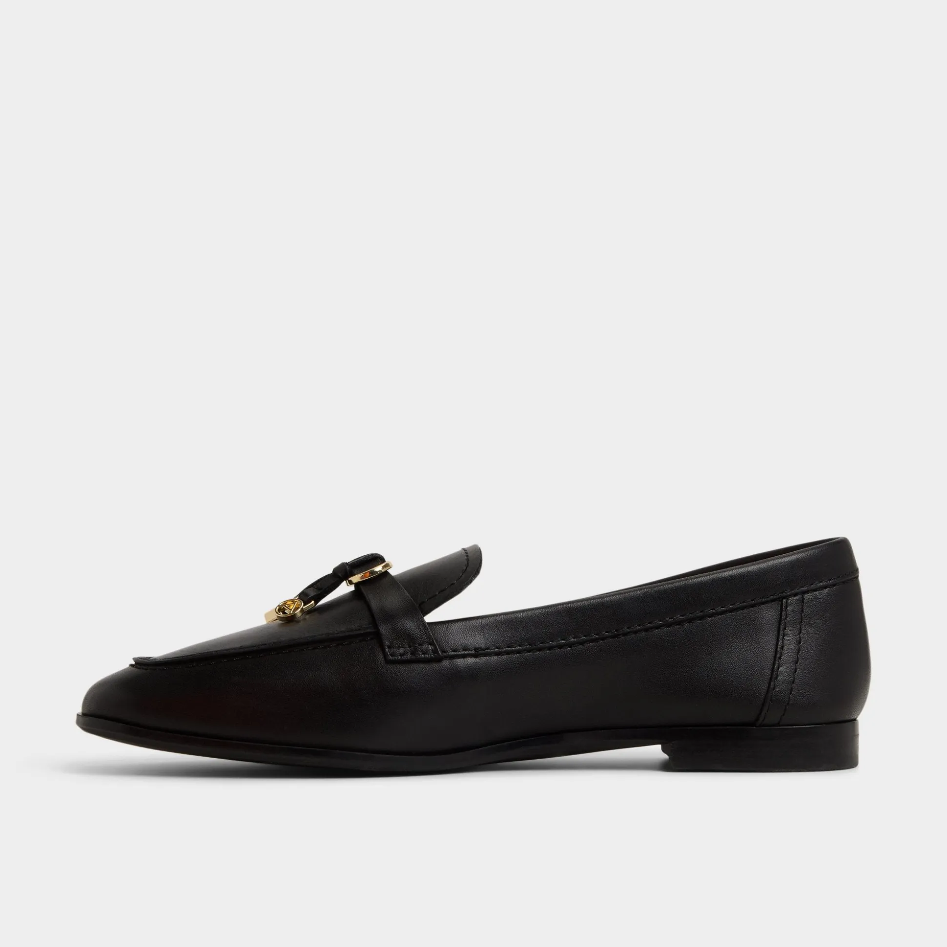 Gleaming gold bits crown a sleek loafer silhouette, crafted in supple black leather with featherlight cushioning that makes every step feel effortlessly poised, from early commutes to gallery hops and beyond. Pair with tailored trousers for presentation days, or swap in cropped denim for city strolls and café hops.